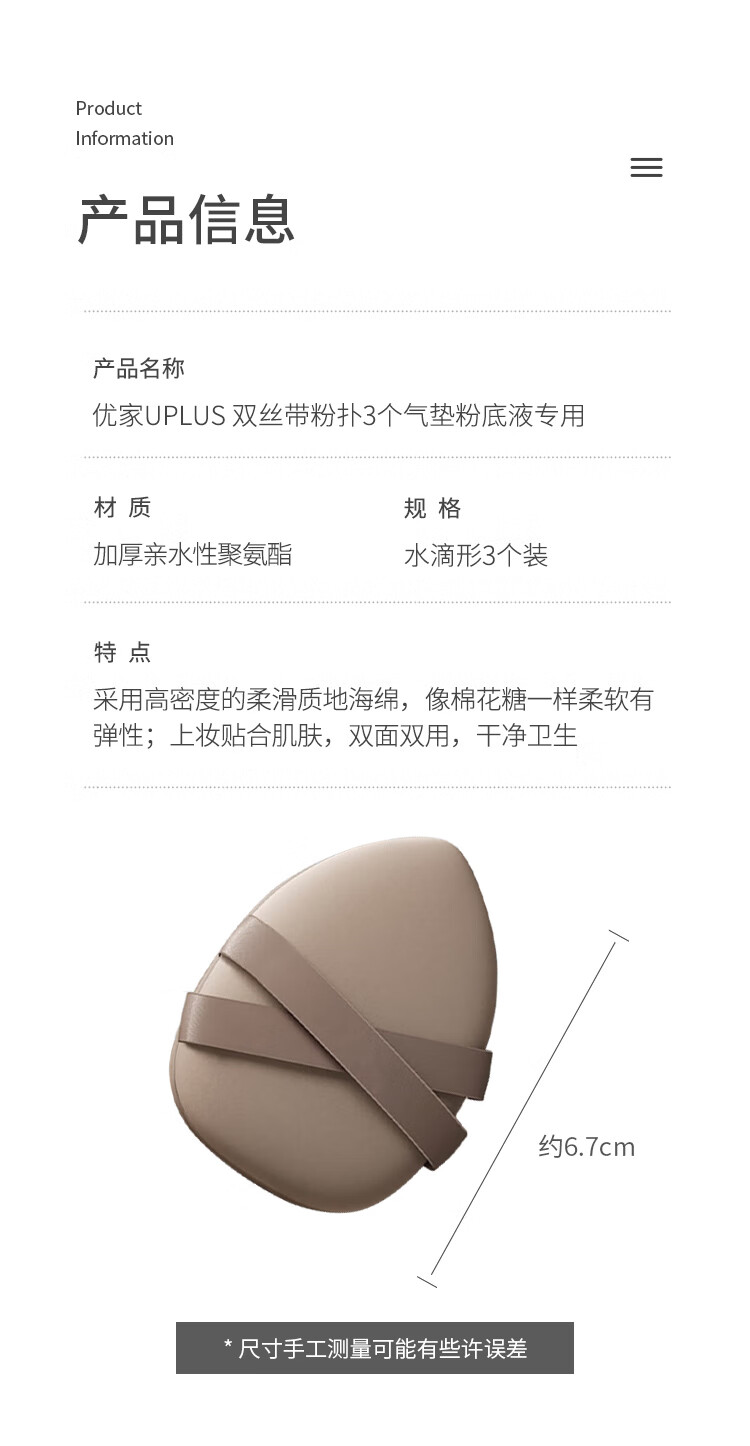Youjia UPLUS double ribbon powder puff 3 air cushion liquid foundation special dry and wet dual-use super soft makeup puff beauty egg