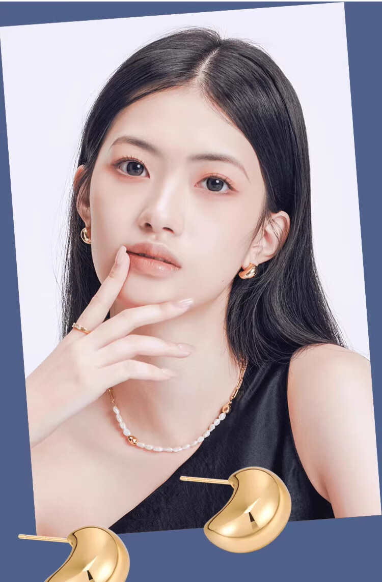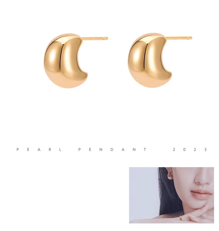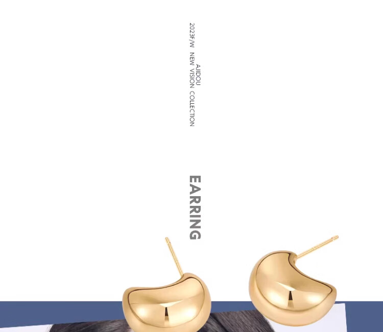 AJIDOU Ajidou earrings S925 silver needle light luxury niche high-end gold bean earrings birthday gift for girlfriend