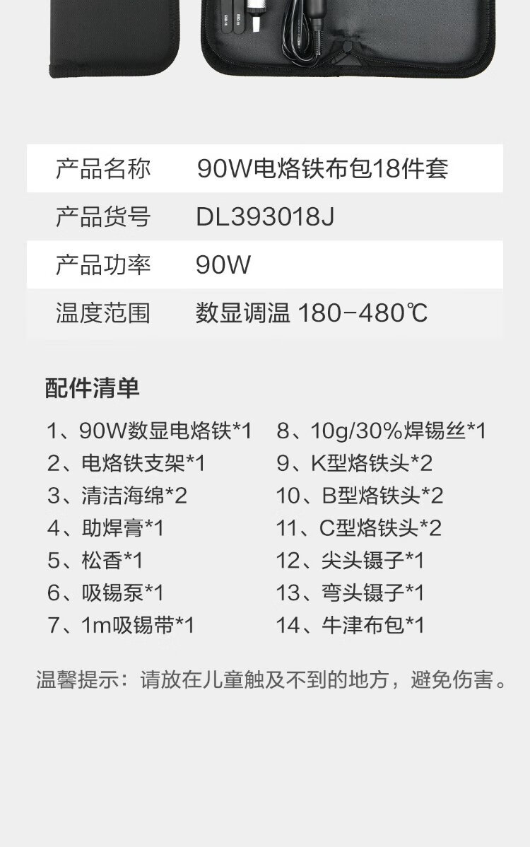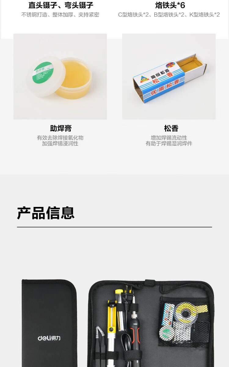Deli electric soldering iron set 90W internal heating constant temperature adjustable household high-power soldering gun soldering pen 18-piece set