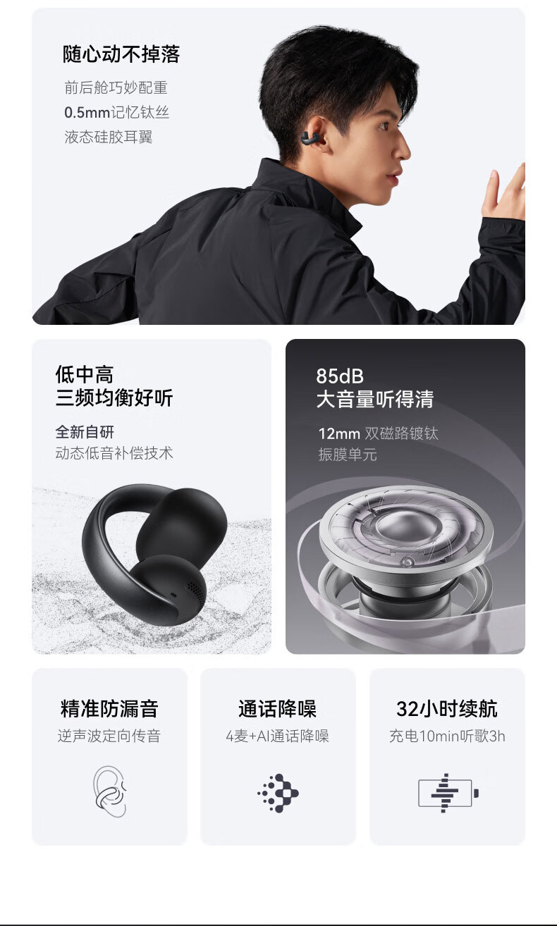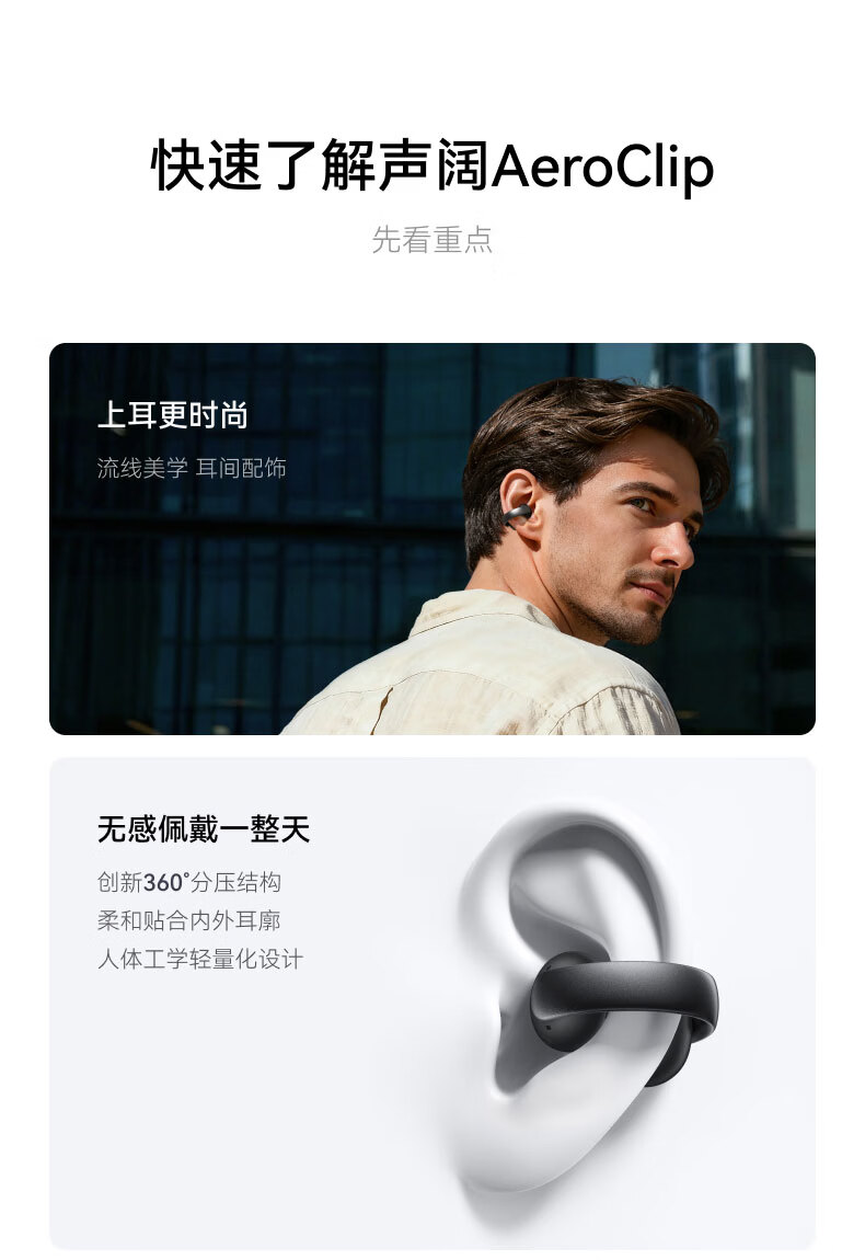 The same model as Hu Yanbin's AeroClip ear clip Bluetooth headset, wireless open sports running headset, air conduction headset, suitable for Apple, Huawei, Xiaomi and black