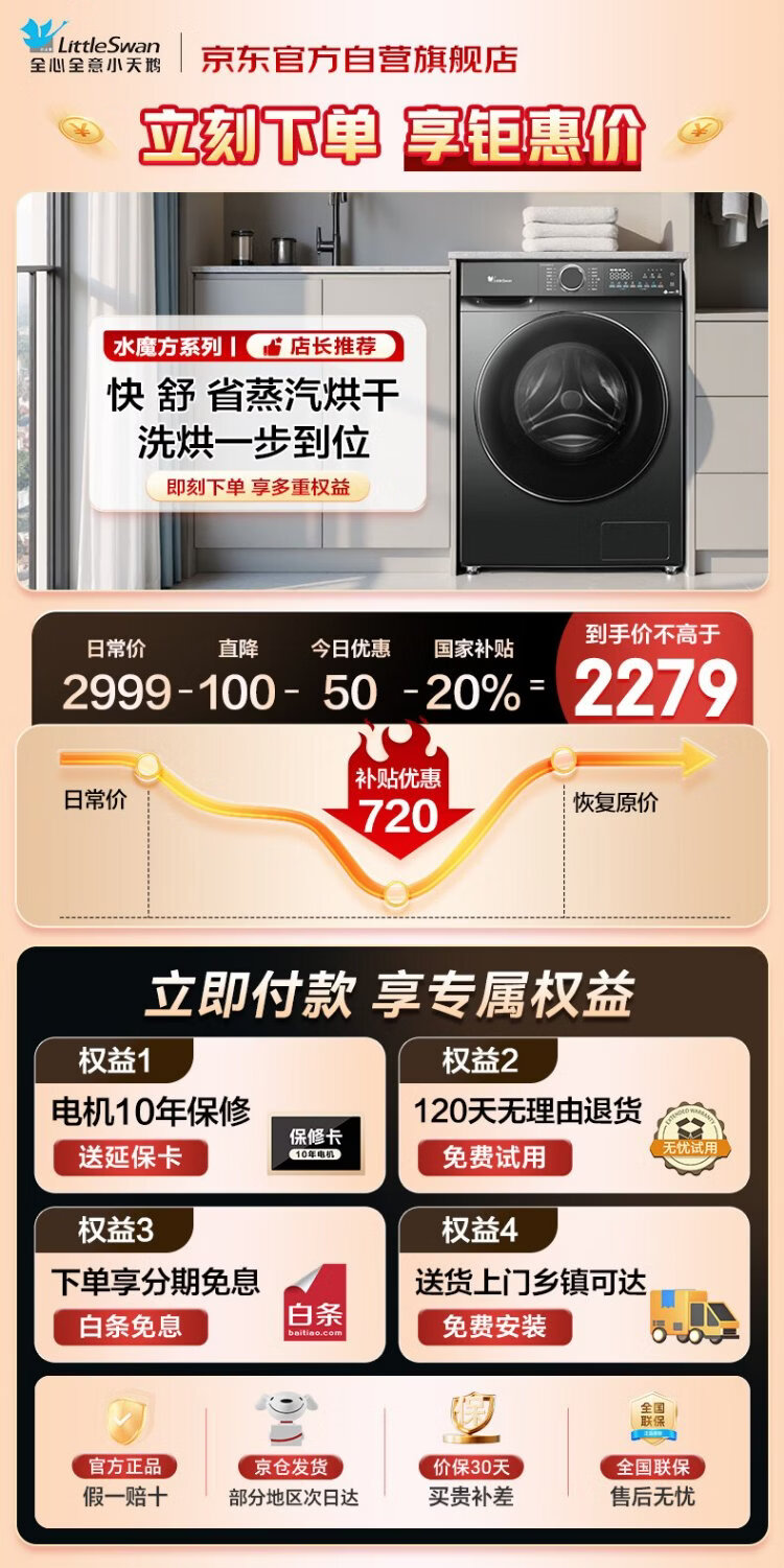 LittleSwan washing machine drum fully automatic household 10kg large capacity water cube with drying and washing machine TD100V868PLUS trade-in subsidy OCC