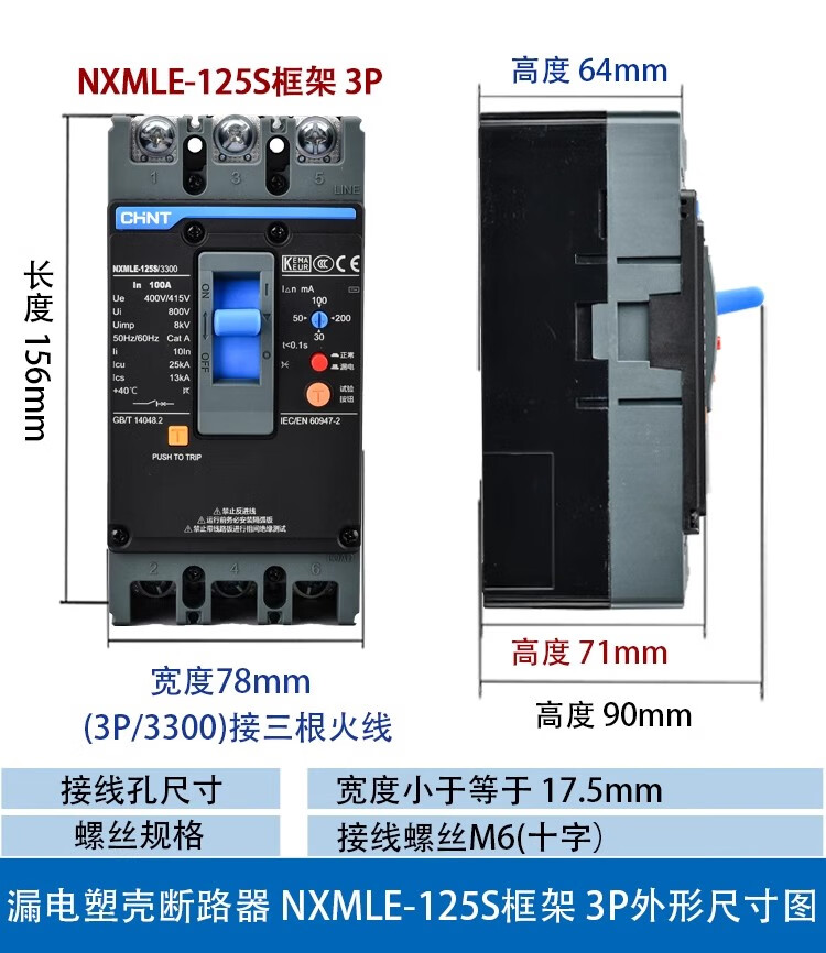 Chint plastic case circuit breaker 4P 125A leakage protector air switch air switch with leakage protection NXMLE-125S/4300A