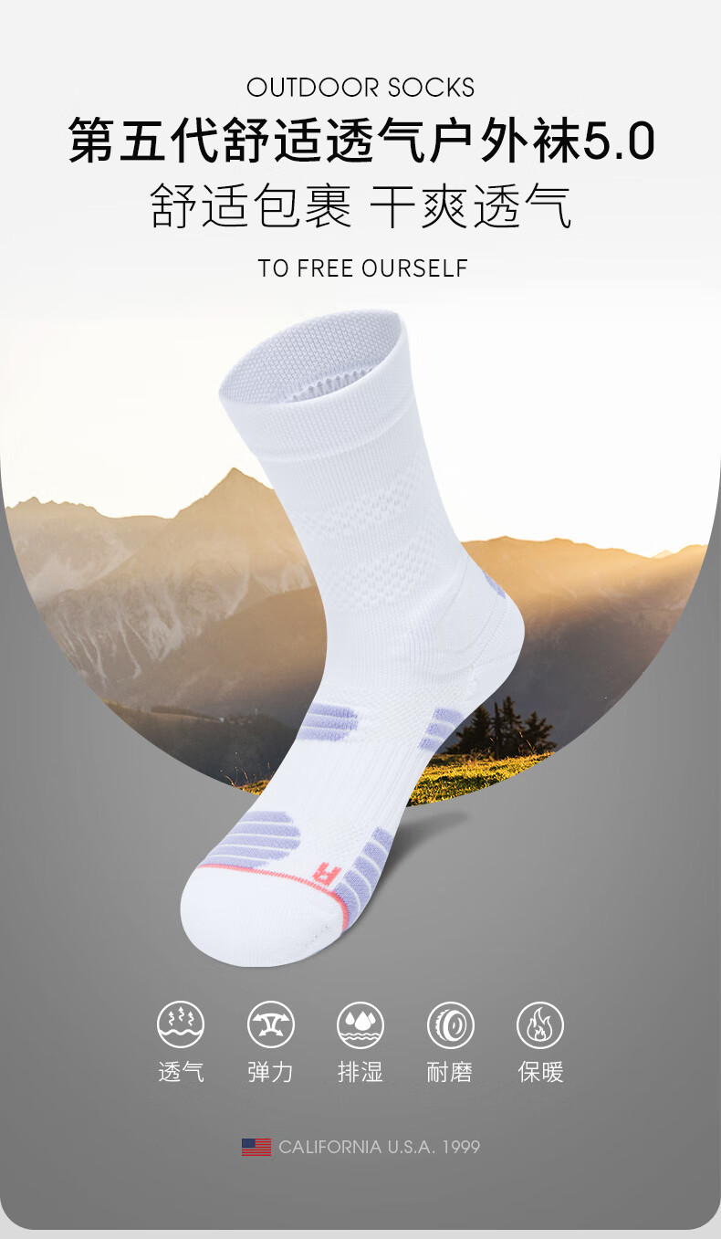 TFO fifth generation outdoor socks professional marathon running socks hiking mountaineering sports socks 2902430 women's white