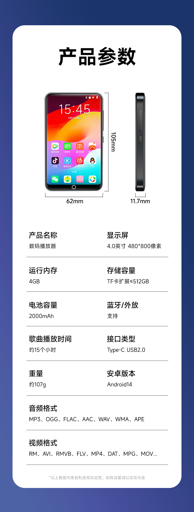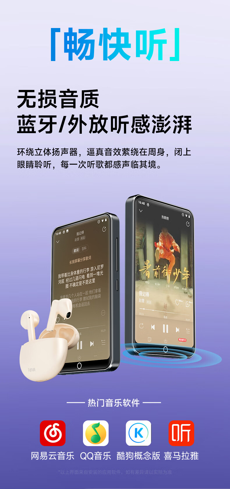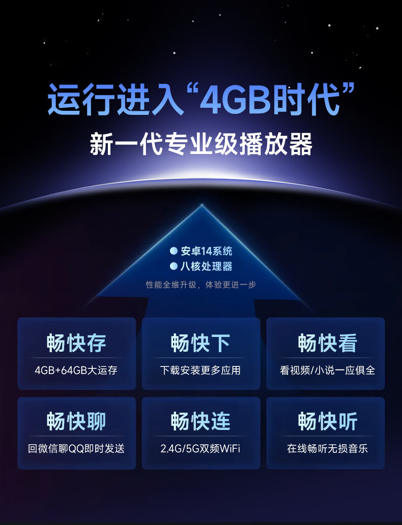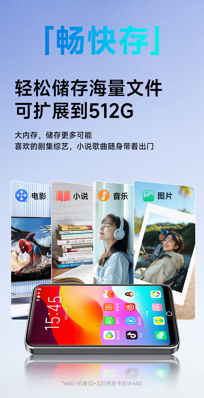 Fanmu BF61 mp3/mp4 player WiFi Internet access 4+64G storage MP5 lossless music player Android 14 Bluetooth external playback video e-book