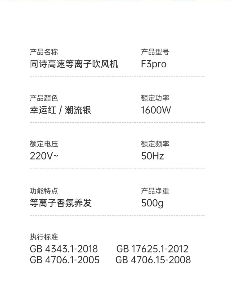 Tongshi Aiqi F3pro high-speed plasma hair dryer hair care quick-drying high-power household constant temperature hair dryer gift box for wife's birthday gift