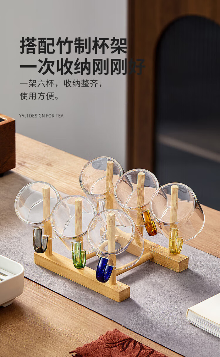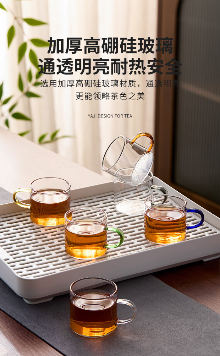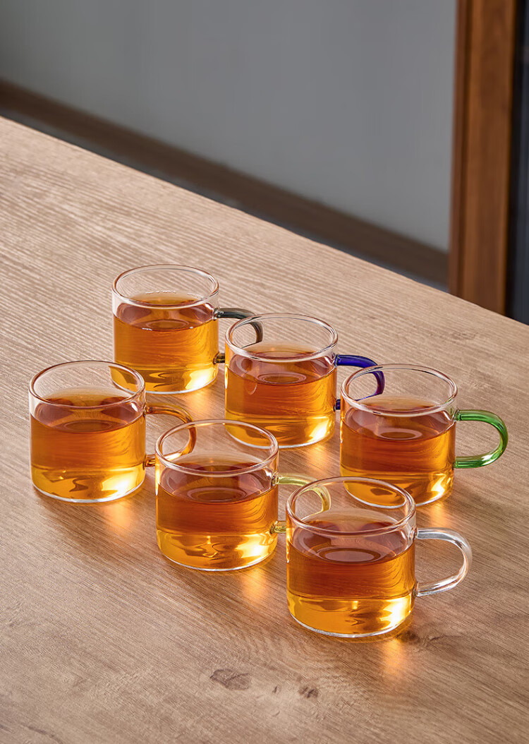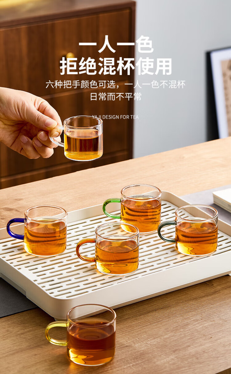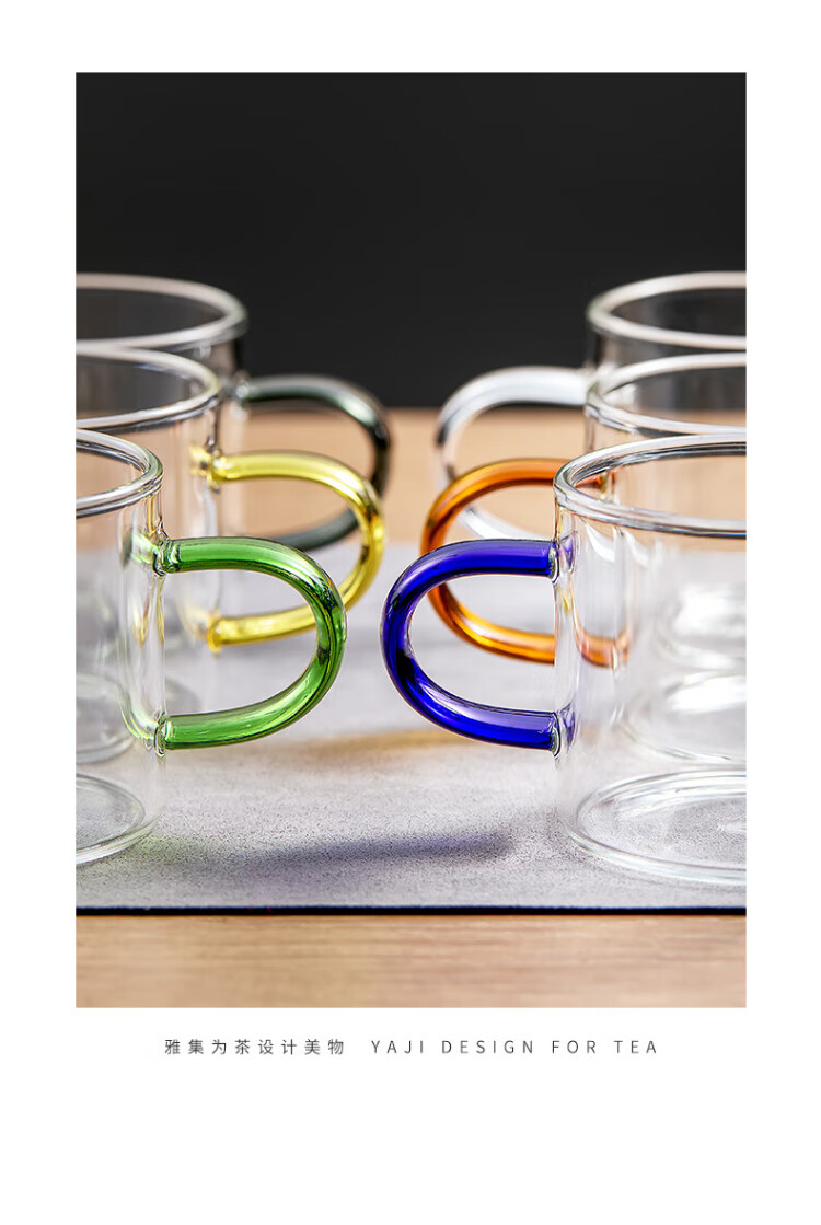 Yaji tea set tea cup Xiao tea cup 100ml heat-resistant glass tea cup home office cup color handle - 6 pieces