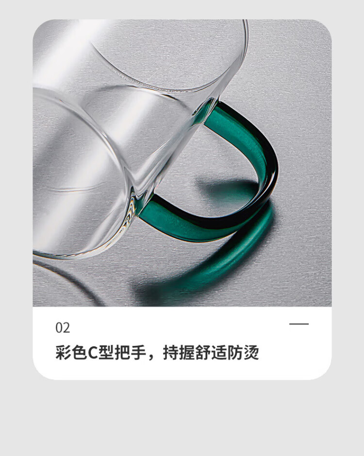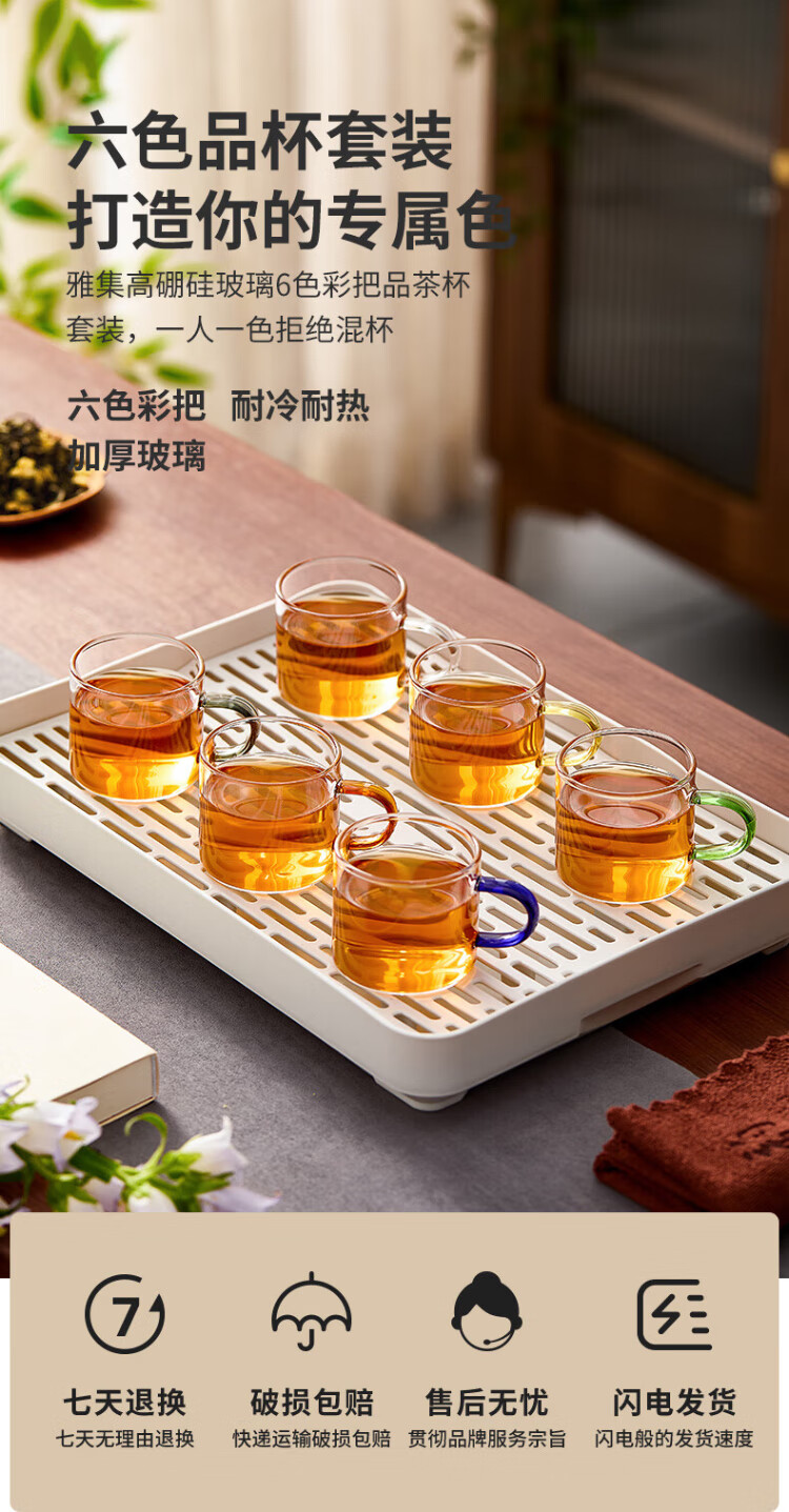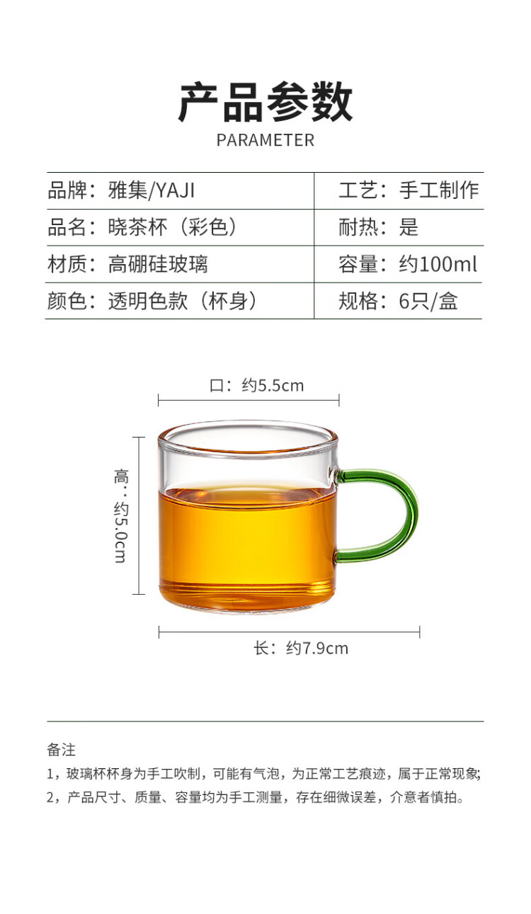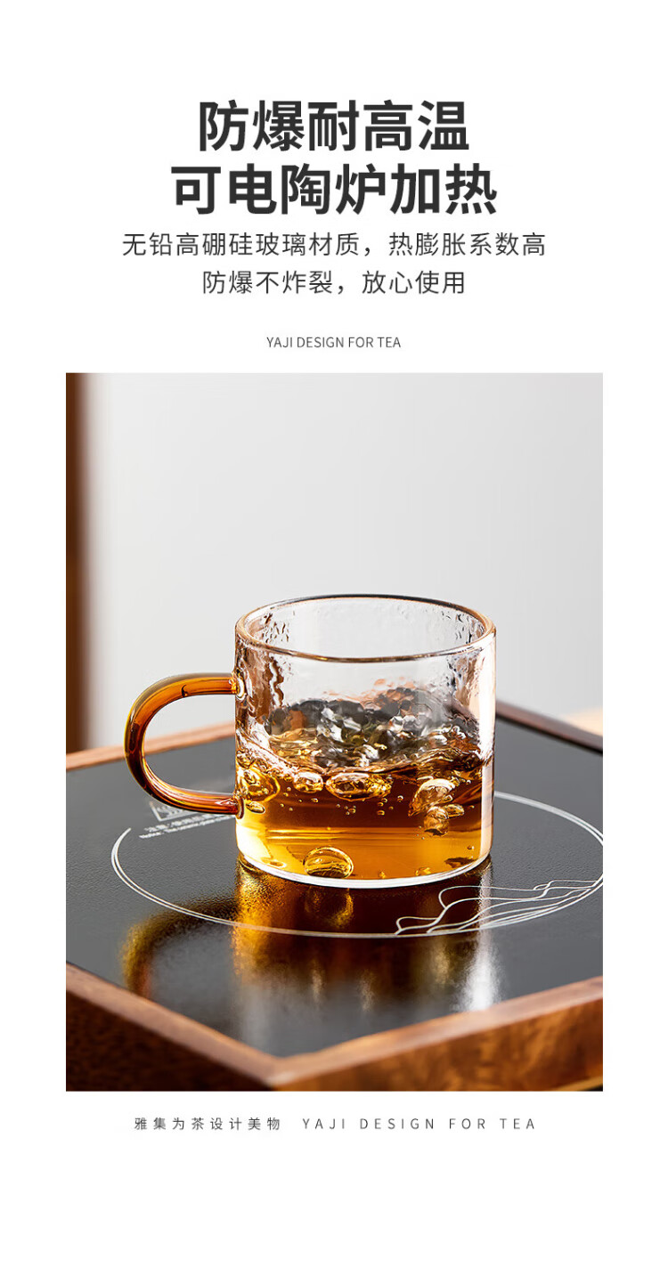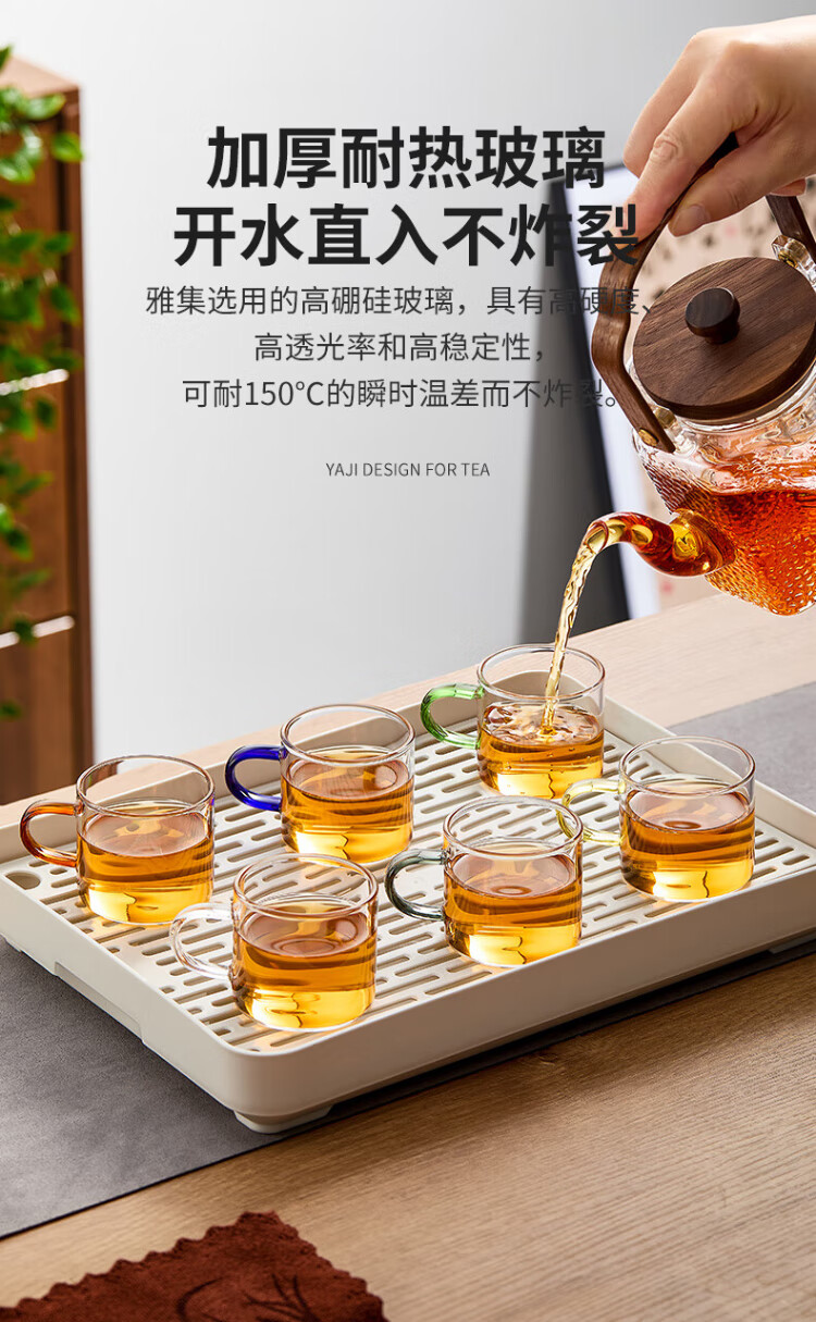 Yaji tea set tea cup Xiao tea cup 100ml heat-resistant glass tea cup home office cup color handle - 6 pieces