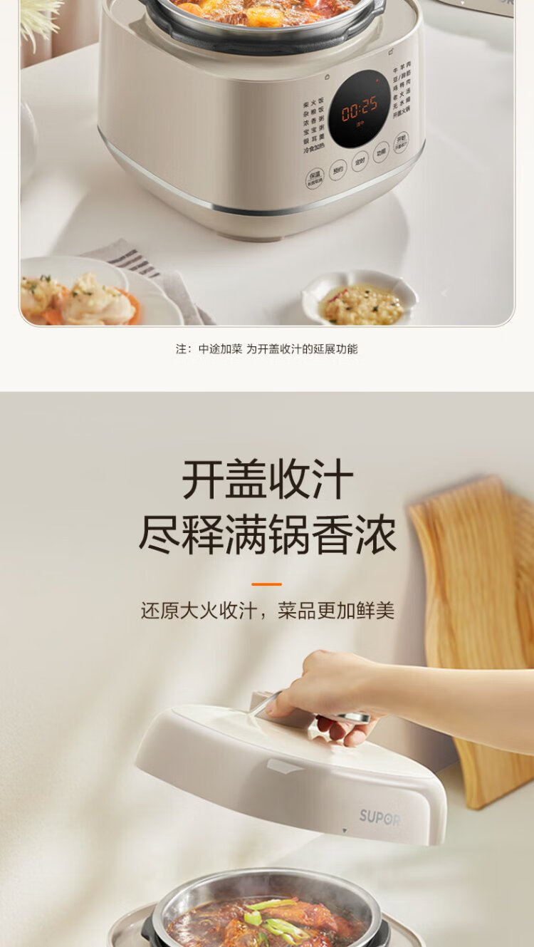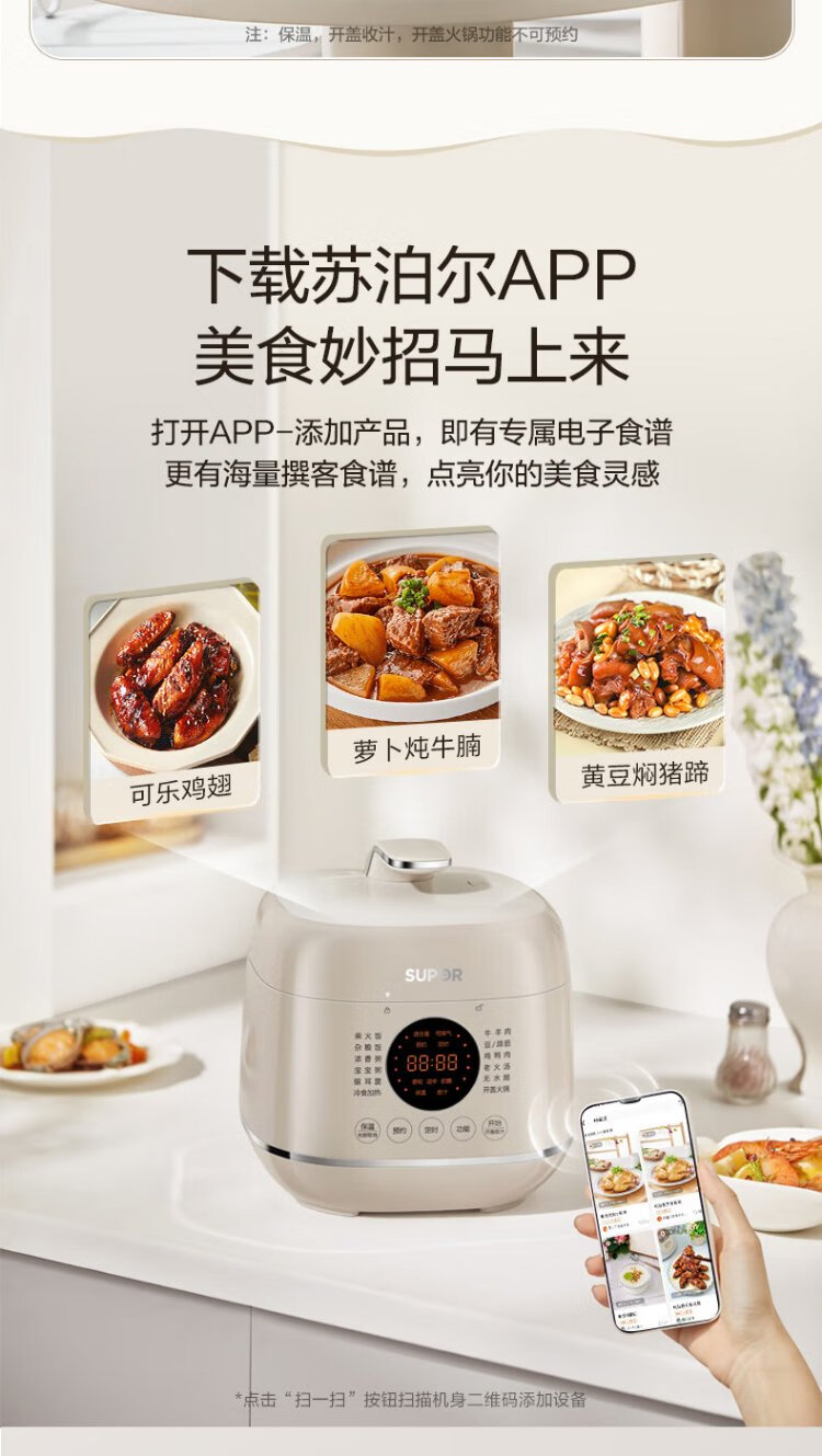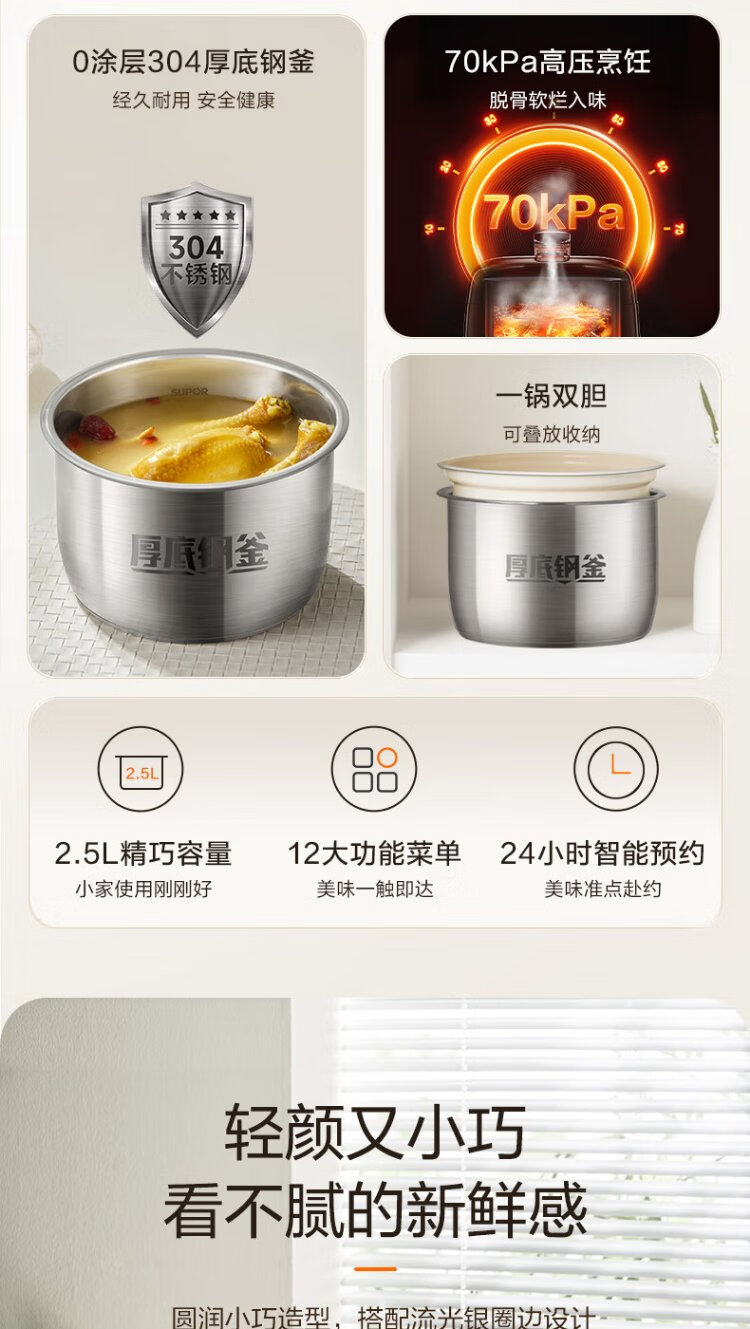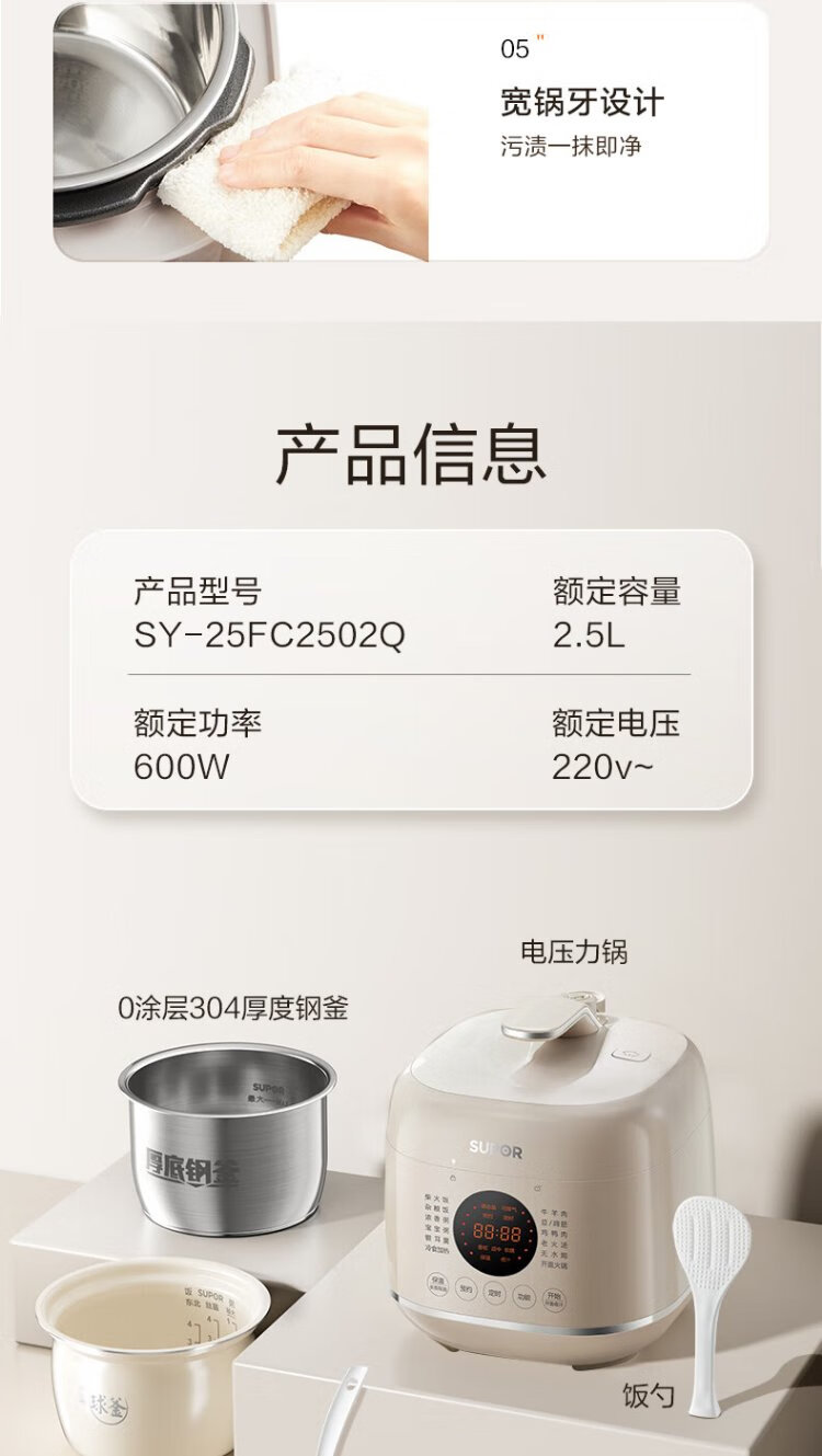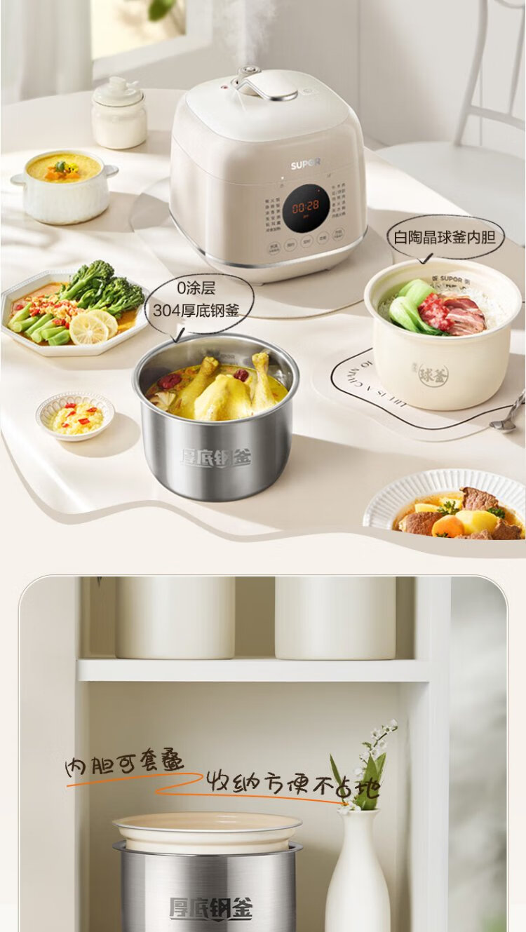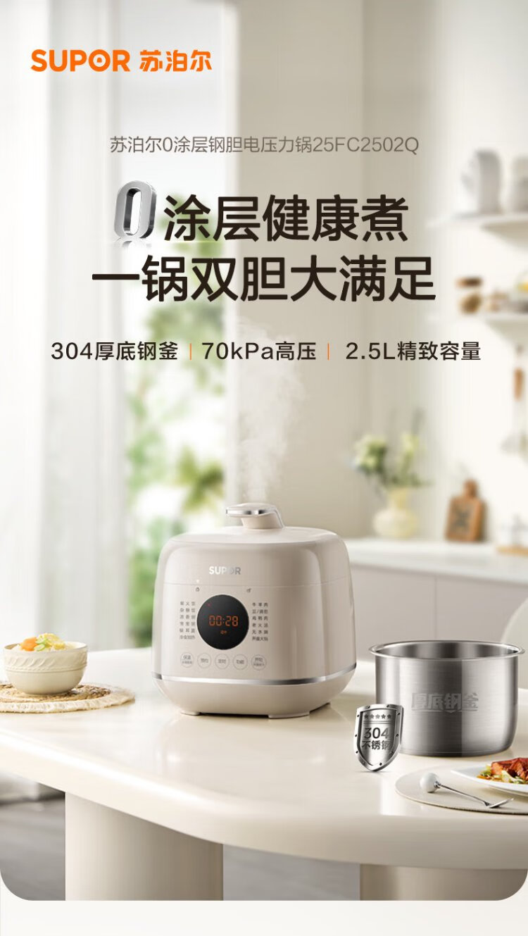 SUPOR national subsidy 0-coated stainless steel spherical kettle electric pressure cooker 2.5L open lid hot pot household smart SY-25FC2502Q rice cooker pressure cooker for 1-3 people