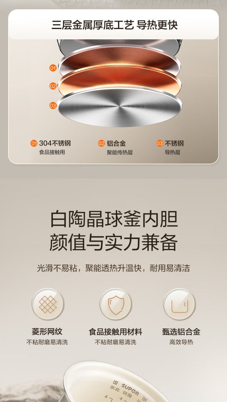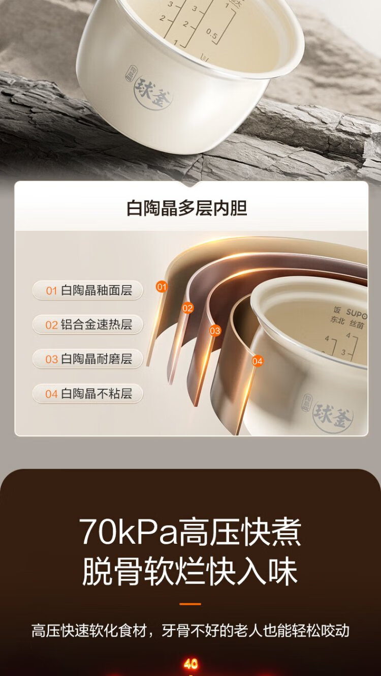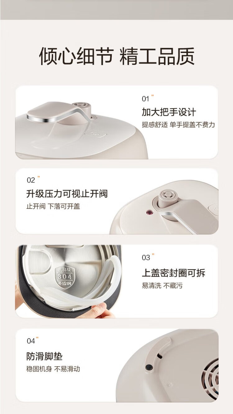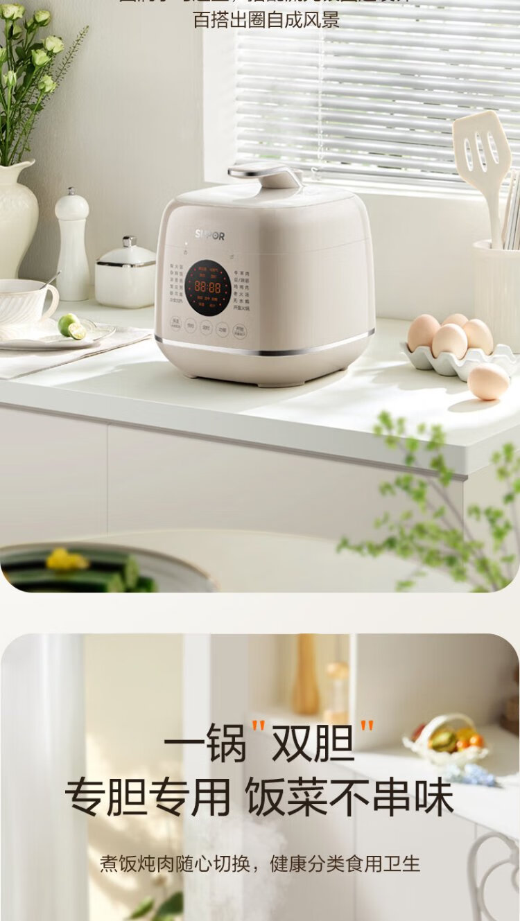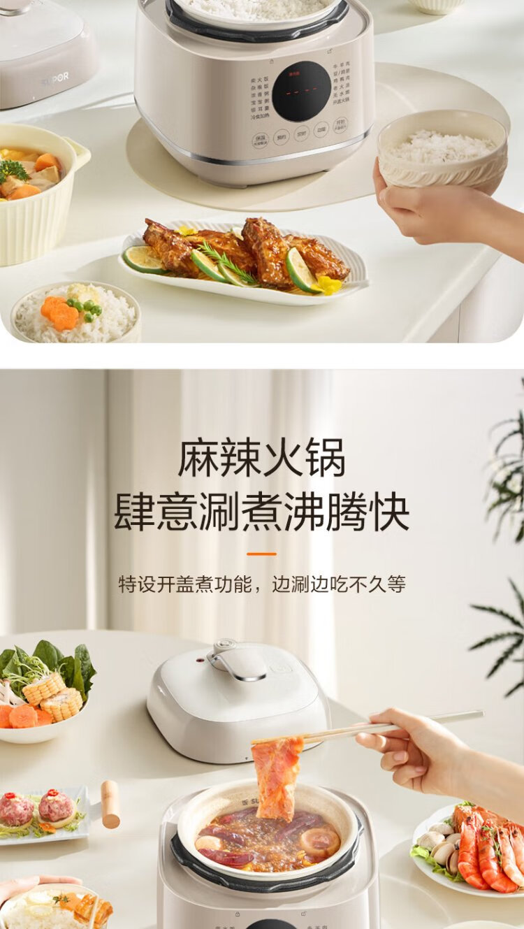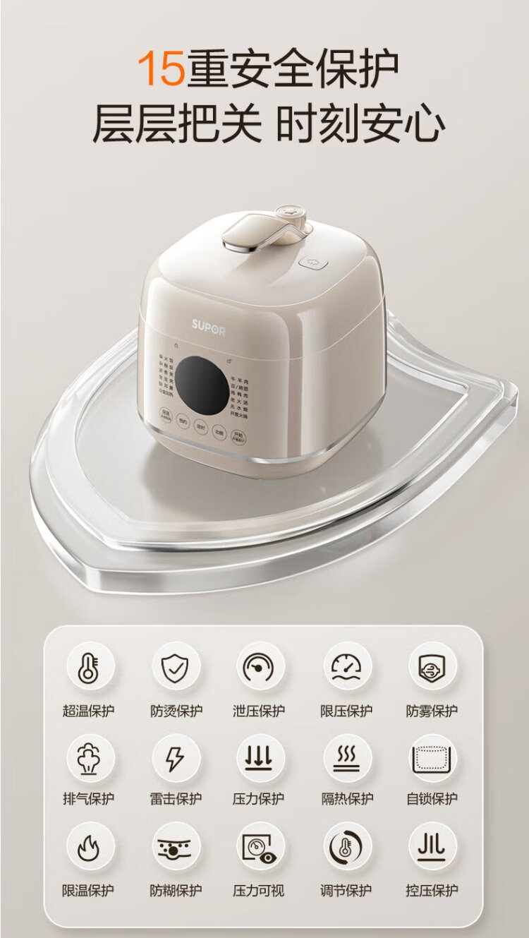 SUPOR national subsidy 0-coated stainless steel spherical kettle electric pressure cooker 2.5L open lid hot pot household smart SY-25FC2502Q rice cooker pressure cooker for 1-3 people