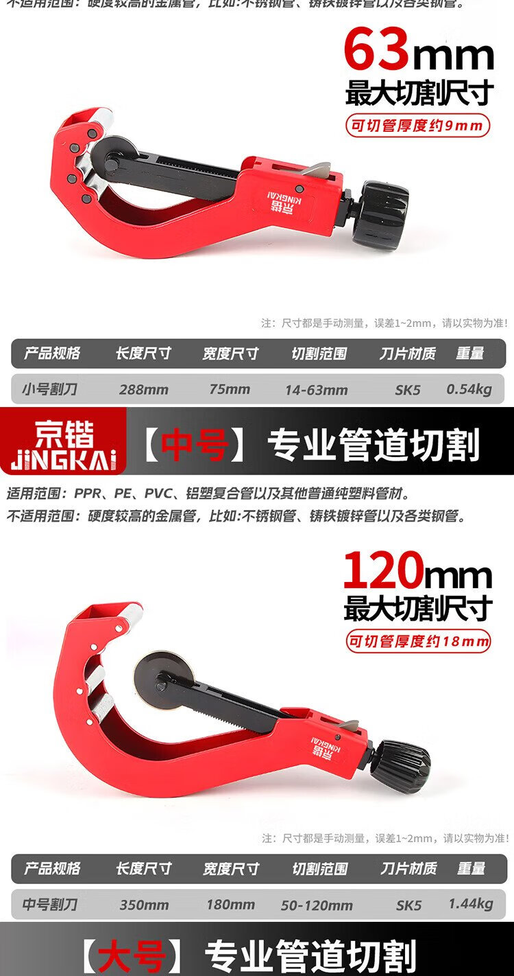 Jingkai pvc pipe cutter pipe cutter PE pipe cutting pipe artifact 14-63 pipe knife sewer pipe scissors ppr professional cutter