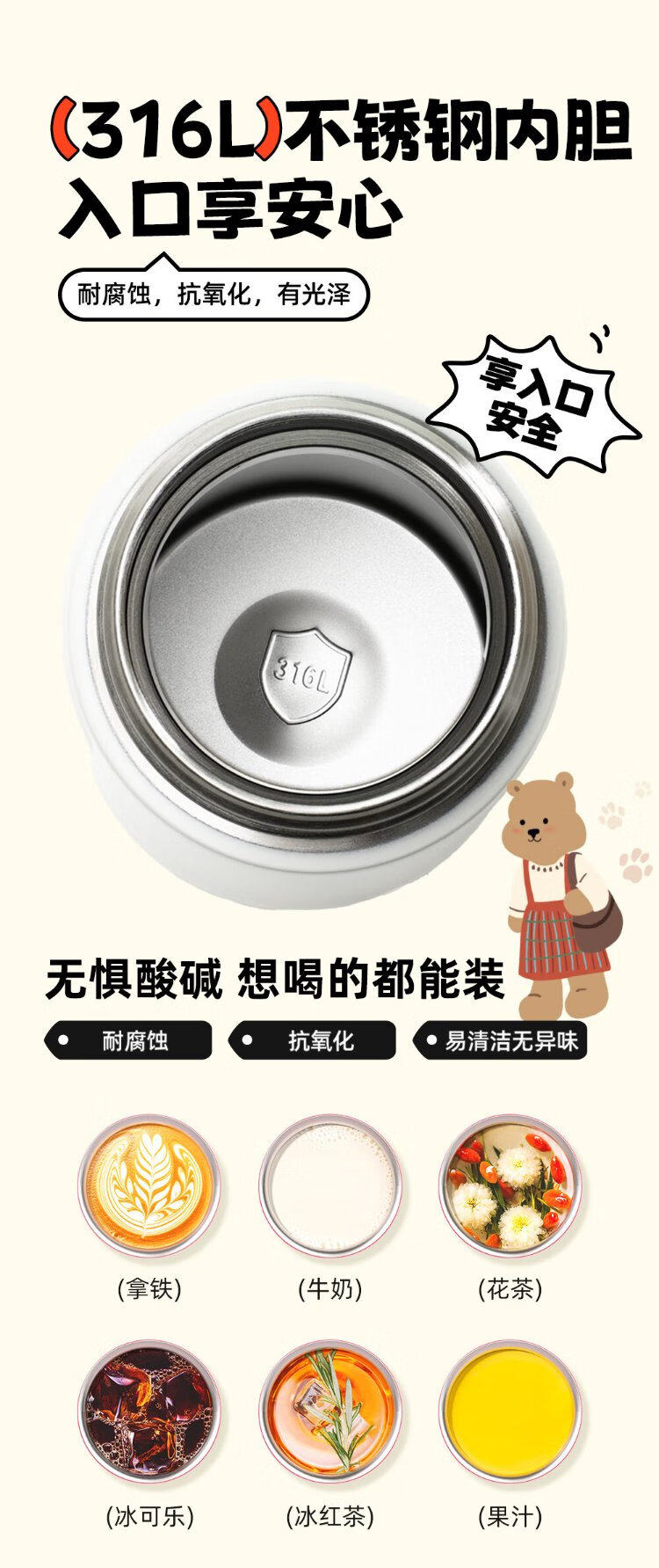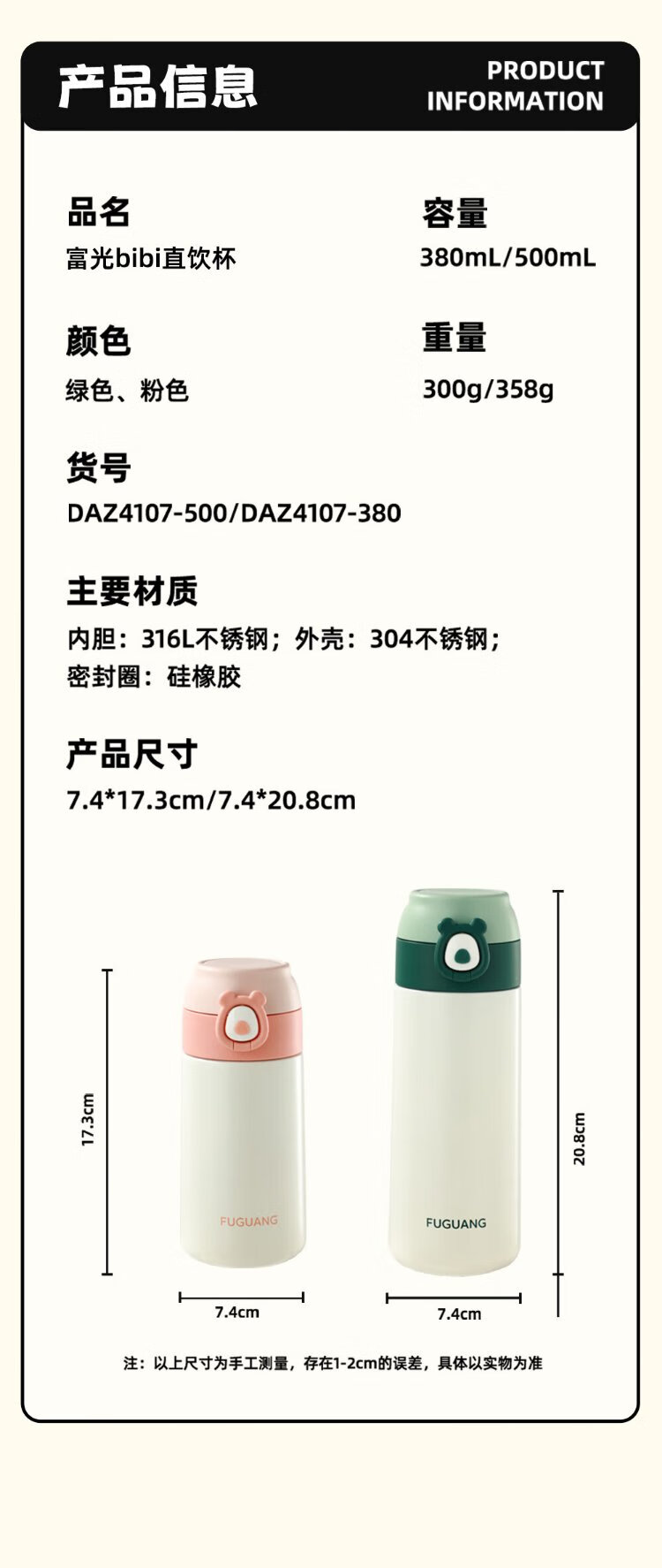 FGA Fuguang children's thermos cup for men and women large capacity 316 stainless steel student direct drinking water cup portable cup