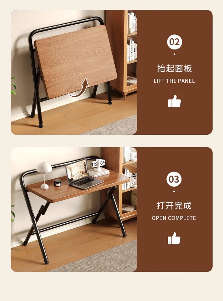 Zhuobo computer table folding table desk study table BZ20 walnut color 80*48cm