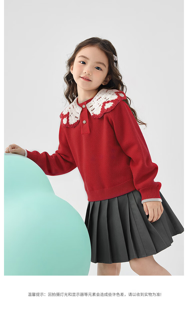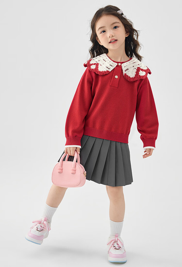 Balabala children's clothing girls sweater lapel sweater 2025 spring and autumn sweater trend shopping mall same style 201125103002