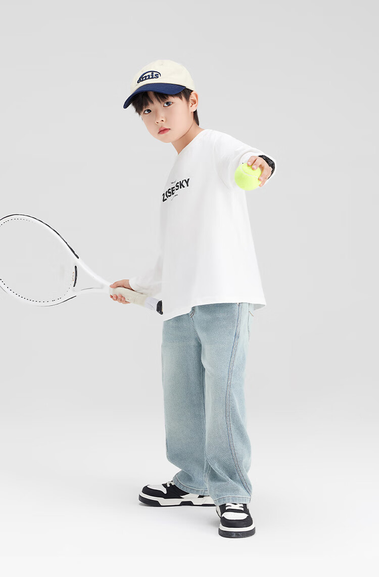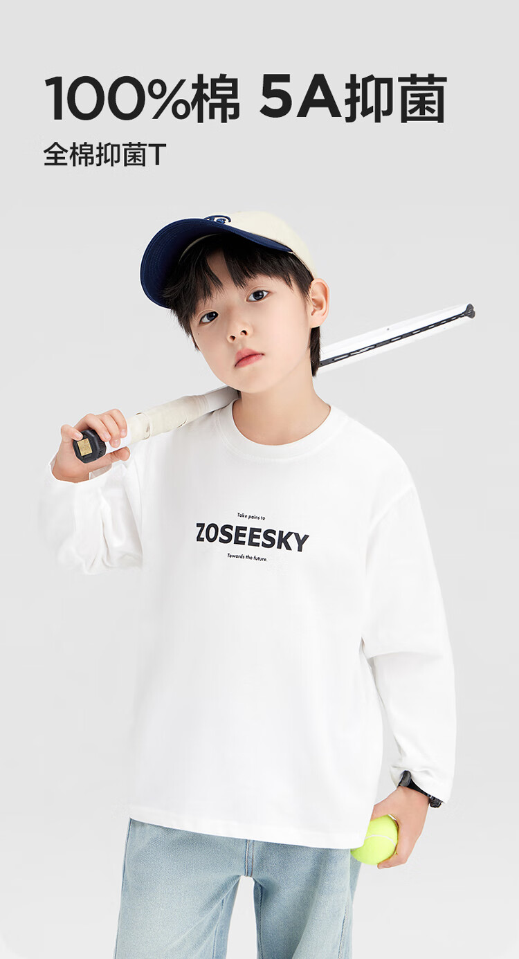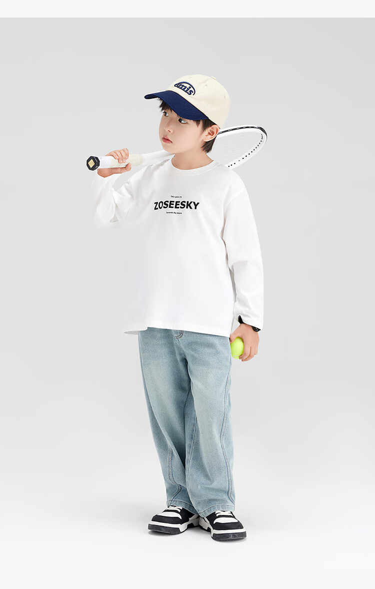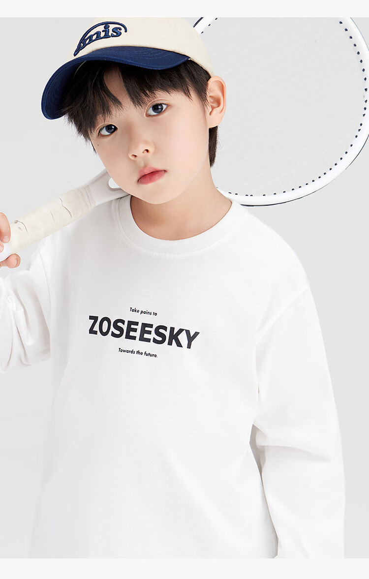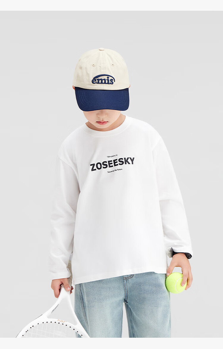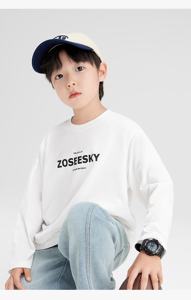 Zuoxi Boys Long Sleeve T-Shirt Children's Class A Pure Cotton Autumn Clothing 2025 New Boys Spring and Autumn Top Trendy White 160