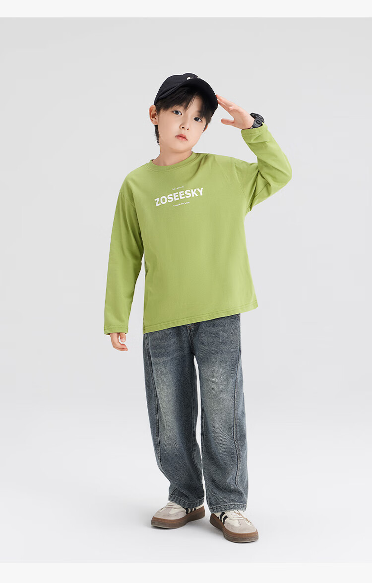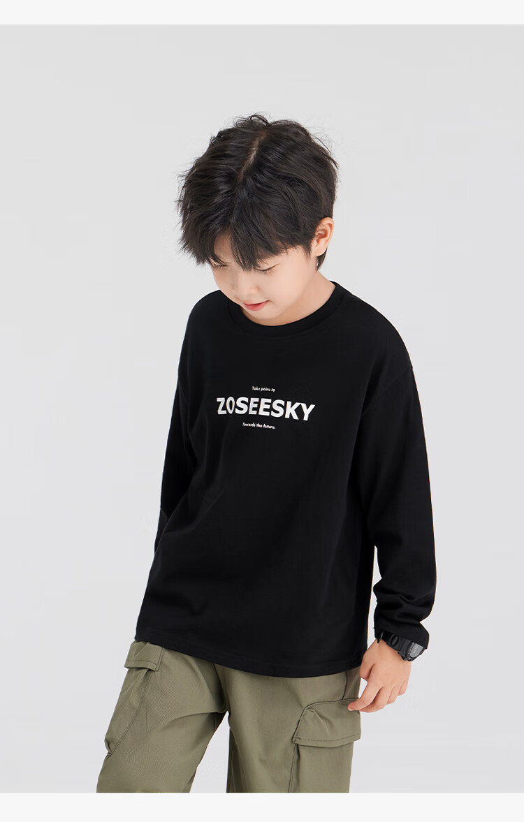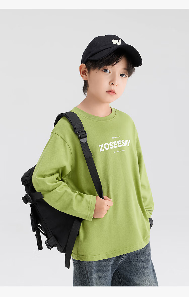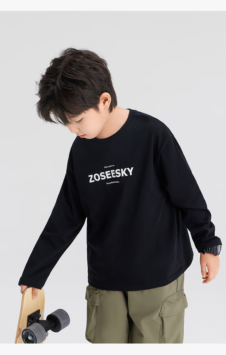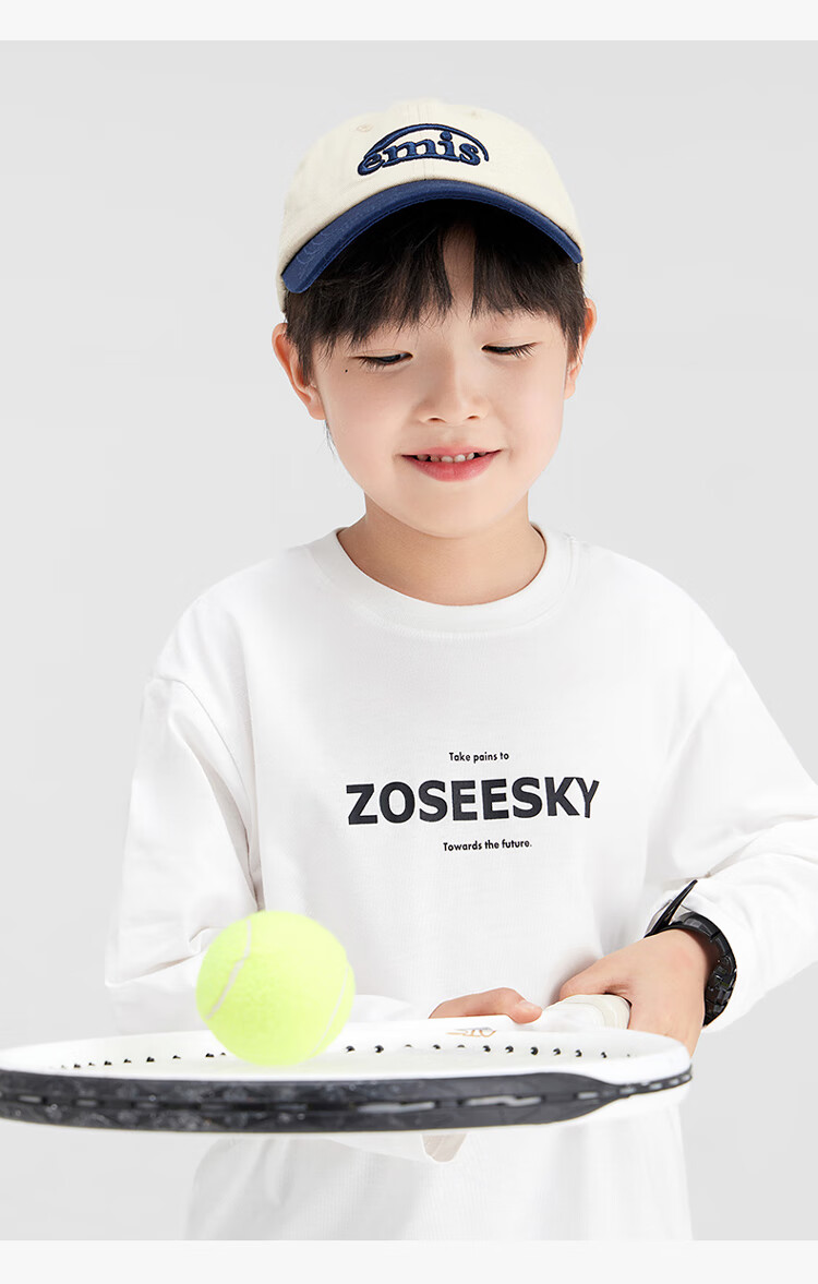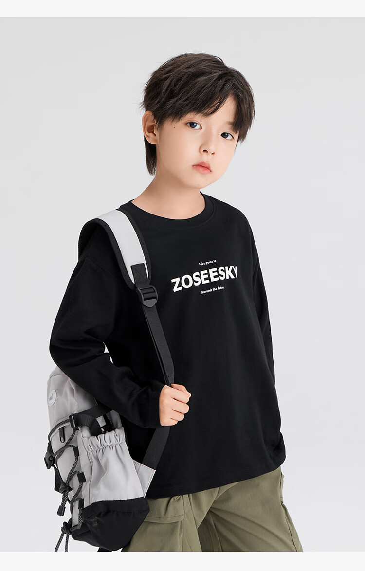 Zuoxi Boys Long Sleeve T-Shirt Children's Class A Pure Cotton Autumn Clothing 2025 New Boys Spring and Autumn Top Trendy White 160