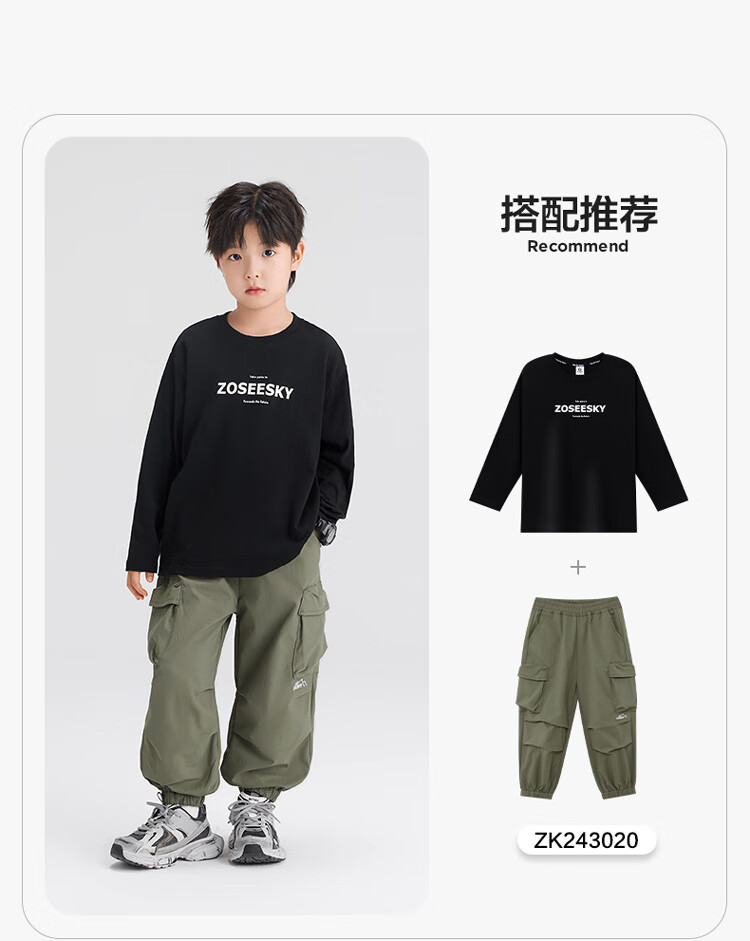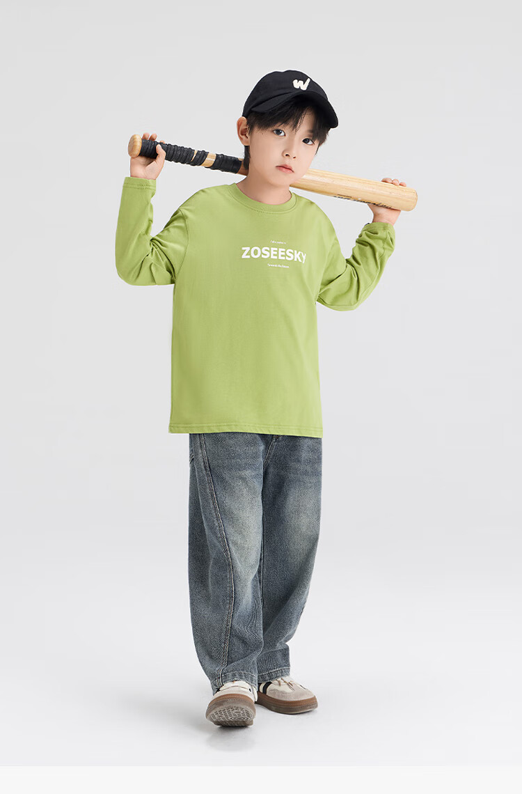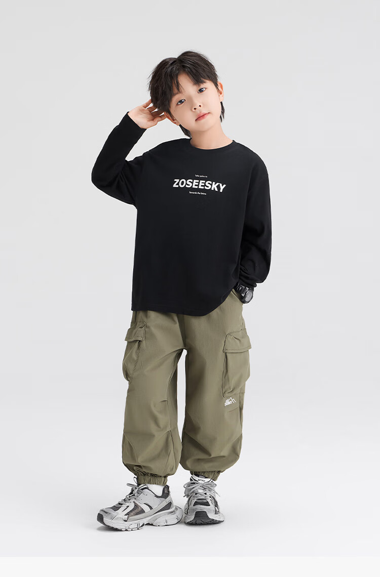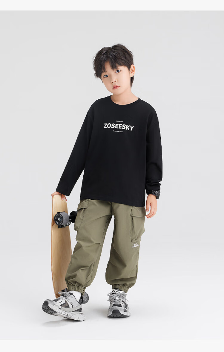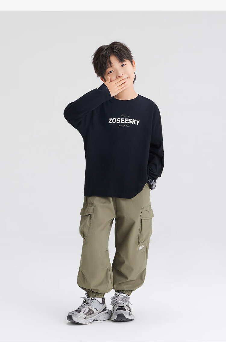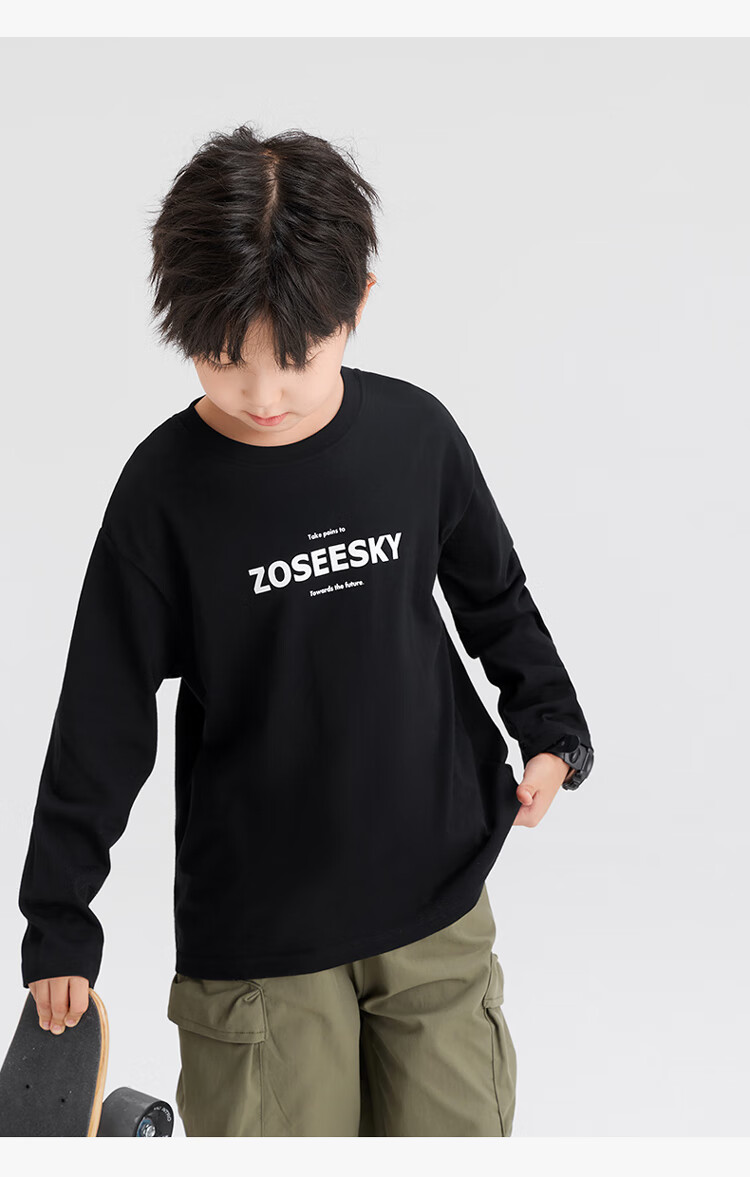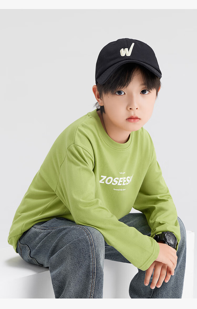 Zuoxi Boys Long Sleeve T-Shirt Children's Class A Pure Cotton Autumn Clothing 2025 New Boys Spring and Autumn Top Trendy White 160