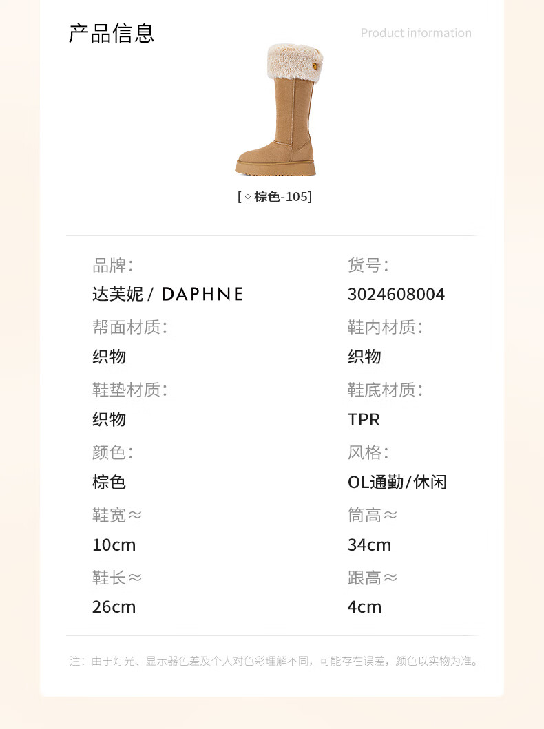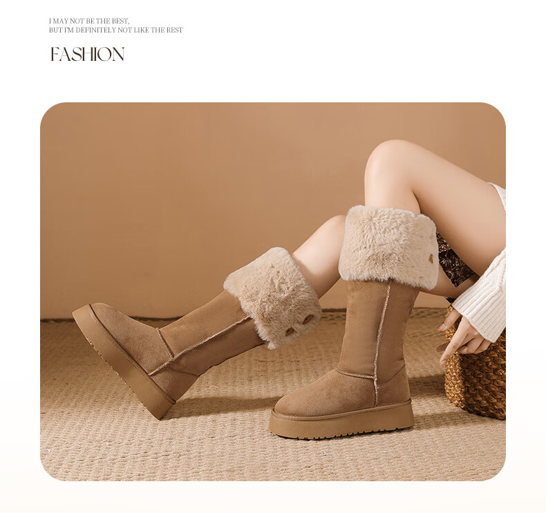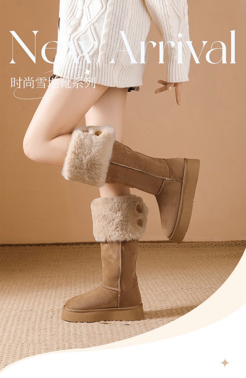 Daphne autumn and winter velvet thickened two-wear snow boots Northeast warm thick-soled slim long cotton boots brown 38