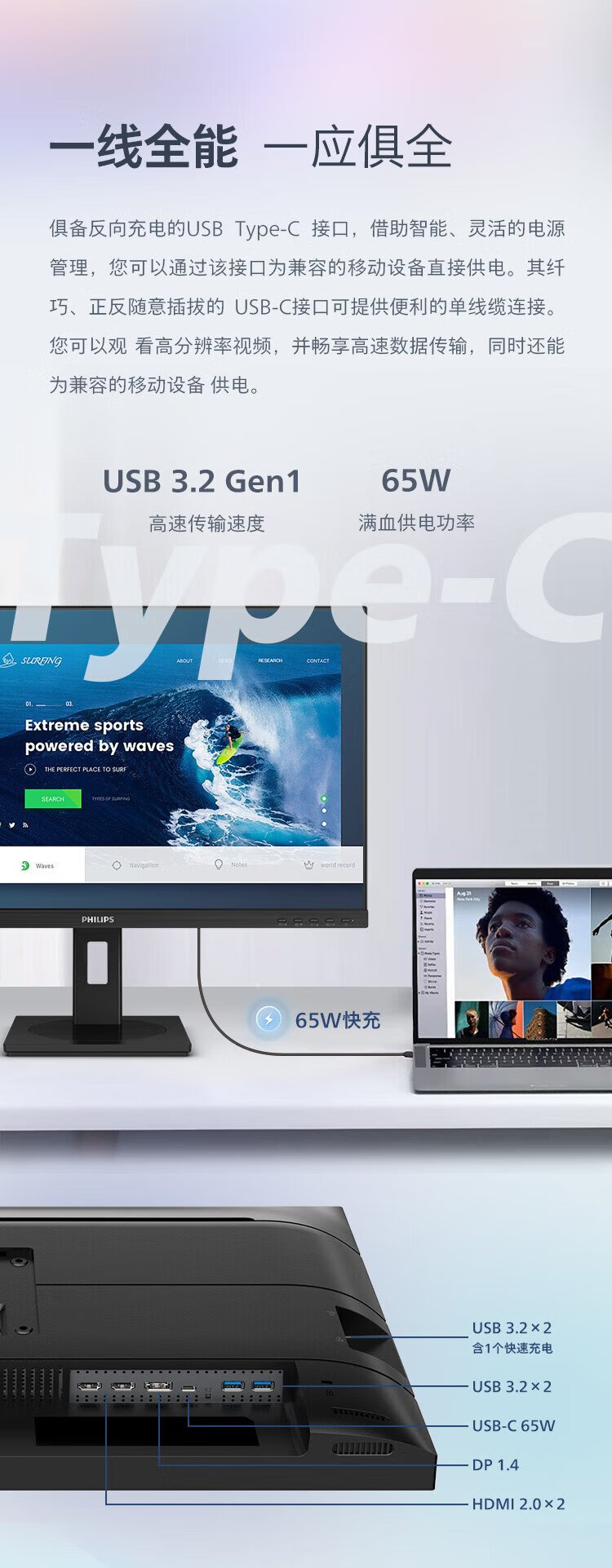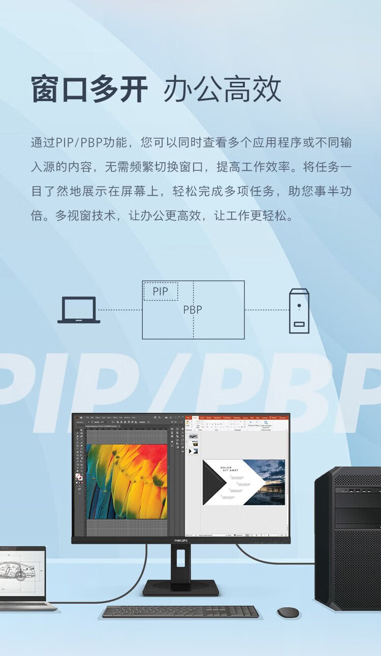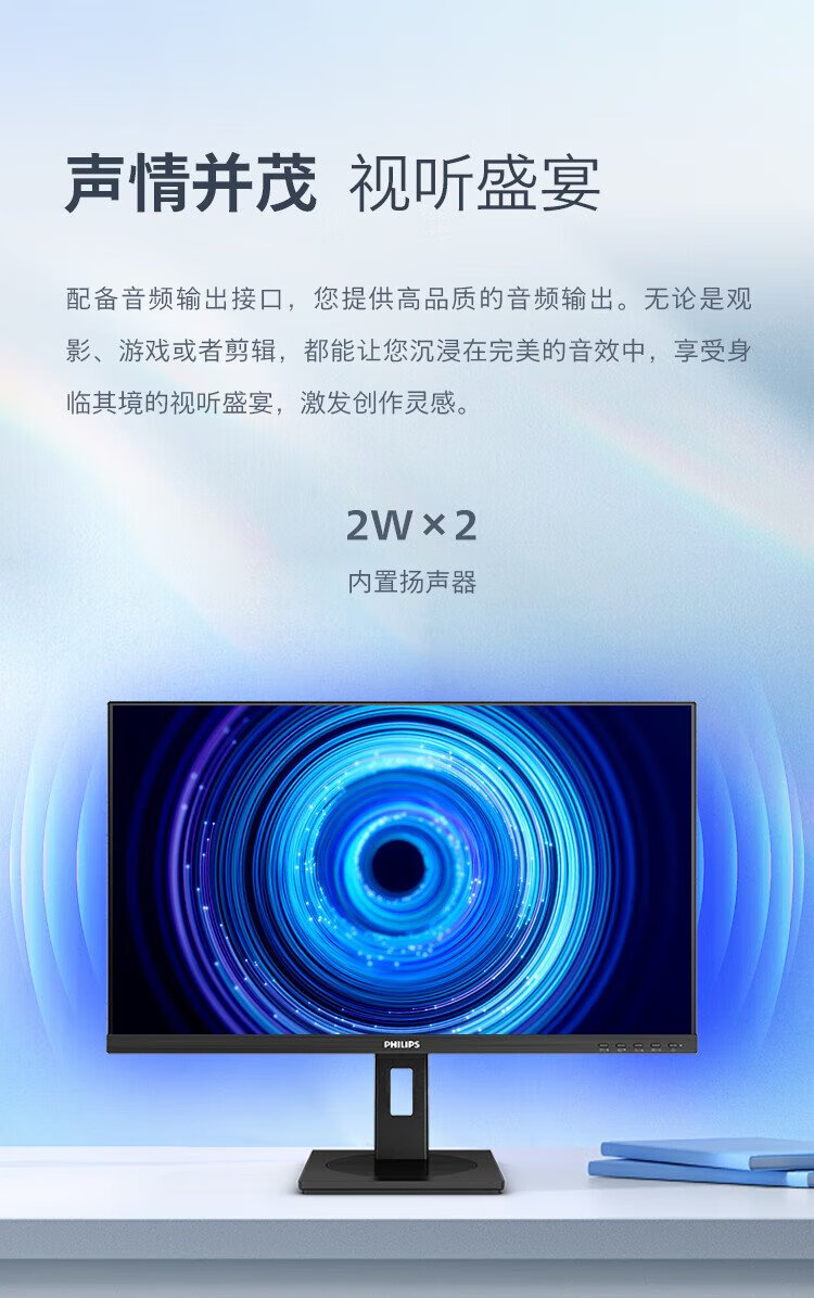 Philips (PHILIPS) 27-inch 4K monitor IPS Type-C65W built-in speaker low blue light rotating lift PBP split screen office computer display 27B1U3900L