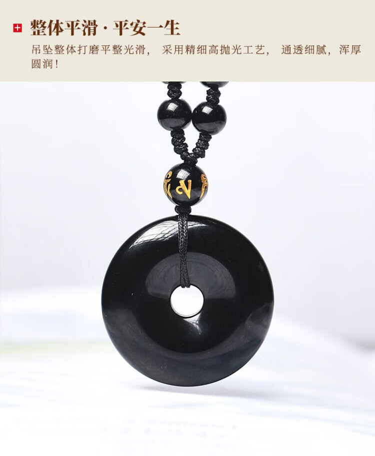 Jingying natural obsidian pendant for men and women, amulet transfer safety buckle necklace, gift for wife, mother, boyfriend and girlfriend