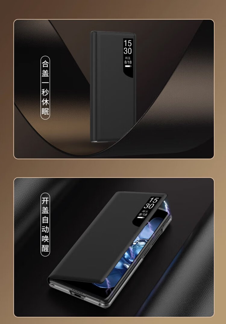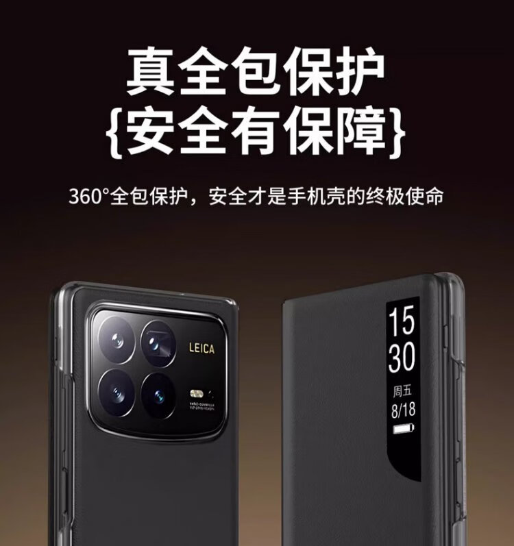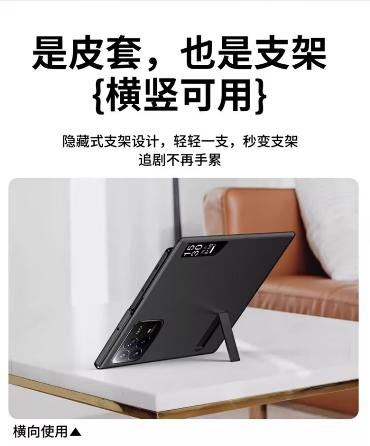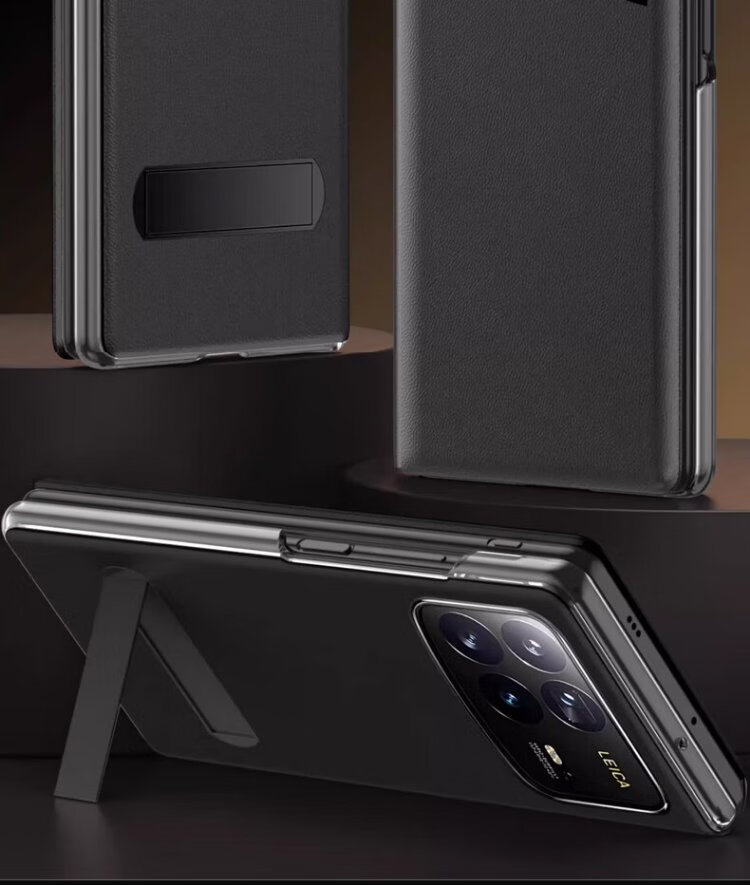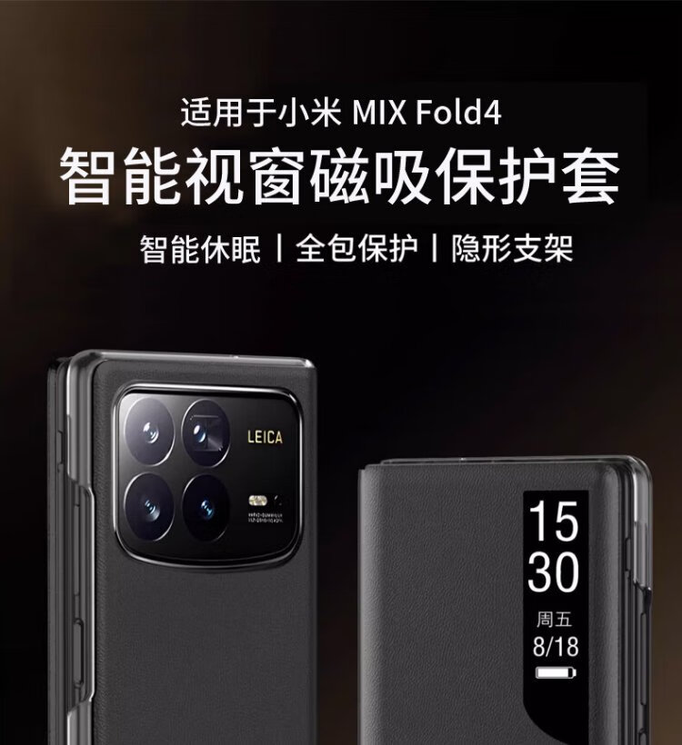 Genuine suitable for Xiaomi mix fold4 mobile phone case, protective leather case, MixFold4 folding screen stand, all-inclusive flip, smart window, anti-fall, magnetic flip, black