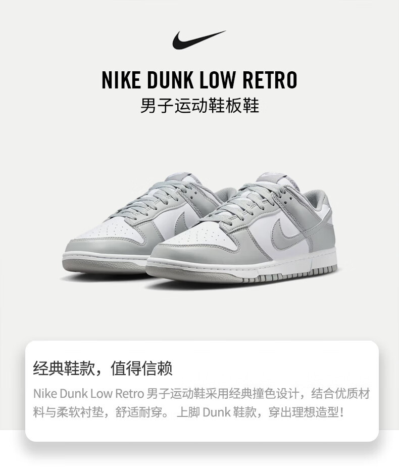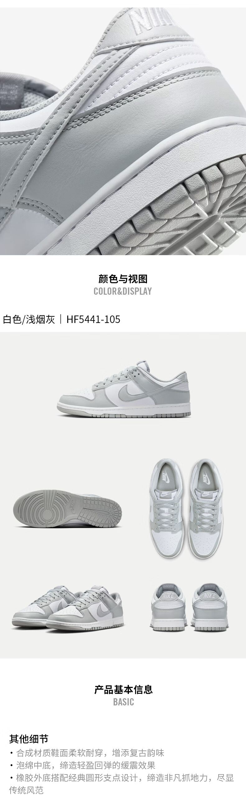 Nike NIKE sneakers men's casual shoes DUNK comfortable and versatile sports shoes HF5441-105 white gray 41