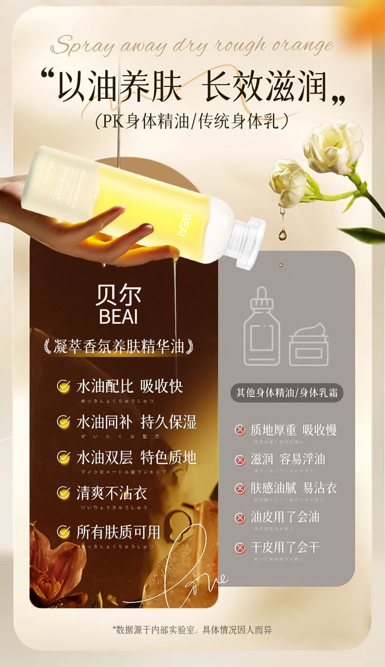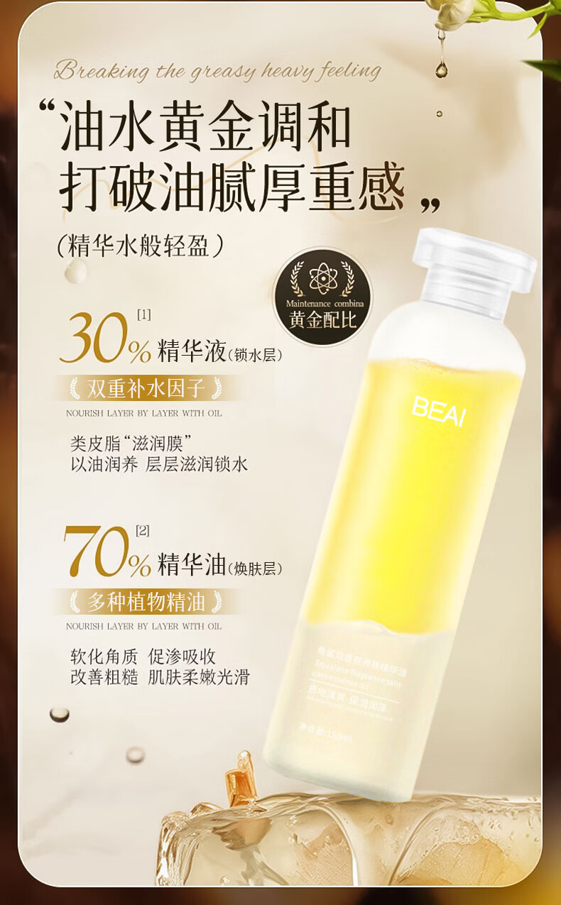 BEAI body lotion essential oil glycerin nourishes and moisturizes the skin in autumn and winter, relieves itchiness and long-lasting fragrance for women 150g