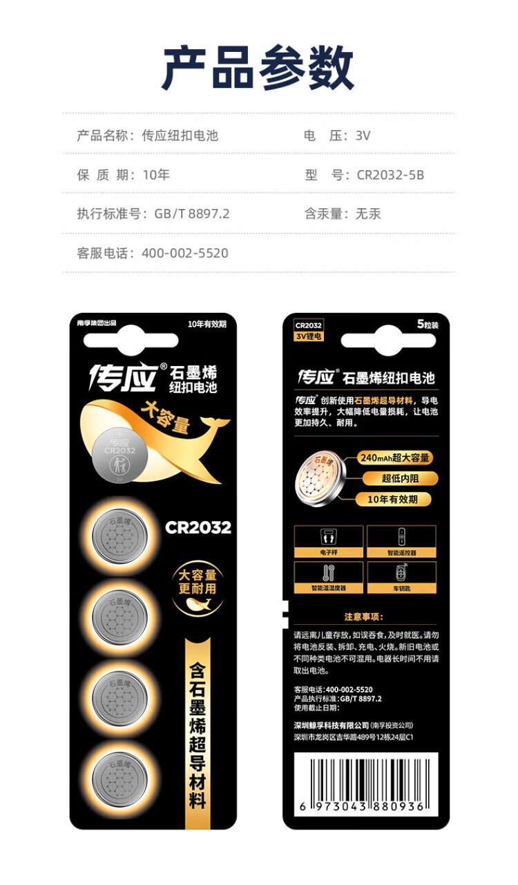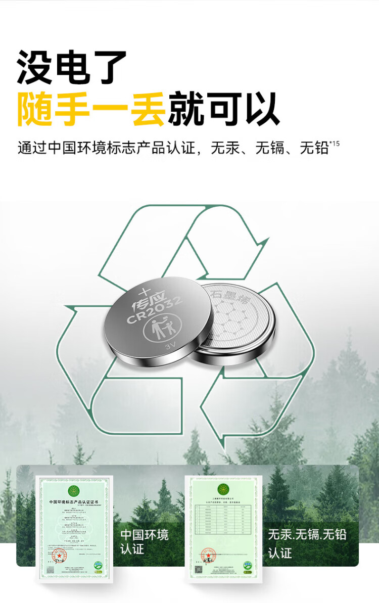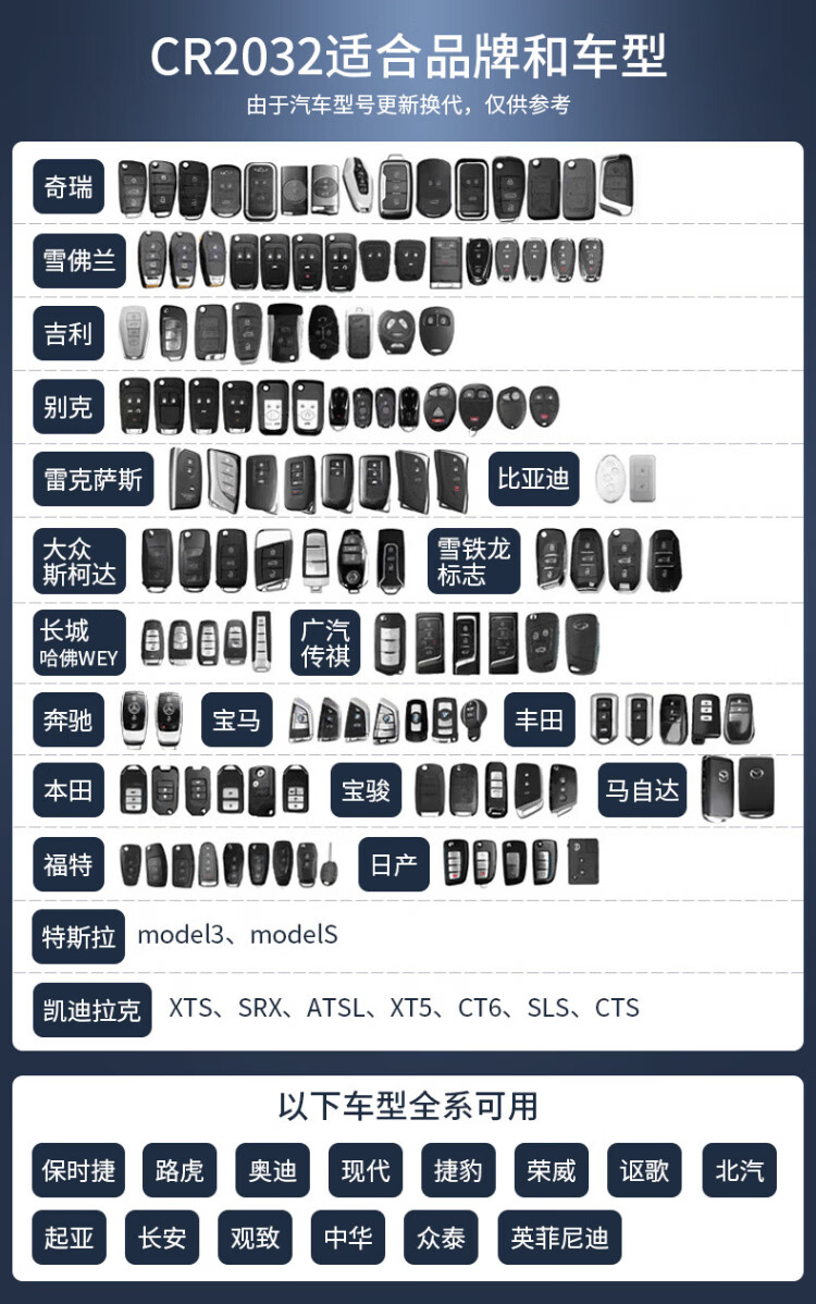 Chuanying Nanfu CR2032 button battery 5 pieces 3V lithium battery suitable for Volkswagen, Audi, Hyundai and other car keys, watches/remote controls, etc. (single piece)