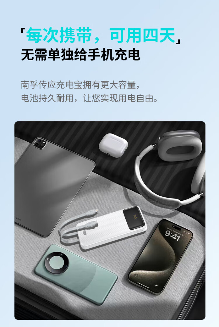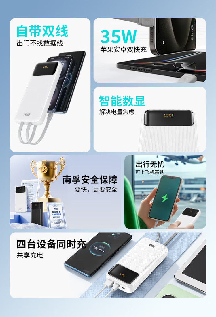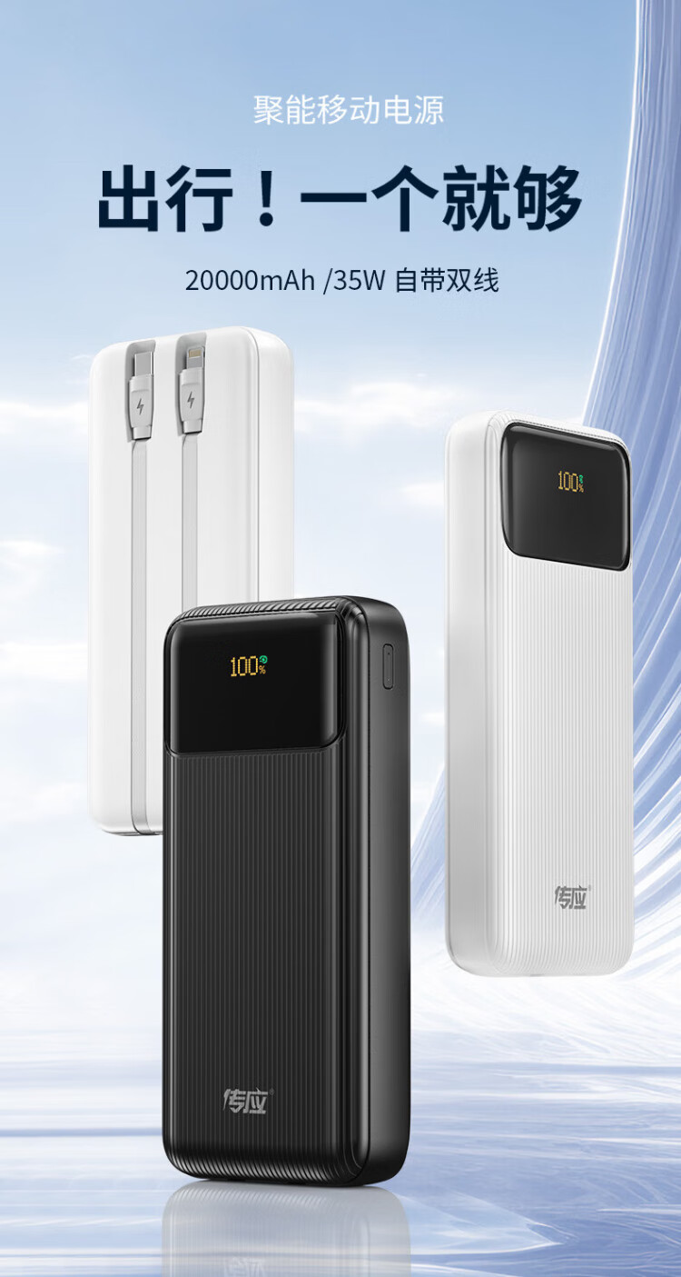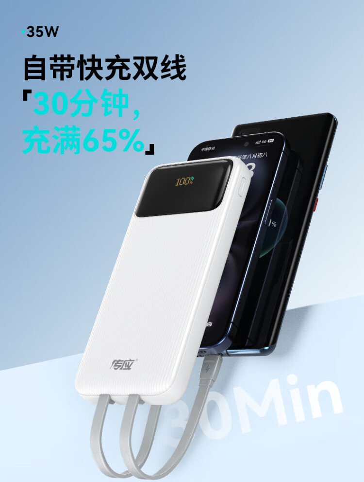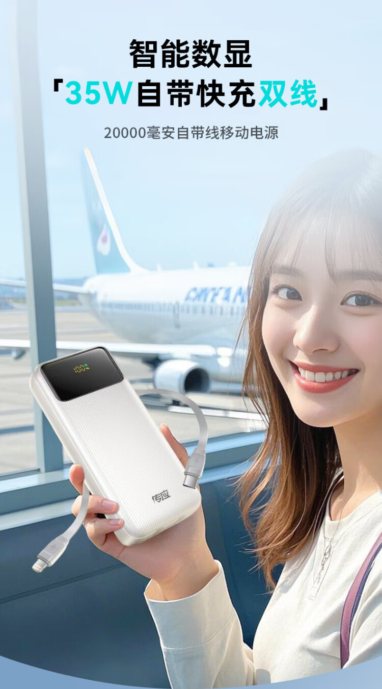 Chuanying 3C certified Nanfu power bank 20000 mAh with built-in cable large capacity 30W/33W/35W mobile power supply can be used on airplanes Apple 17/16/15 Huawei Xiaomi