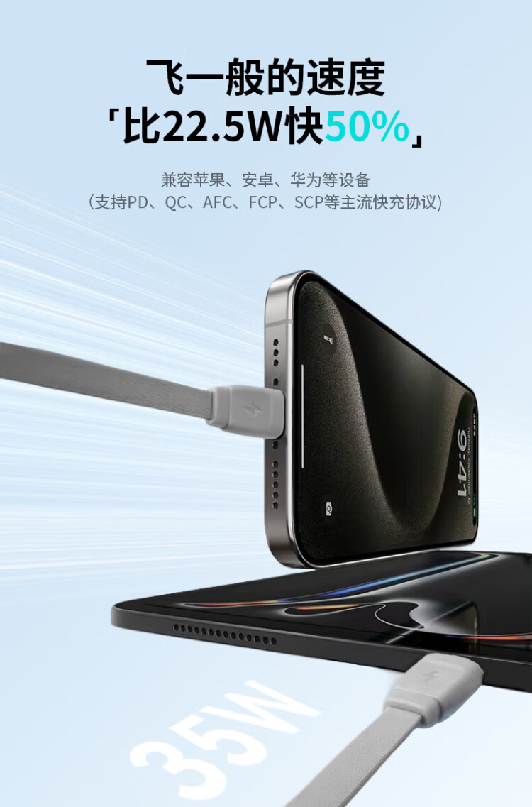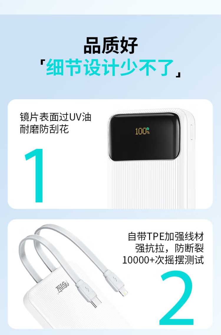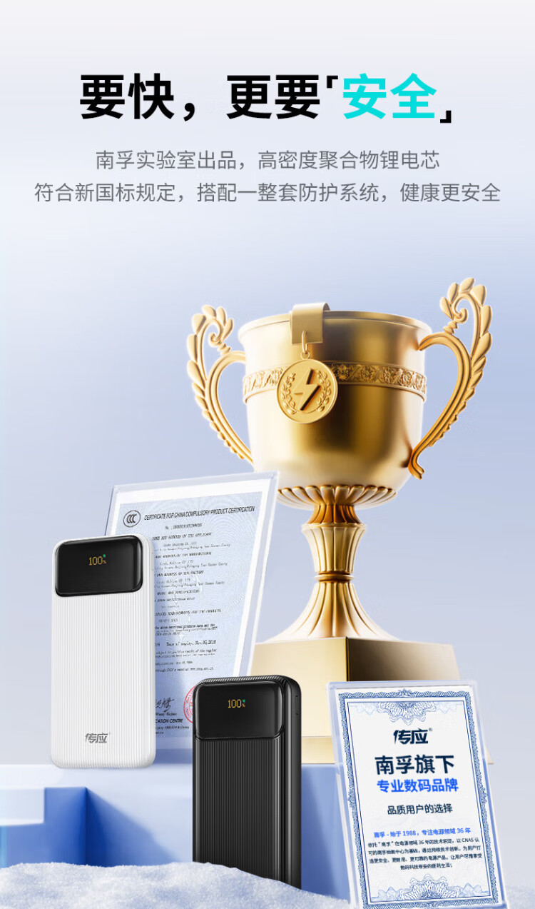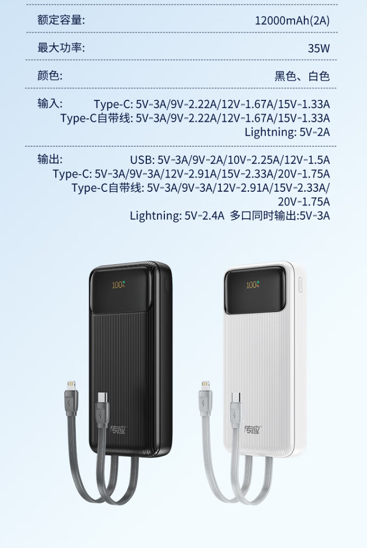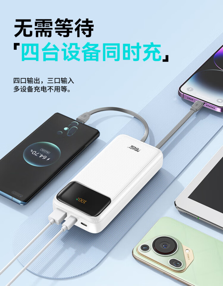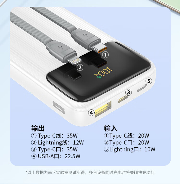 Chuanying 3C certified Nanfu power bank 20000 mAh with built-in cable large capacity 30W/33W/35W mobile power supply can be used on airplanes Apple 17/16/15 Huawei Xiaomi