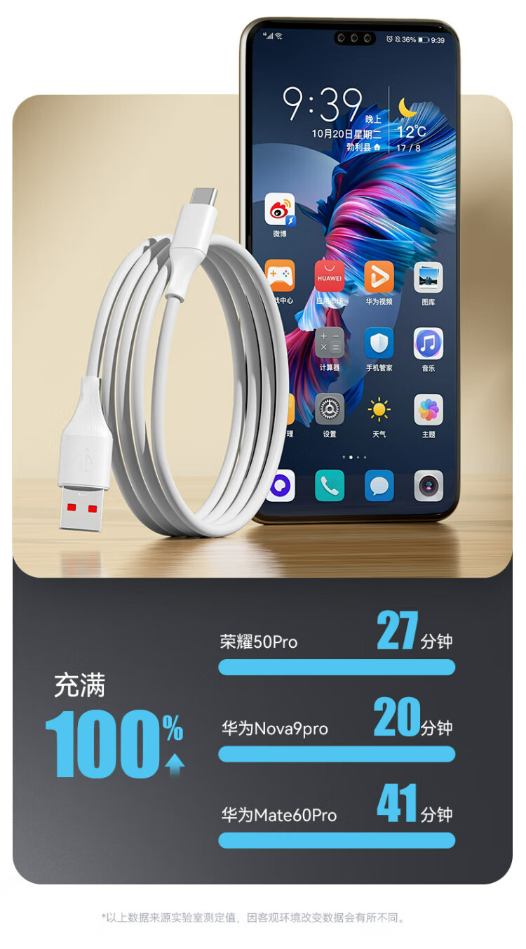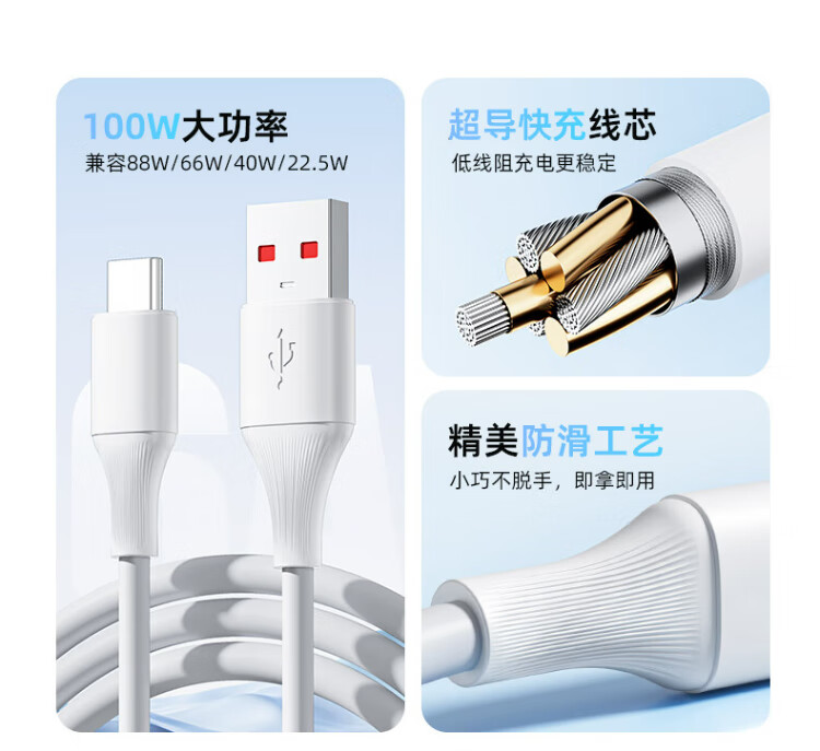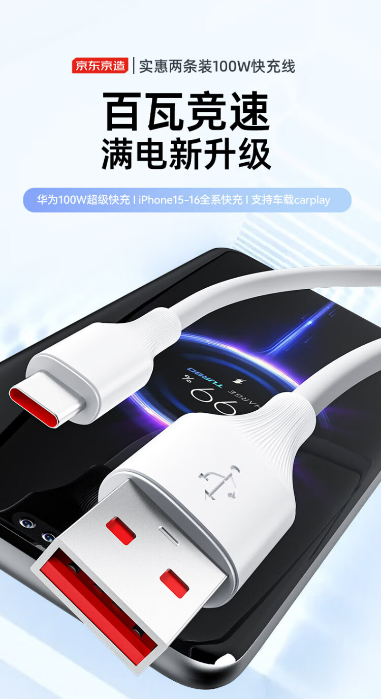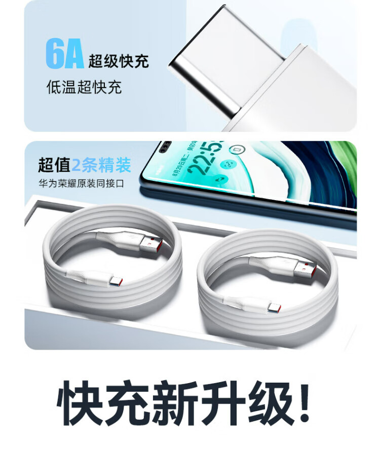 Made in Tokyo, two pack Huawei Honor 100W/88W/66W fast charging 6a high current A to Type-C data cable suitable for Apple and Xiaomi mobile phones, car tablets