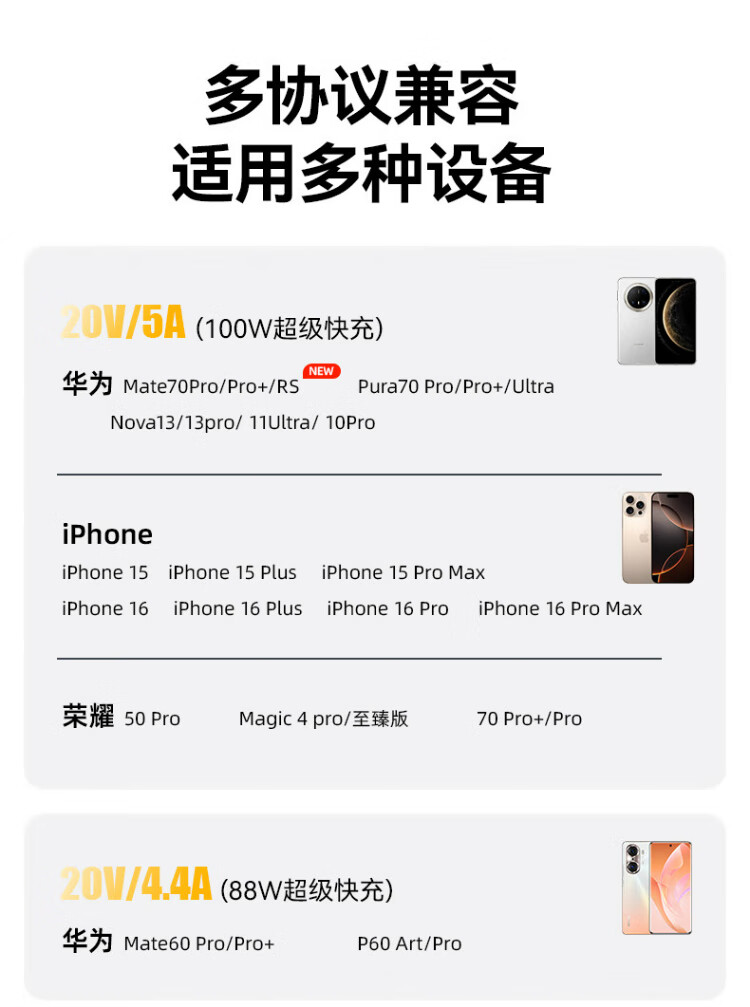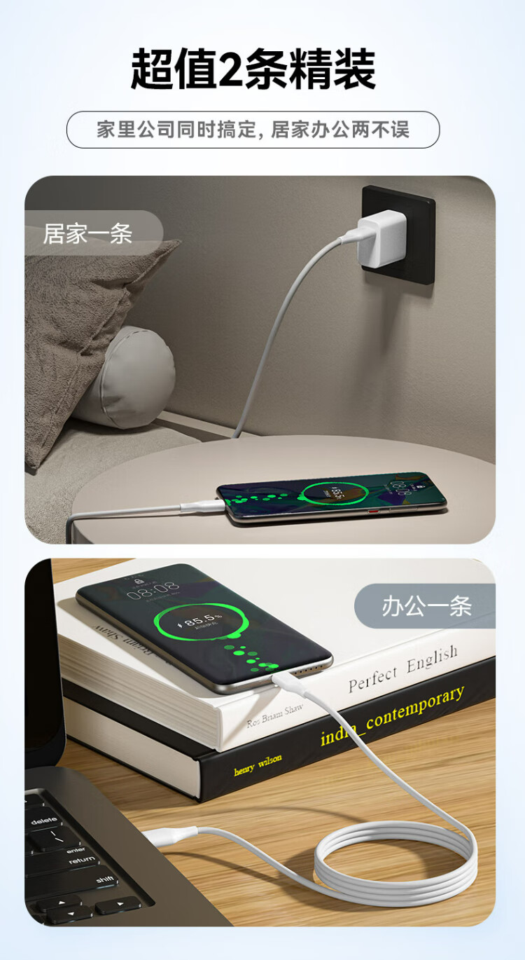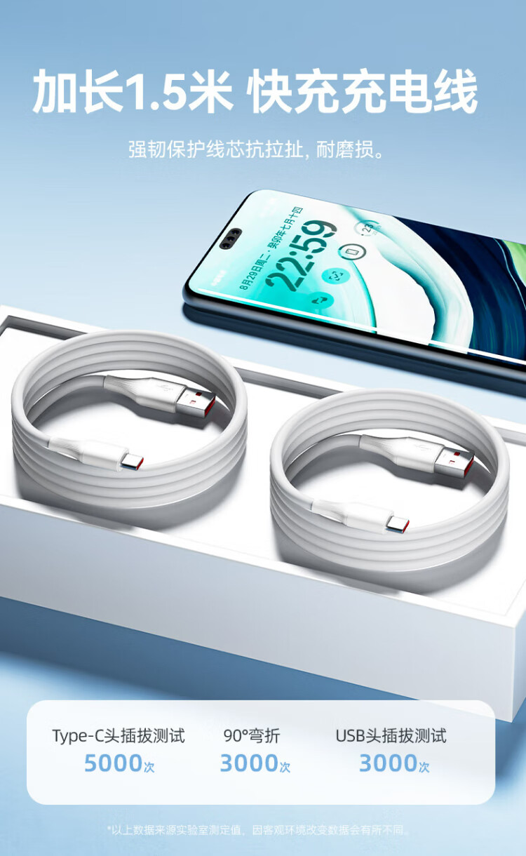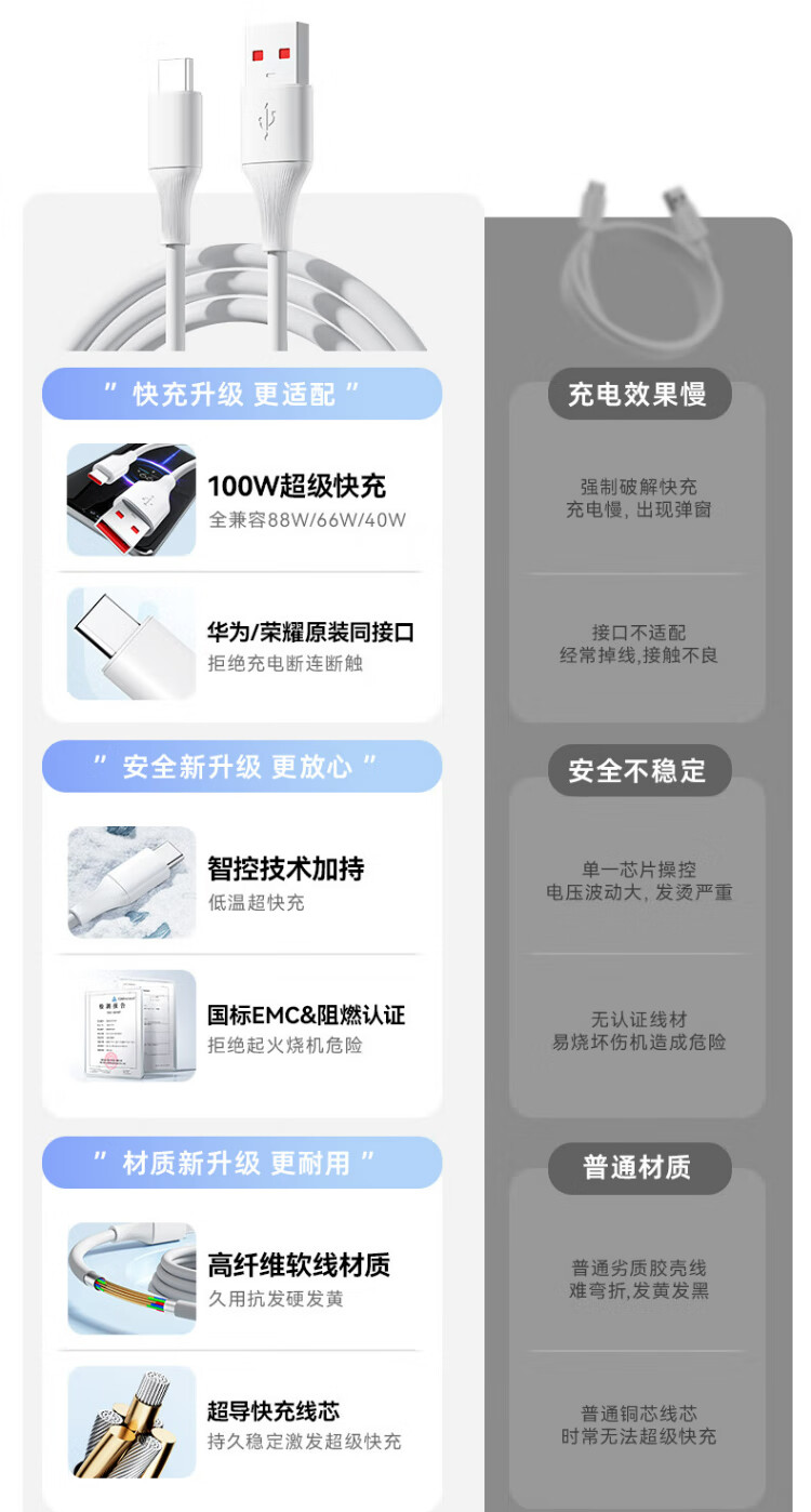 Made in Tokyo, two pack Huawei Honor 100W/88W/66W fast charging 6a high current A to Type-C data cable suitable for Apple and Xiaomi mobile phones, car tablets