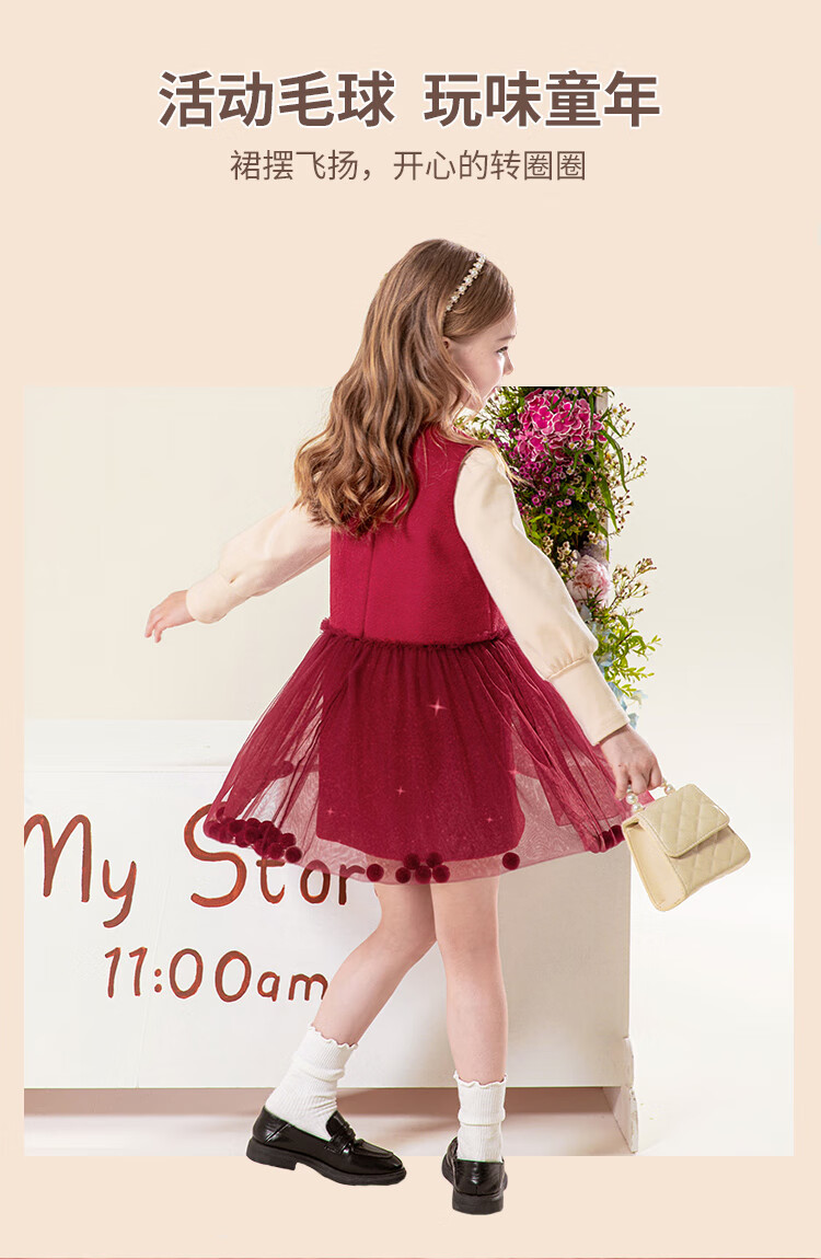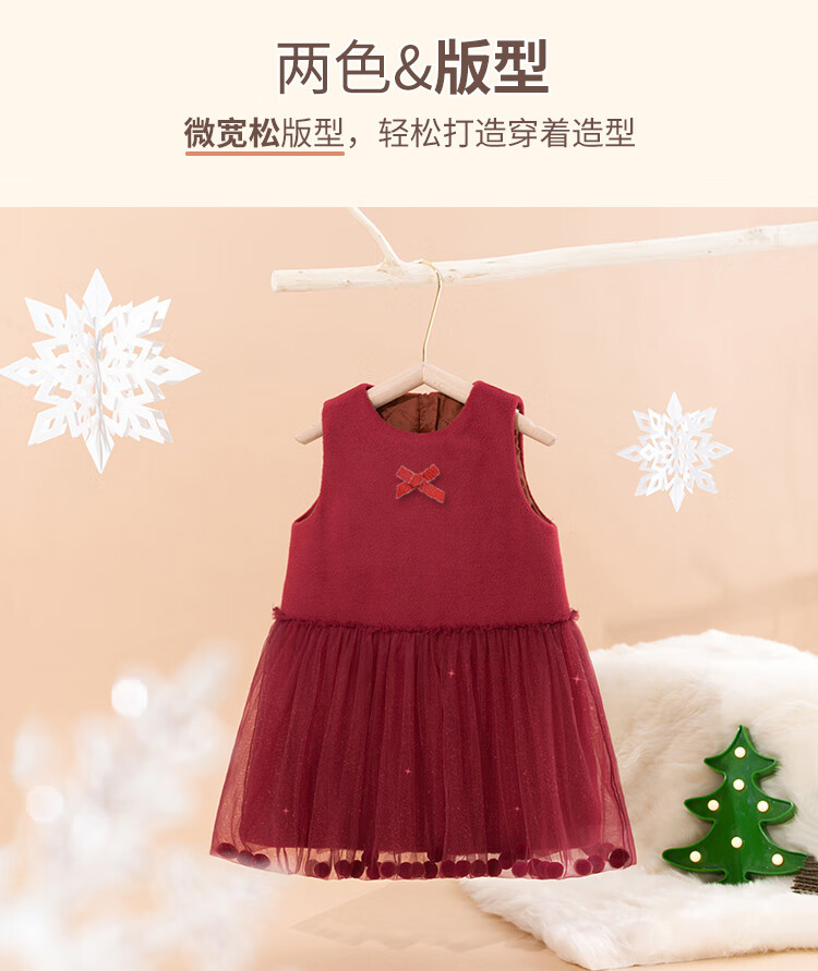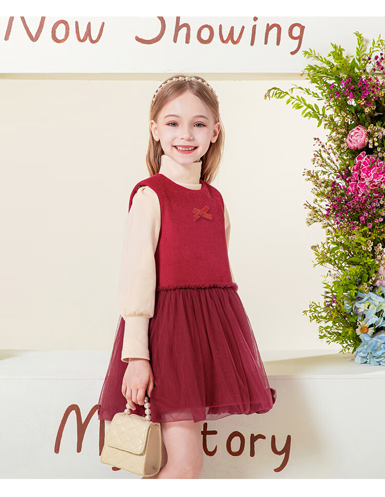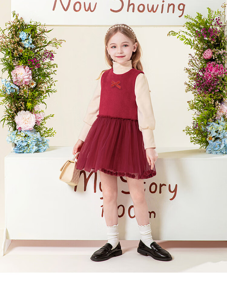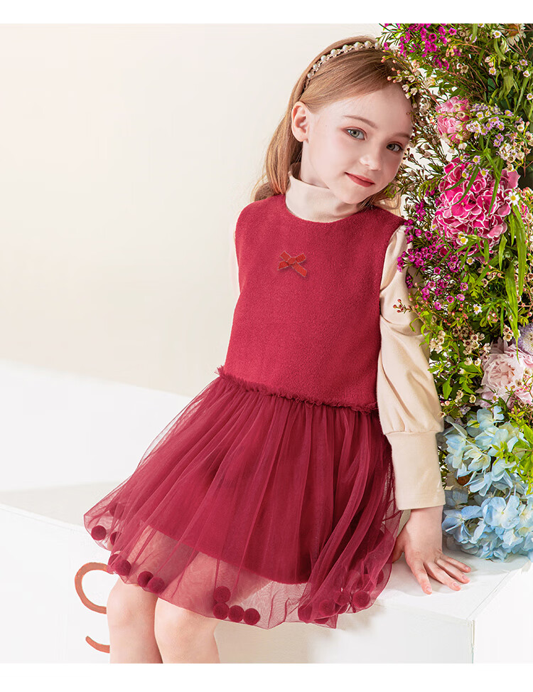 LUOBOBEIBEI Girls Winter Dress Red New Year Clothes Korean Style Versatile Skirt Christmas Clothes Pomegranate Red 140