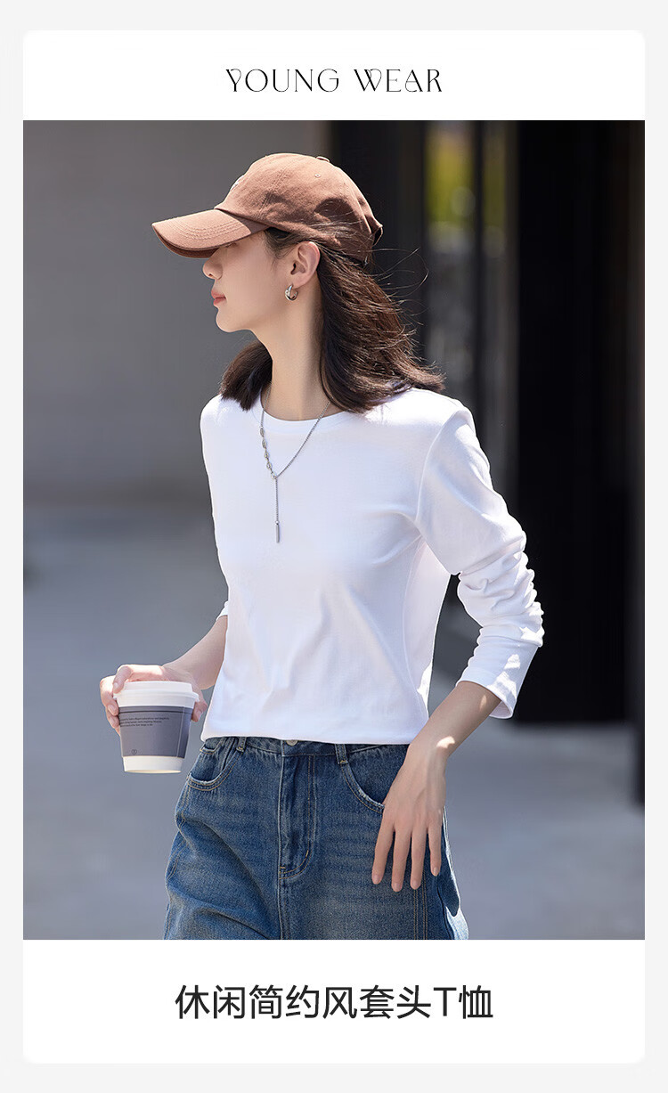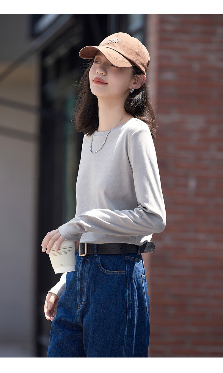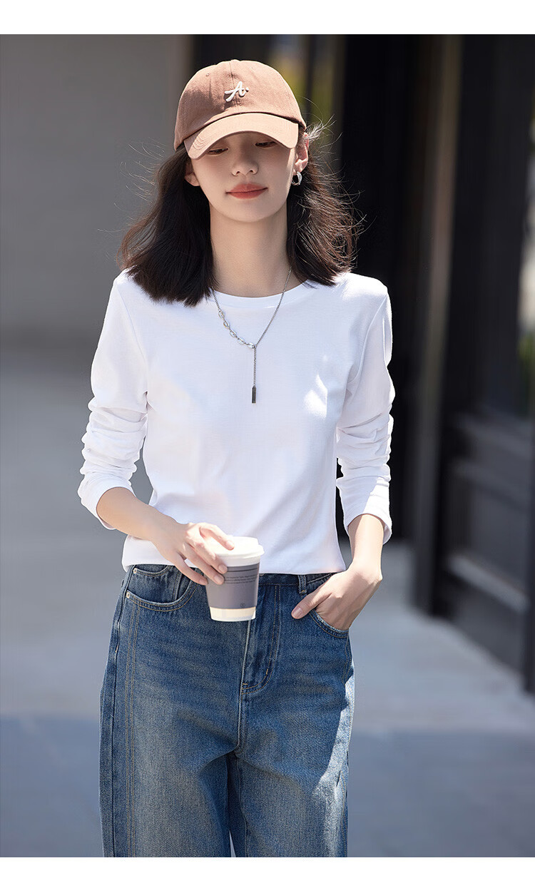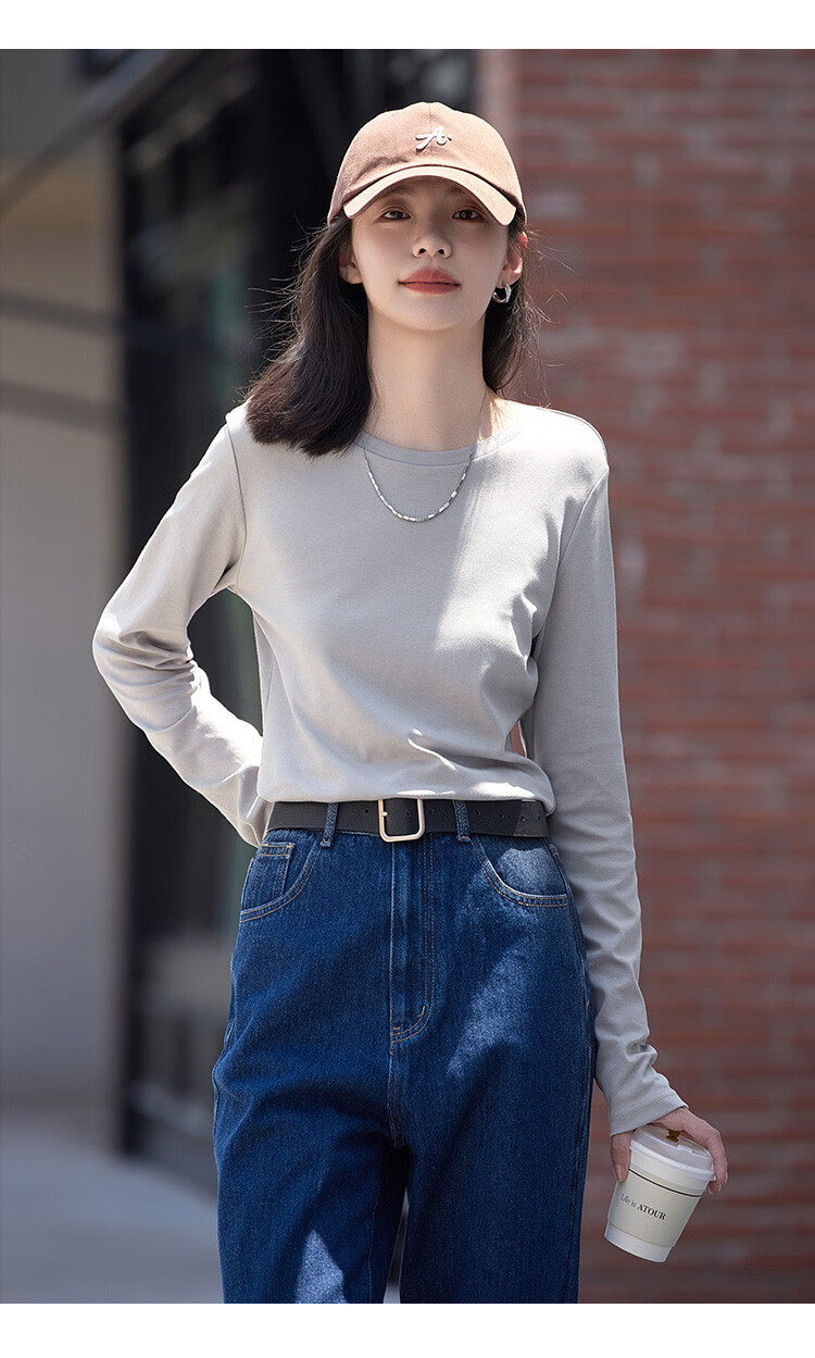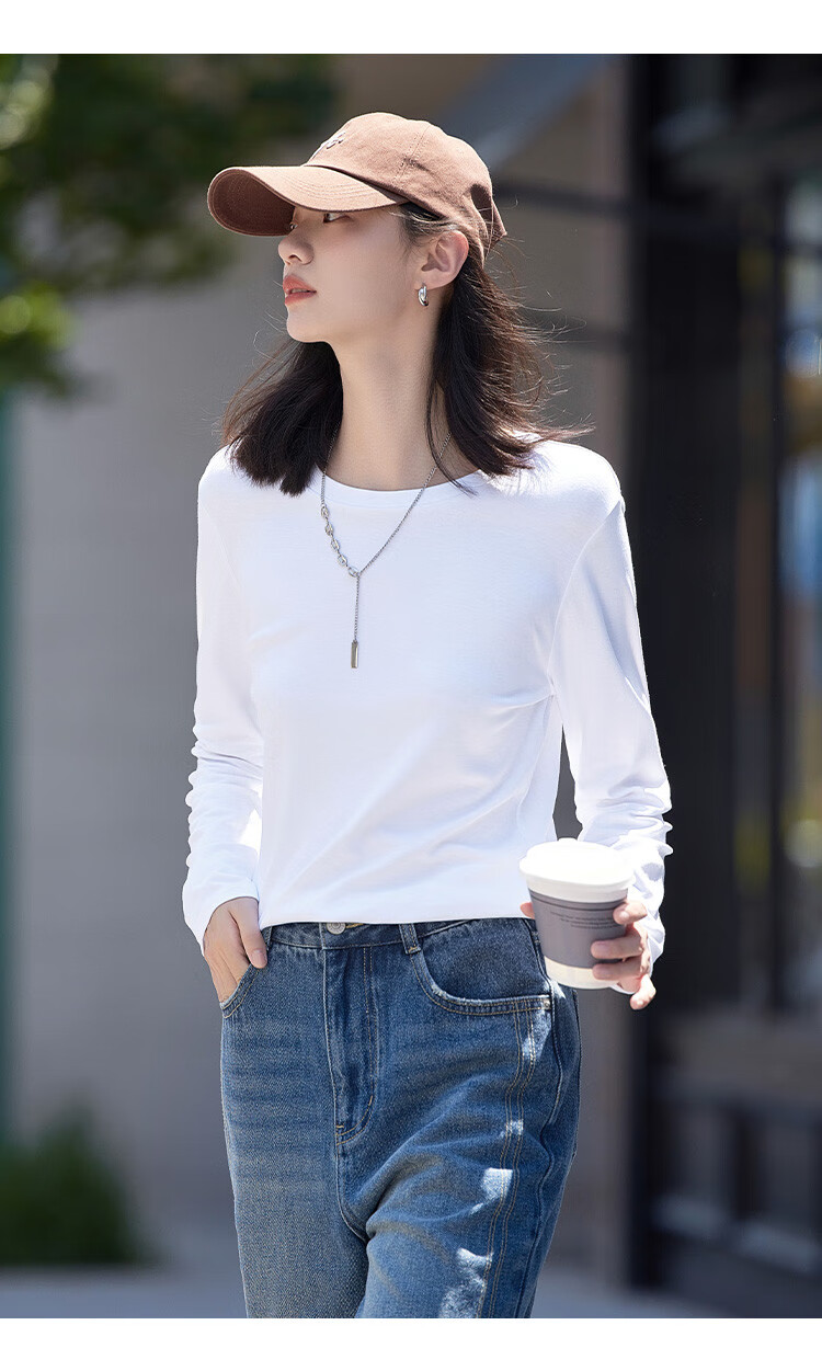 Demana Classic Simple T-shirt Spring and Autumn Round Neck Pullover Basic Bottoming Long Sleeve T-shirt for Women