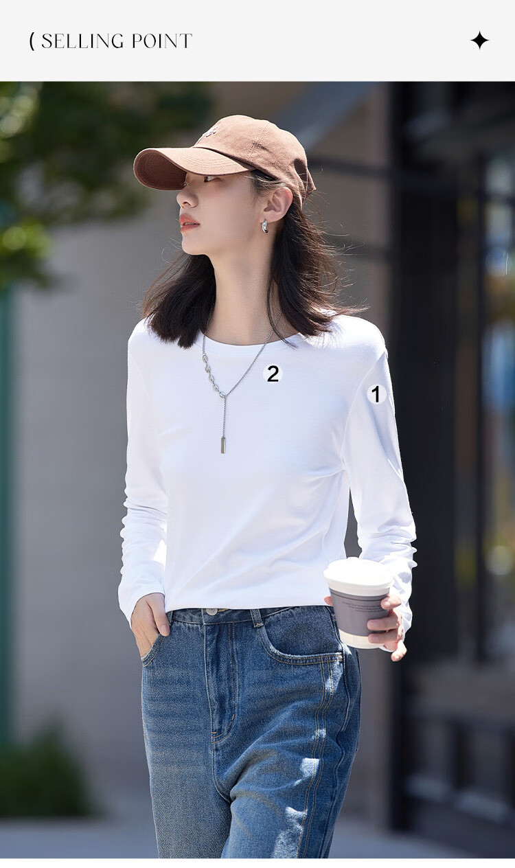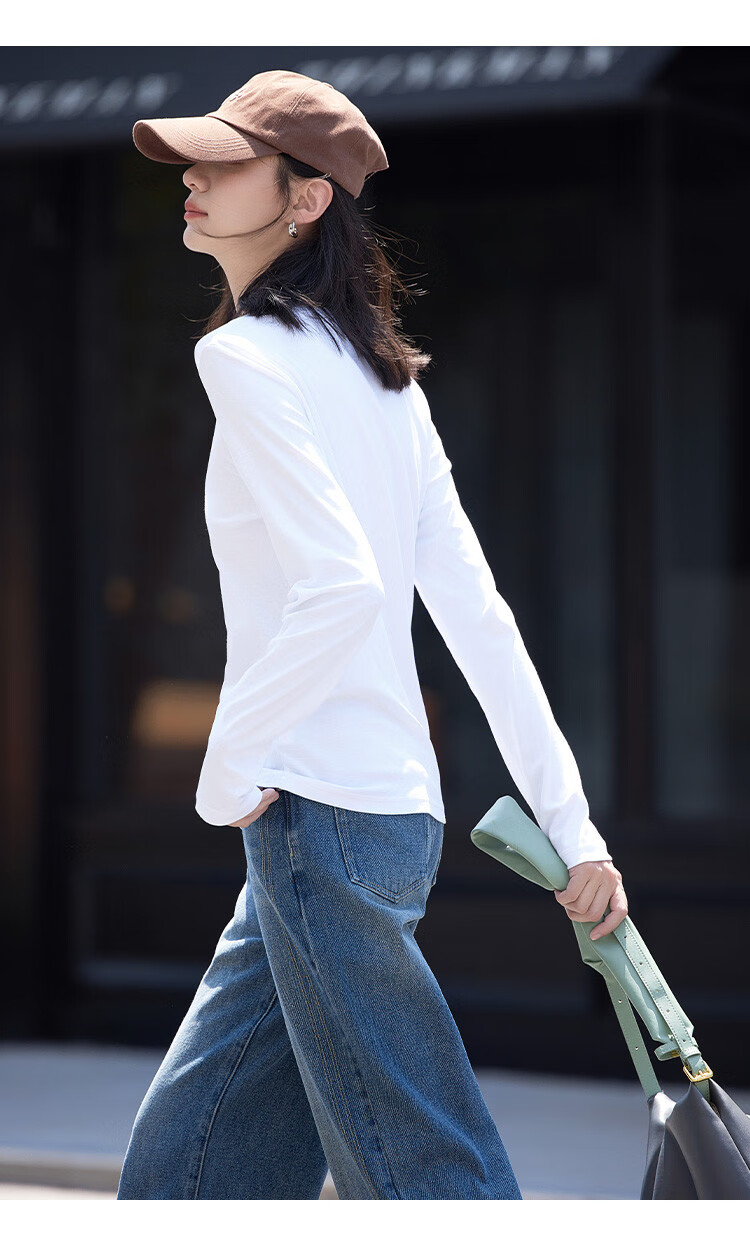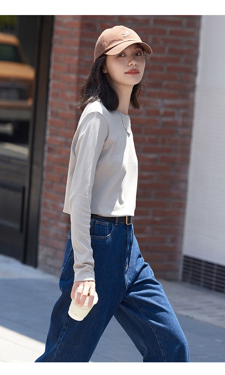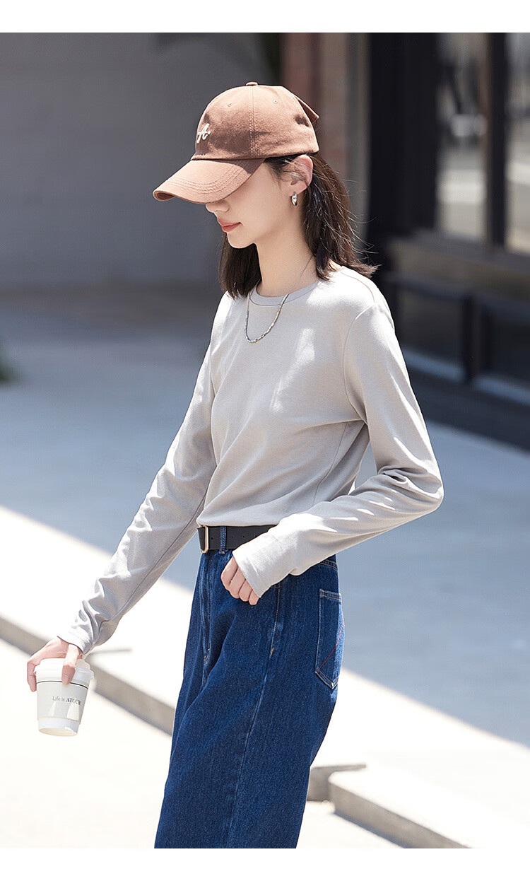 Demana Classic Simple T-shirt Spring and Autumn Round Neck Pullover Basic Bottoming Long Sleeve T-shirt for Women