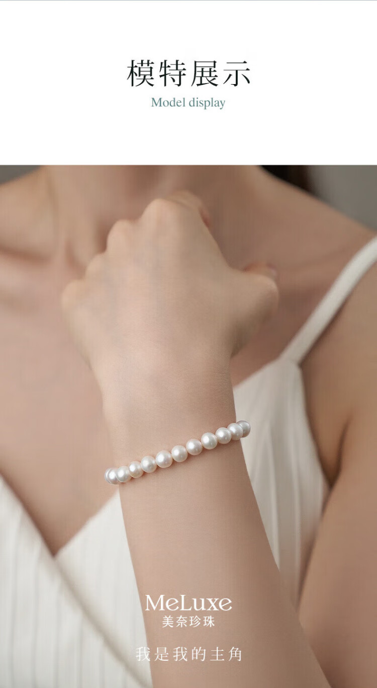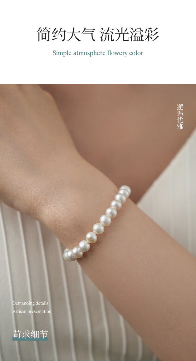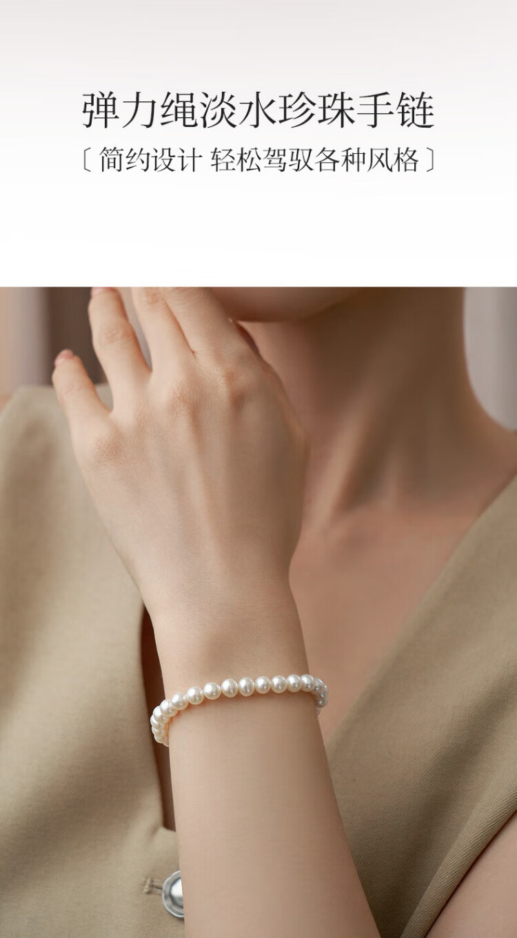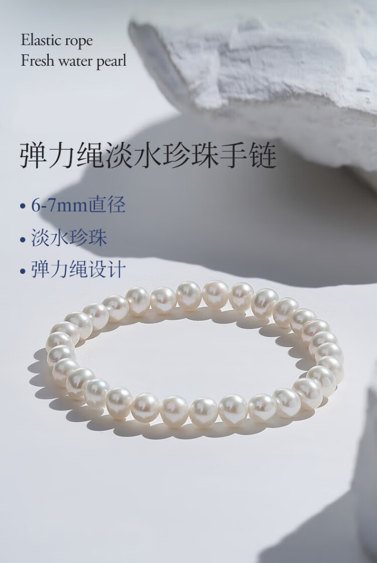 Meluxe6-7mm freshwater pearl nearly round bright light elastic rope bracelet birthday gift for girlfriend, wife and mother
