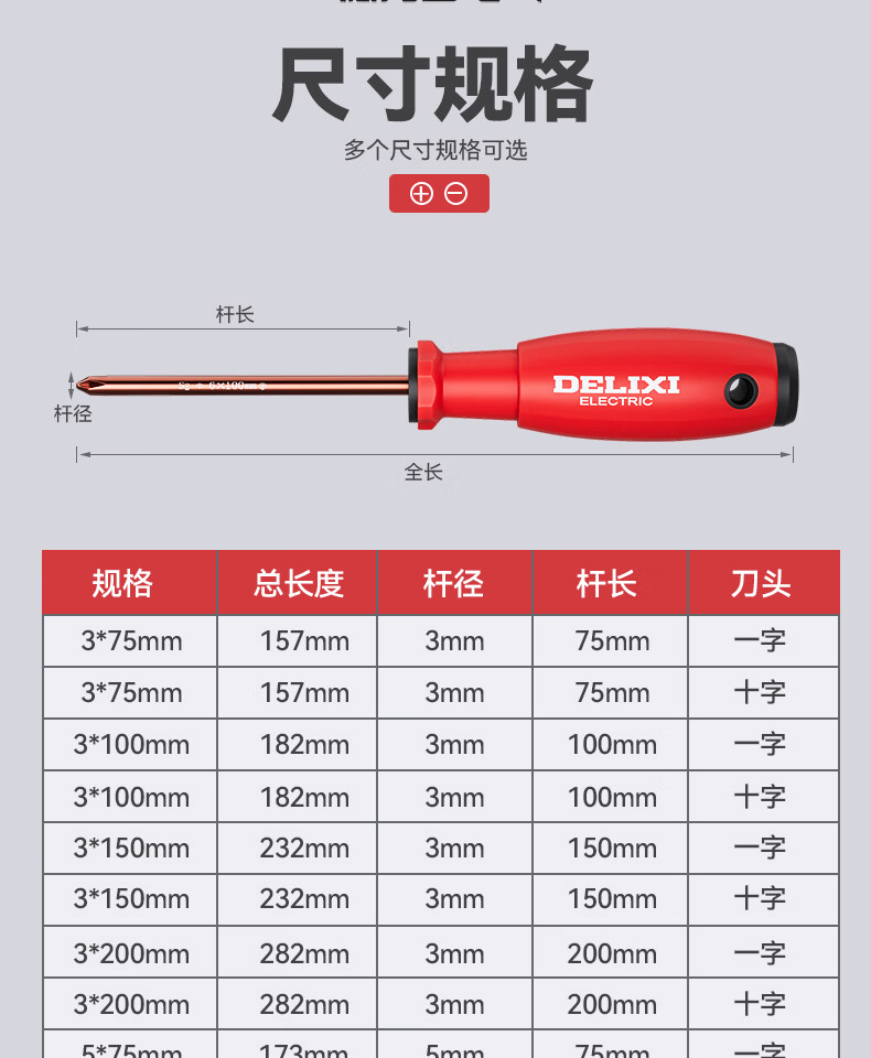 DELIXI ELECTRIC S2 screwdriver set Cross-shaped strong magnetic screwdriver cone S2 screwdriver 6 series six-piece set