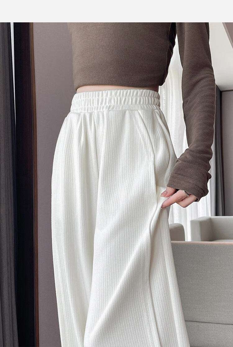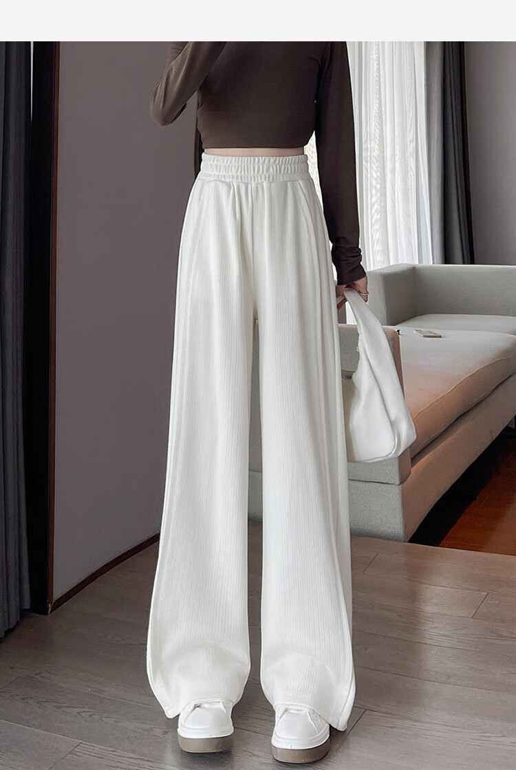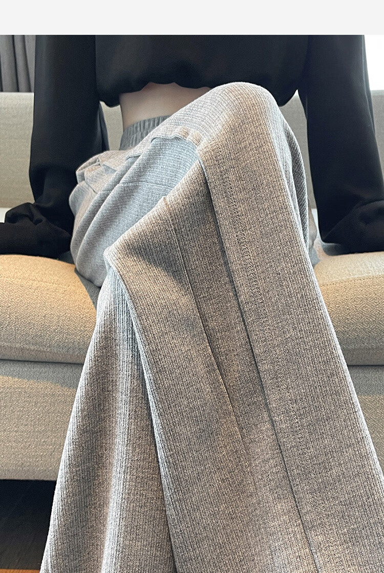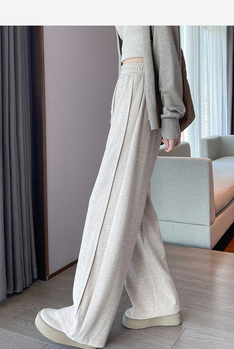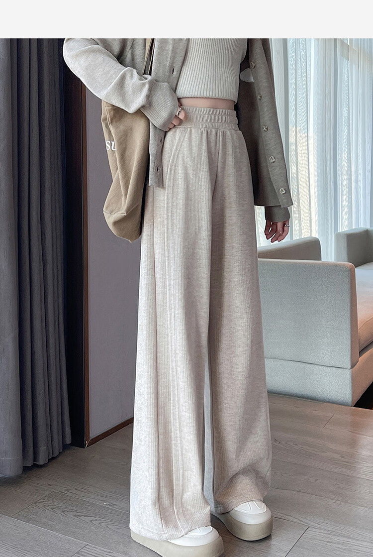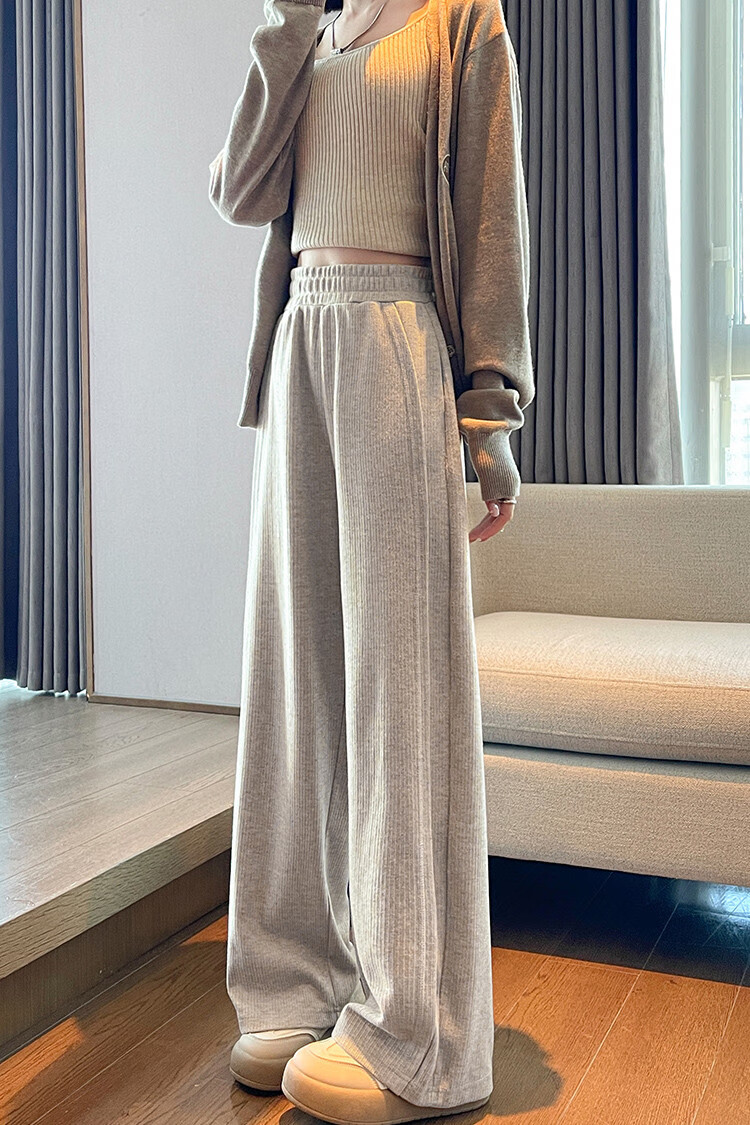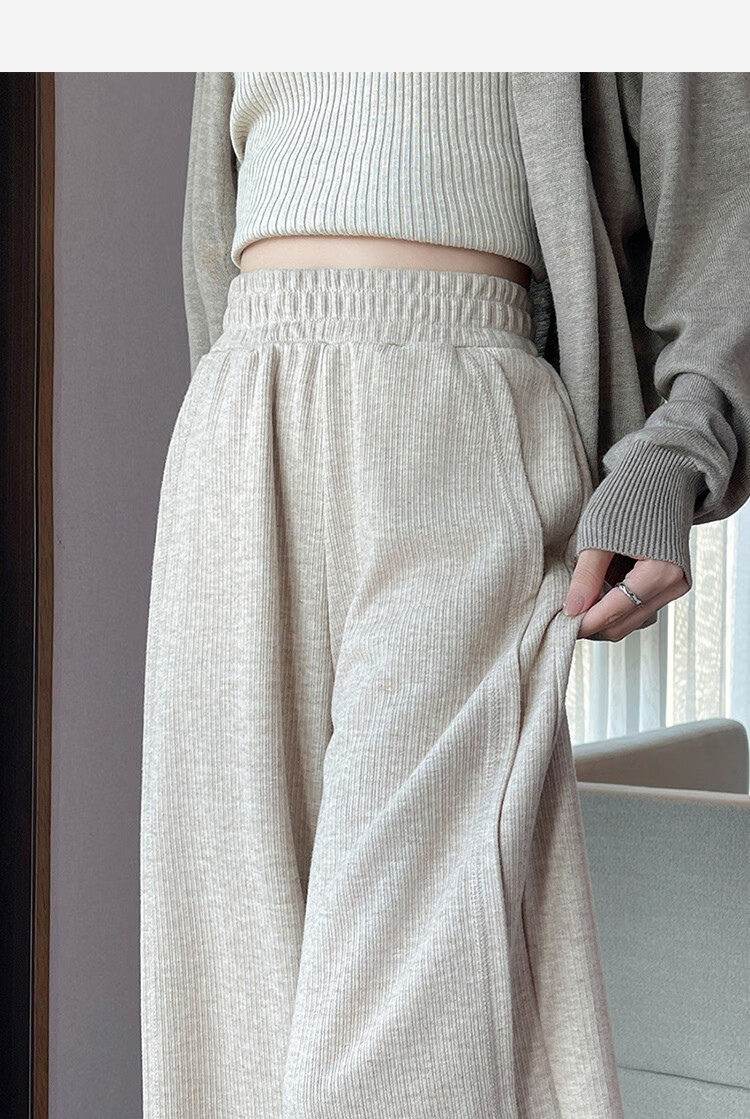 TonLion 2024 Women's High Waist Slim Knitted Wide Leg Pants Oatmeal/Fleece Style L