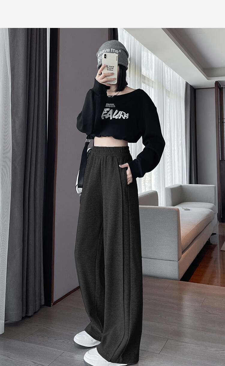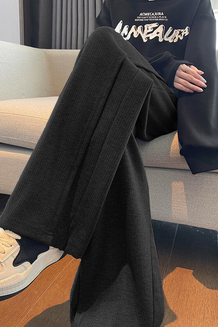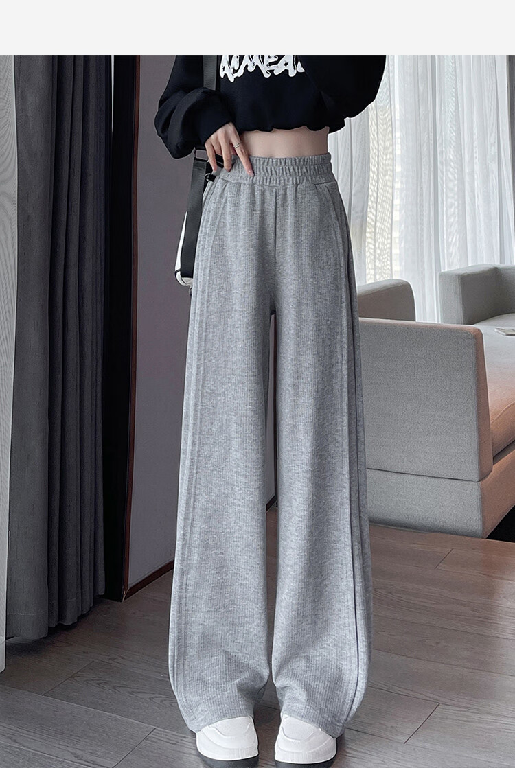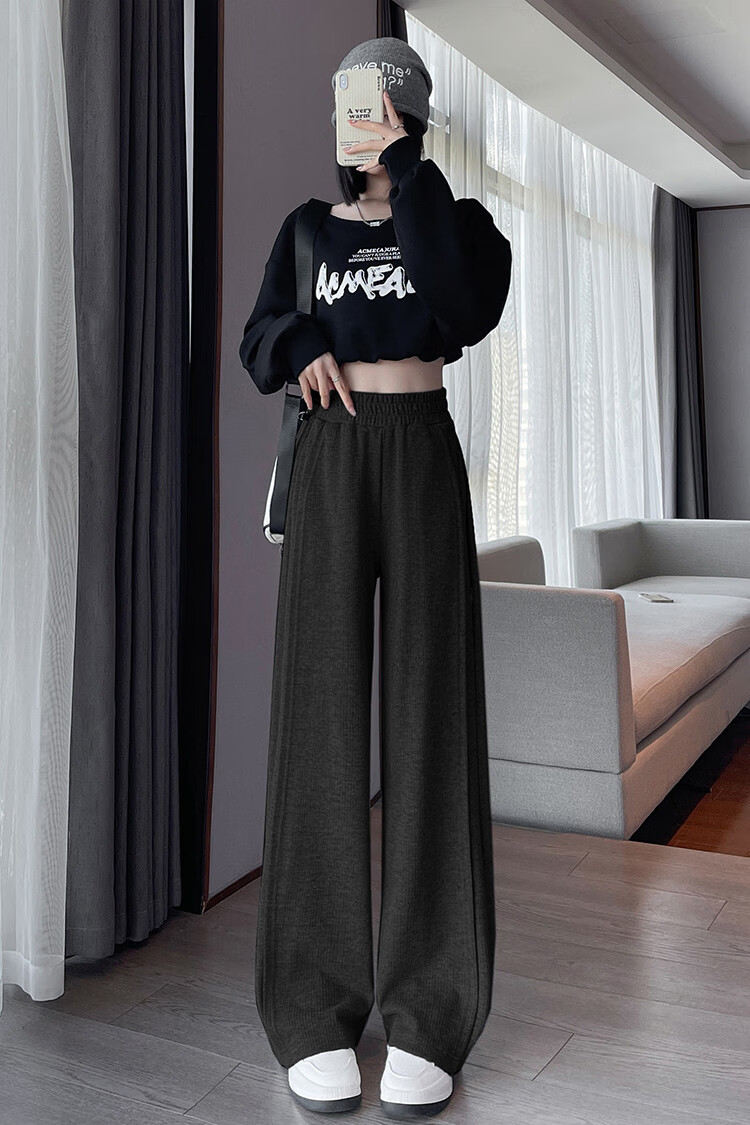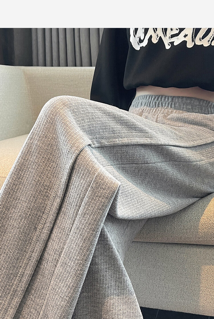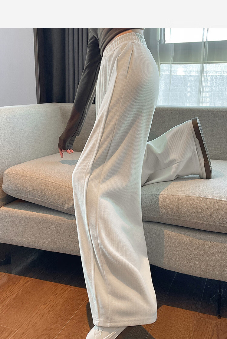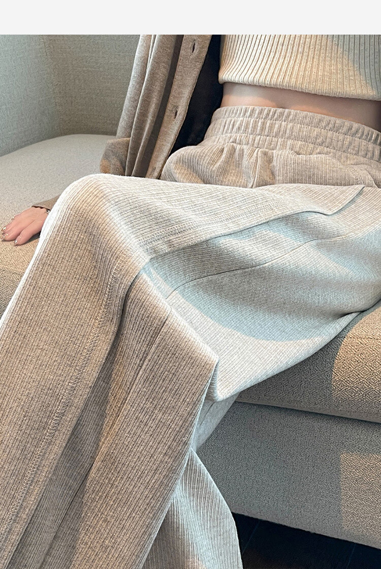 TonLion 2024 Women's High Waist Slim Knitted Wide Leg Pants Oatmeal/Fleece Style L