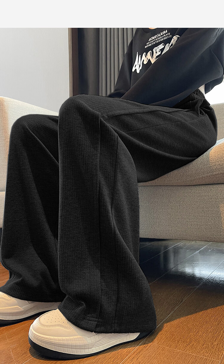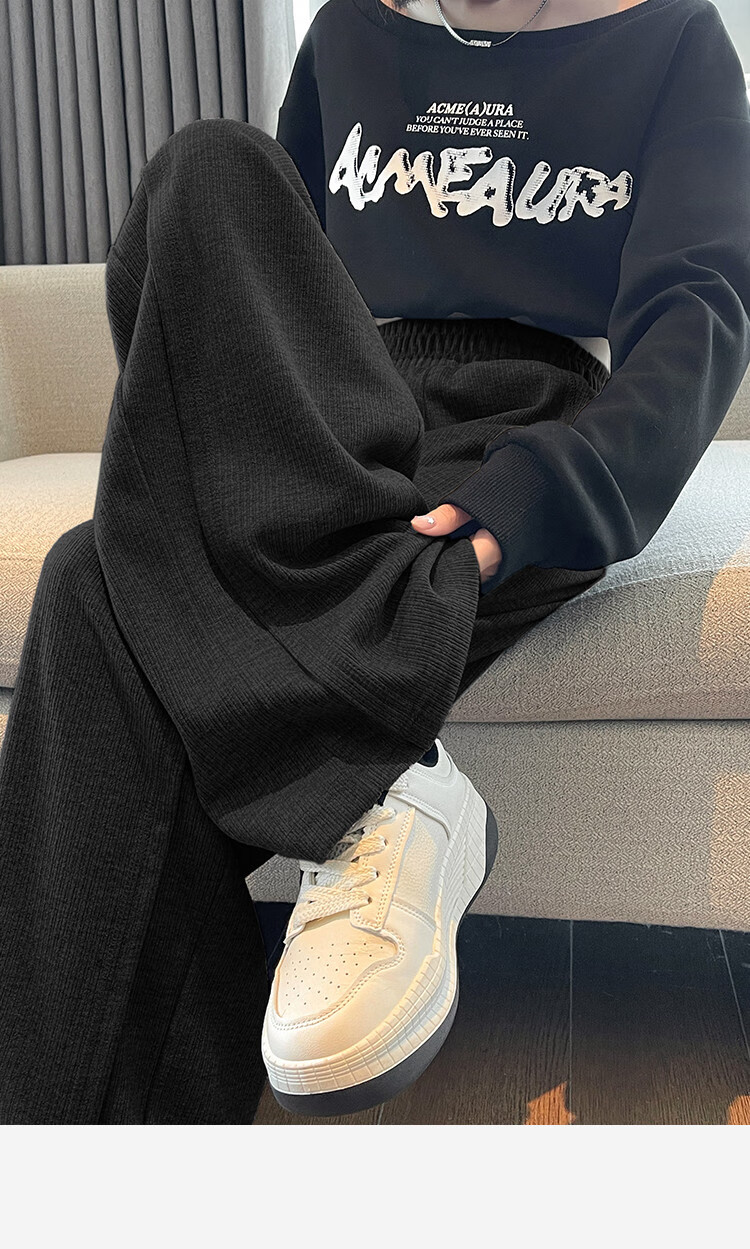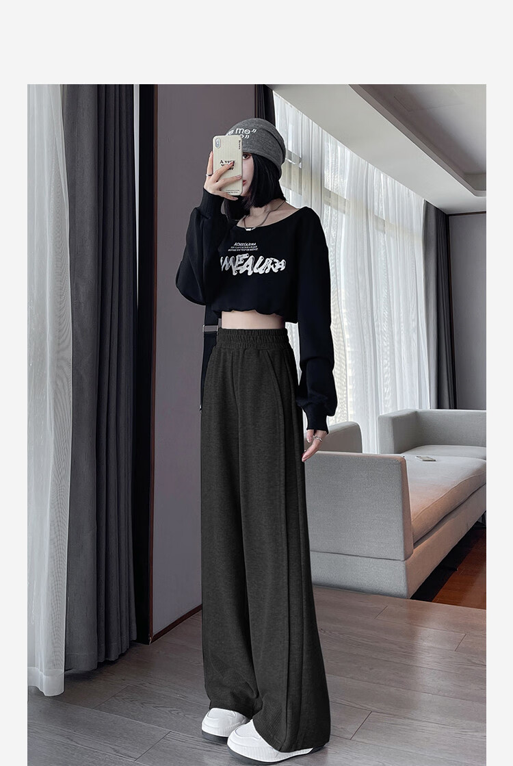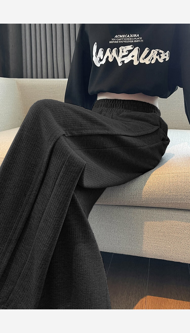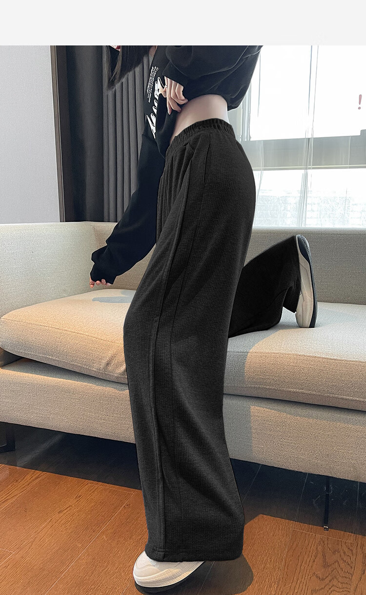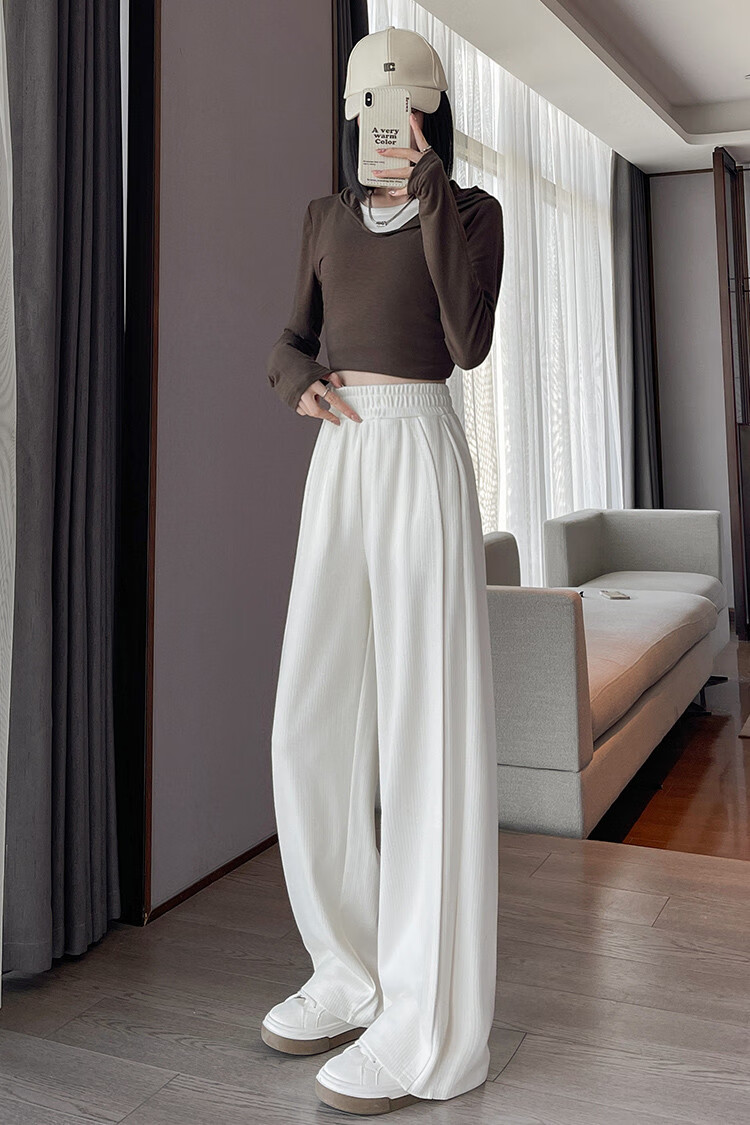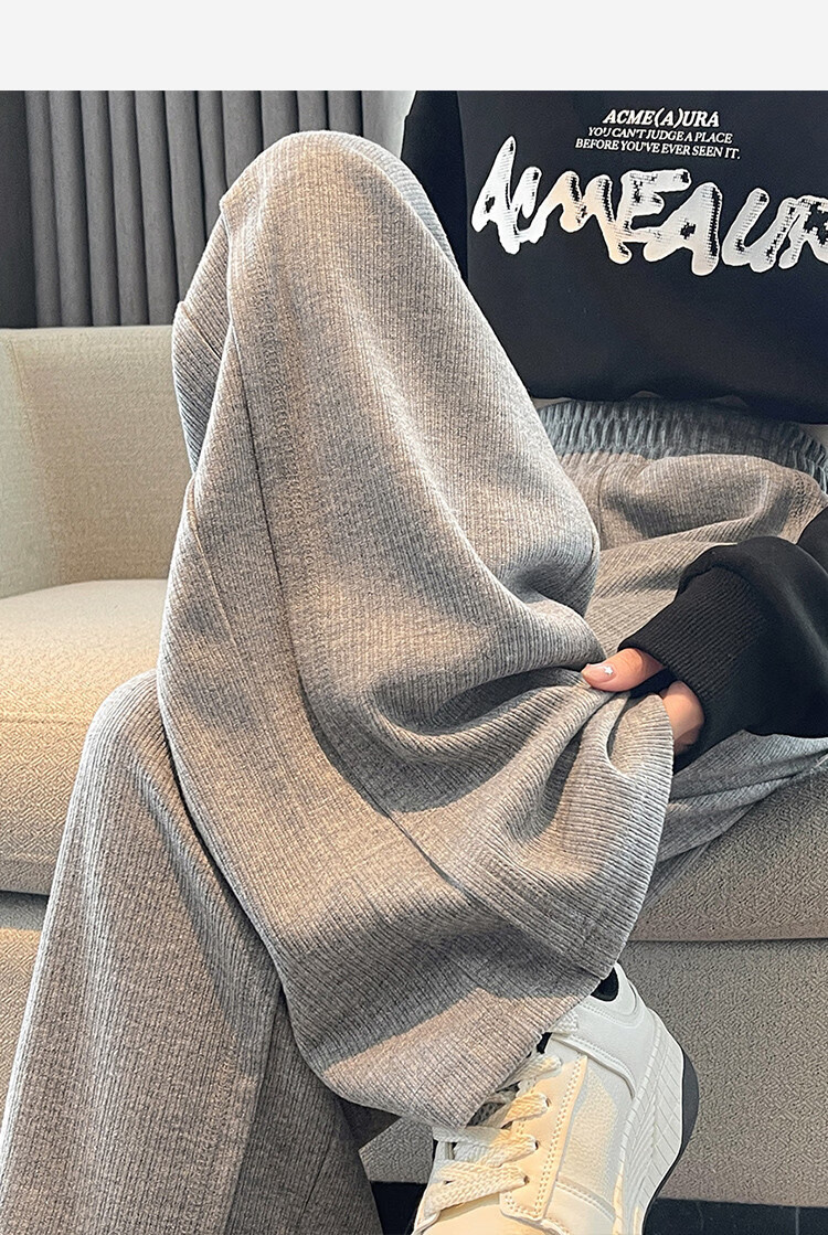 TonLion 2024 Women's High Waist Slim Knitted Wide Leg Pants Oatmeal/Fleece Style L