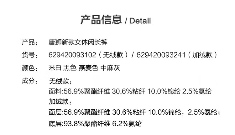 Outseam (cm) 99 cm 101.5 cm 104 cm 106.5 cm 109 cm