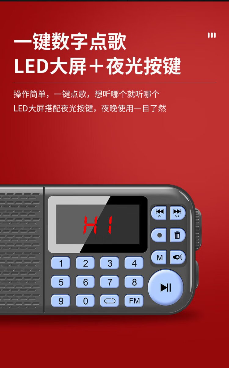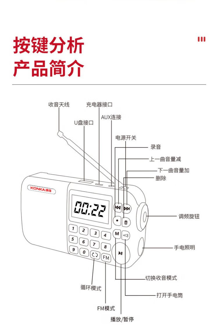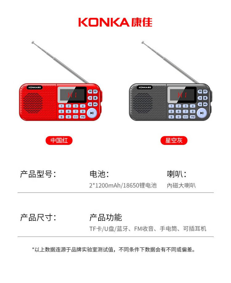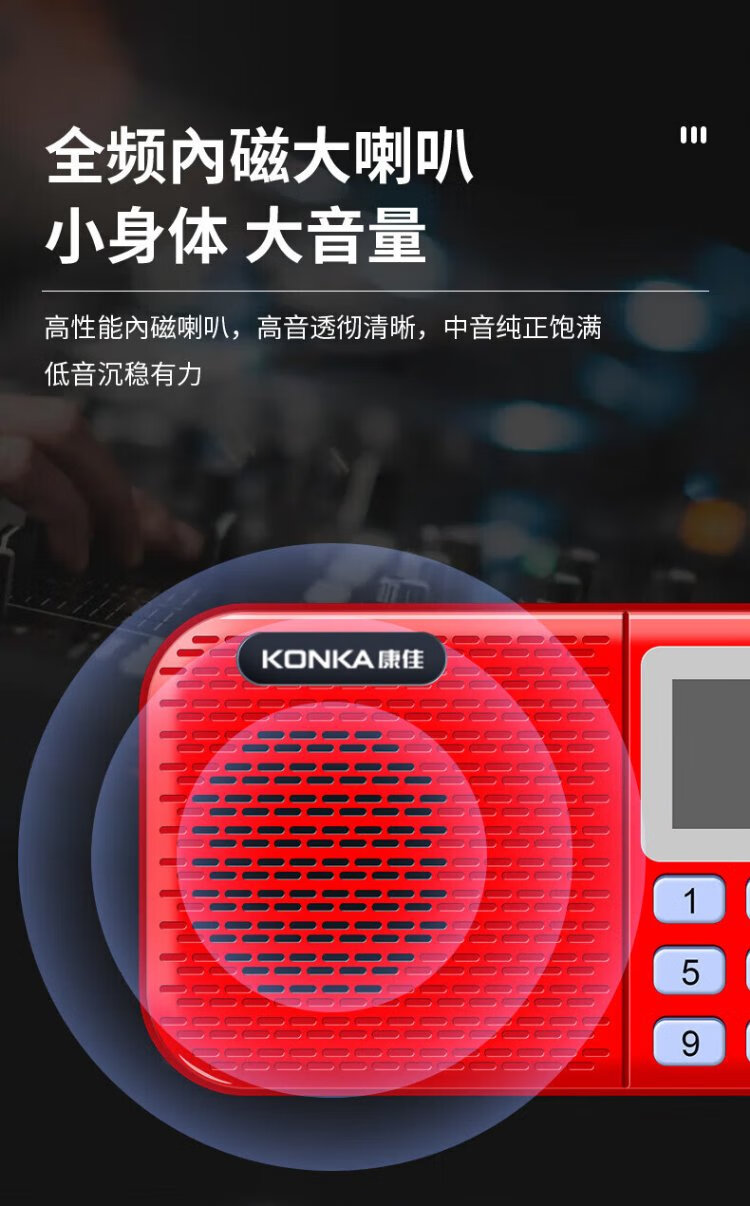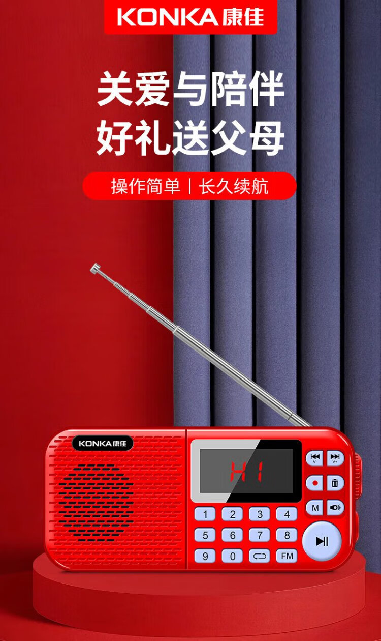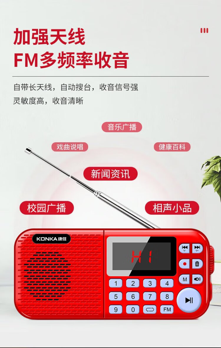 KONKA FK51 Radio Elderly Charging Card Mini Speaker Portable Semiconductor Walkman FM FM Radio Audio Music Player Red
