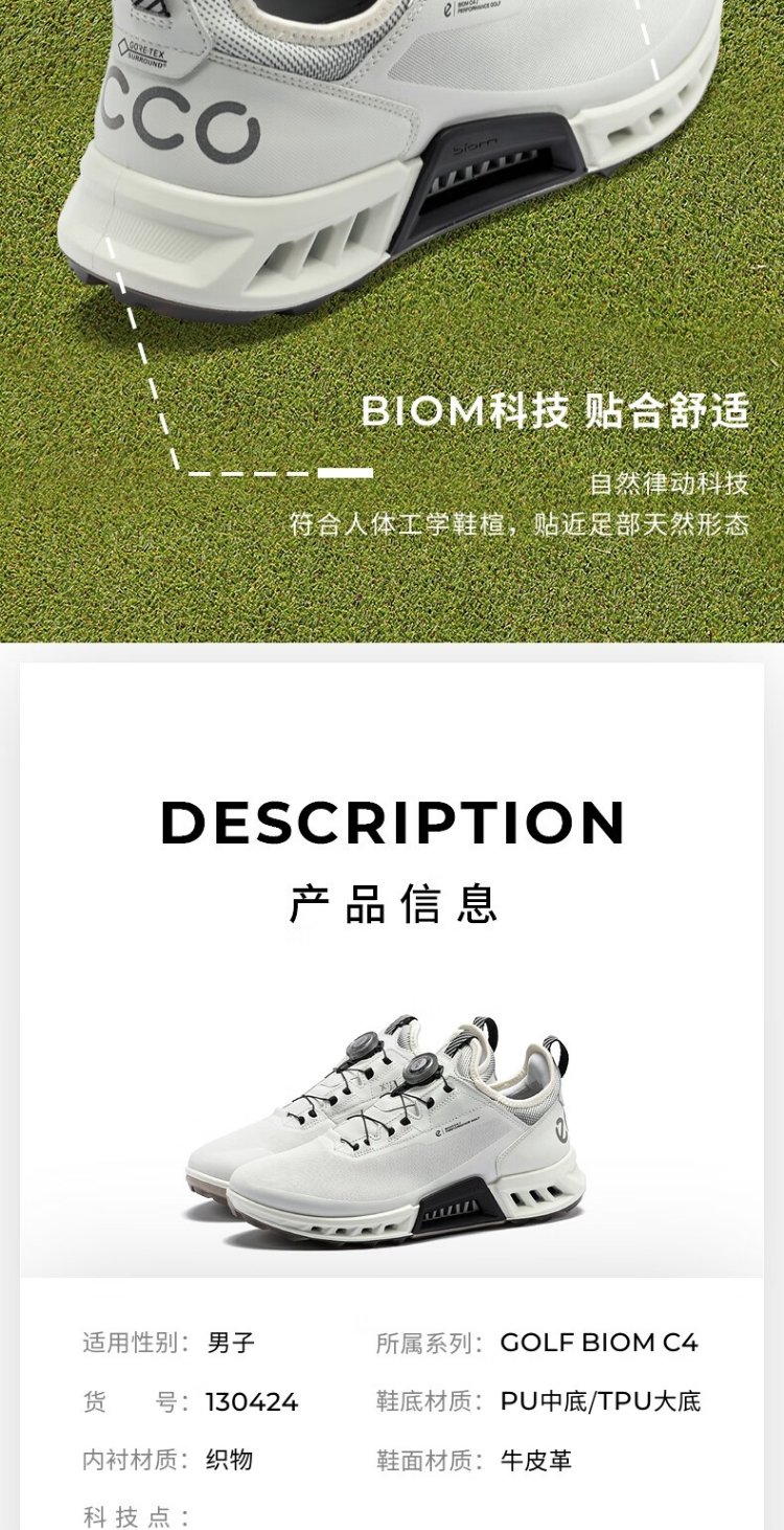 ECCO BIOM C4 golf shoes for men, waterproof and breathable sports shoes, Jianbu 130424, white 40 HL