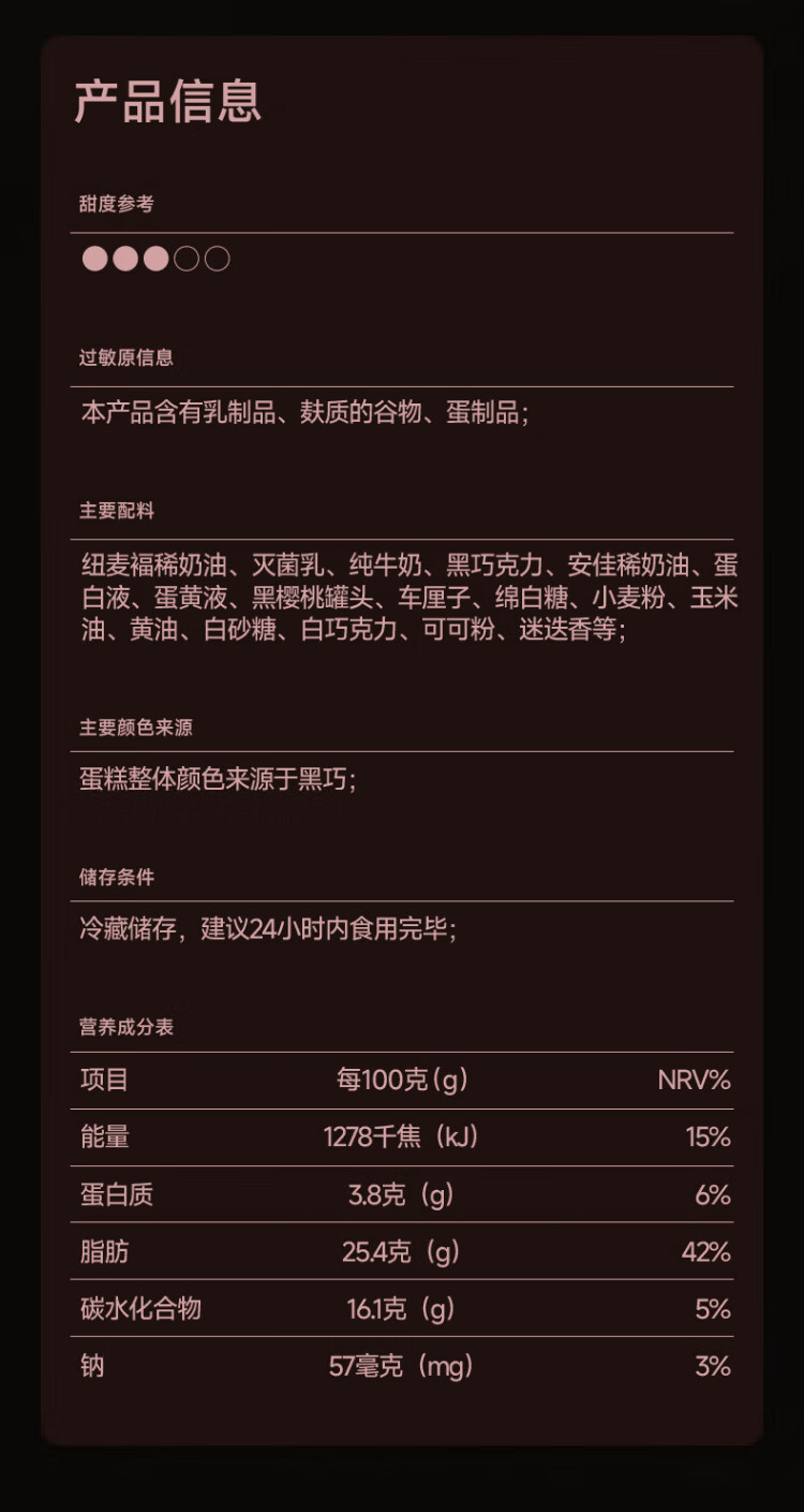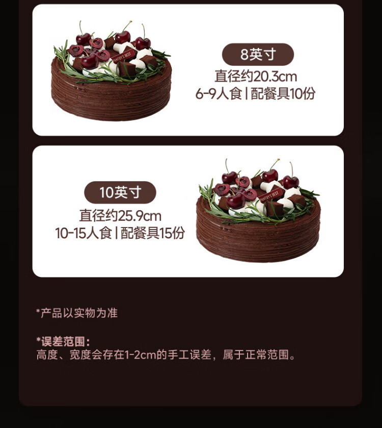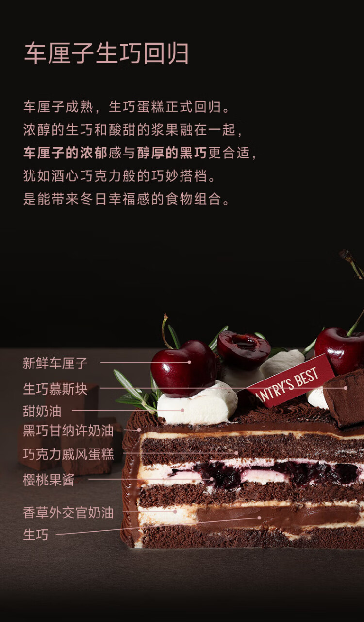 Pai Yue Fang Double Shengqiao Birthday Cake Chocolate Cherry Dessert Party Same Day Delivery to Beijing and Shanghai 710g