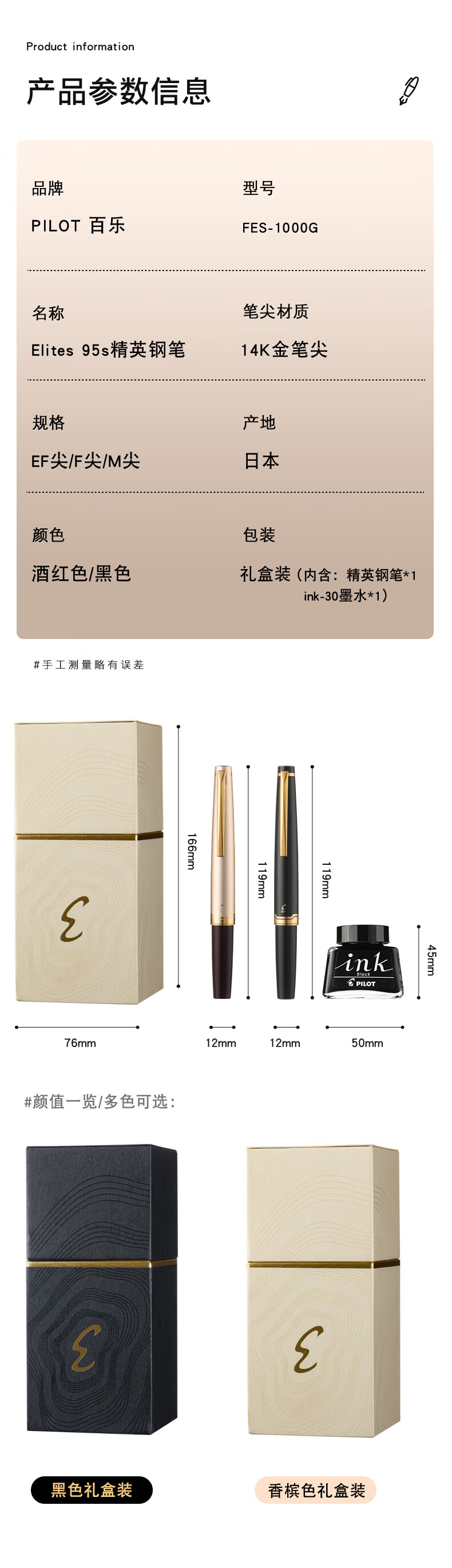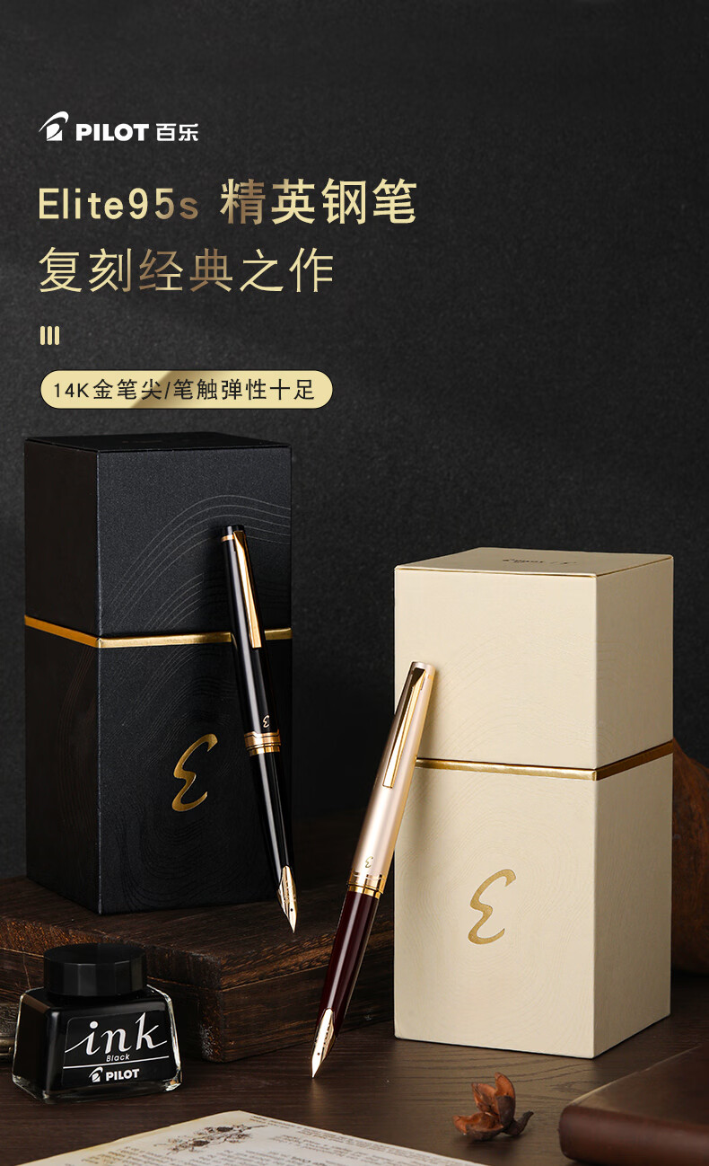 PILOT Hot Products Elite95s Elite Folding Pen Set 14k Gold Pen Tip Business Office Adult Pen F-Nib Champagne Cap (With Ink)