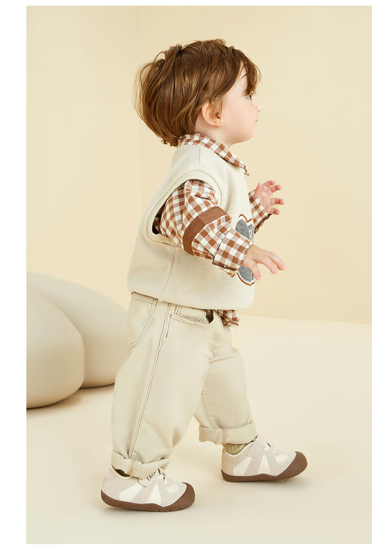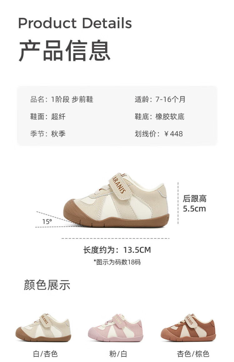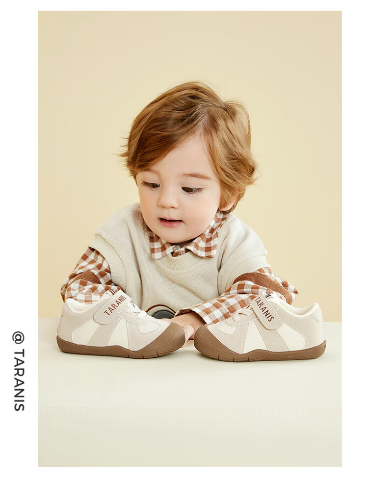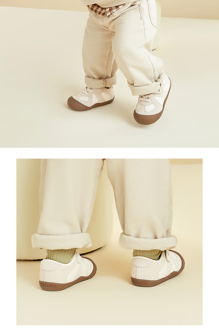 Terranis Autumn Baby Stepping Front Shoes Soft-soled Climbing Station Men's and Women's Baby Toddler Floor Shoes White/Apricot Size 20