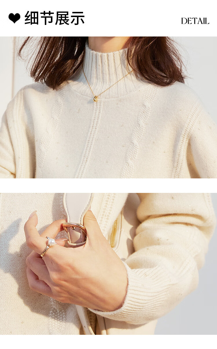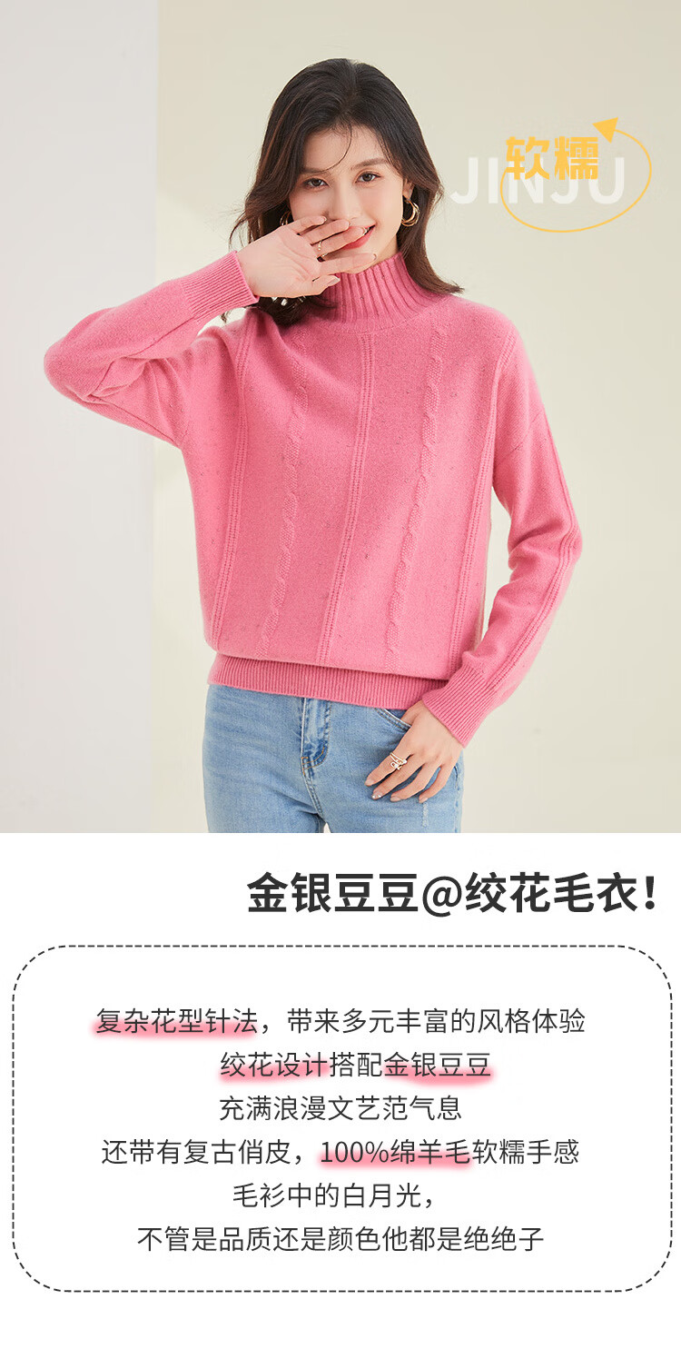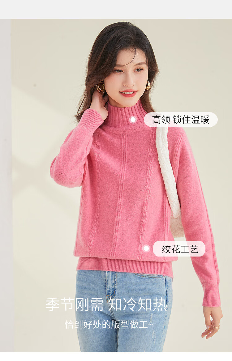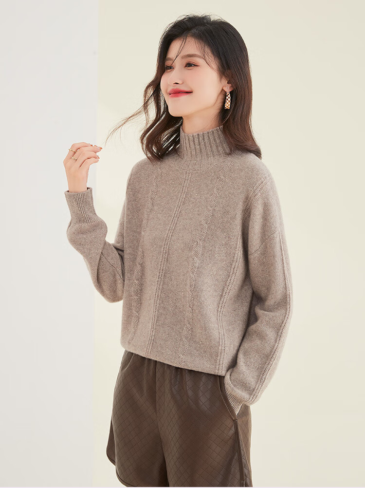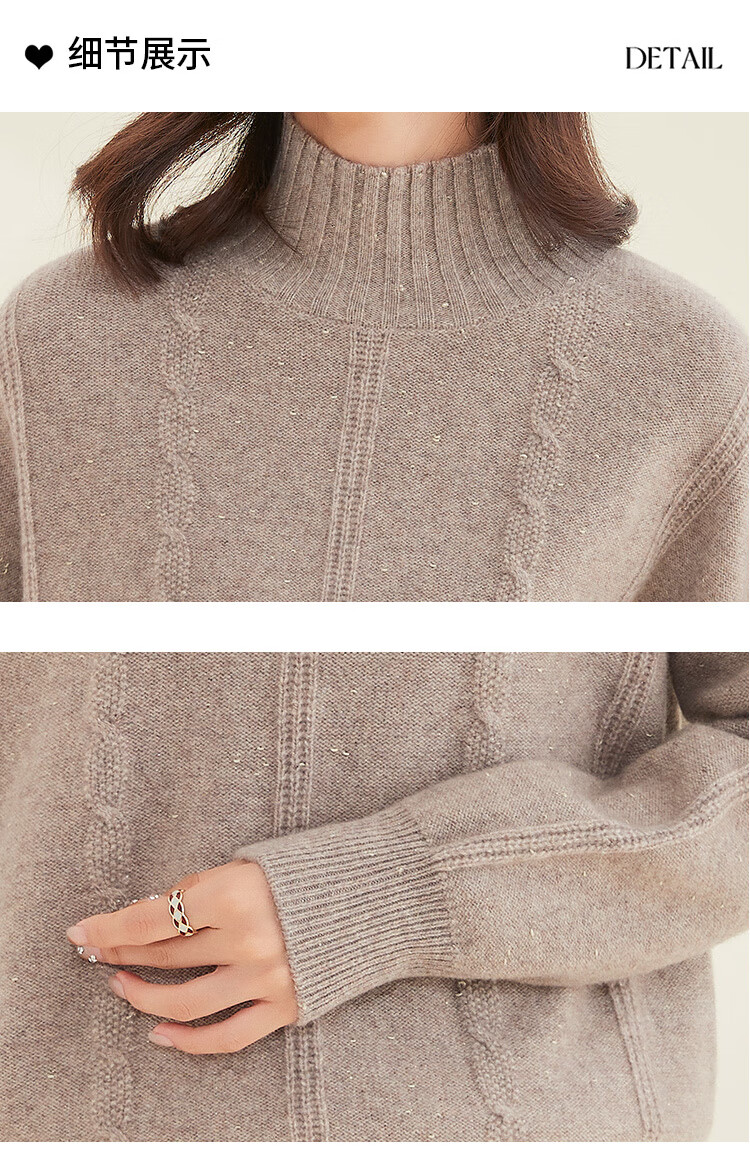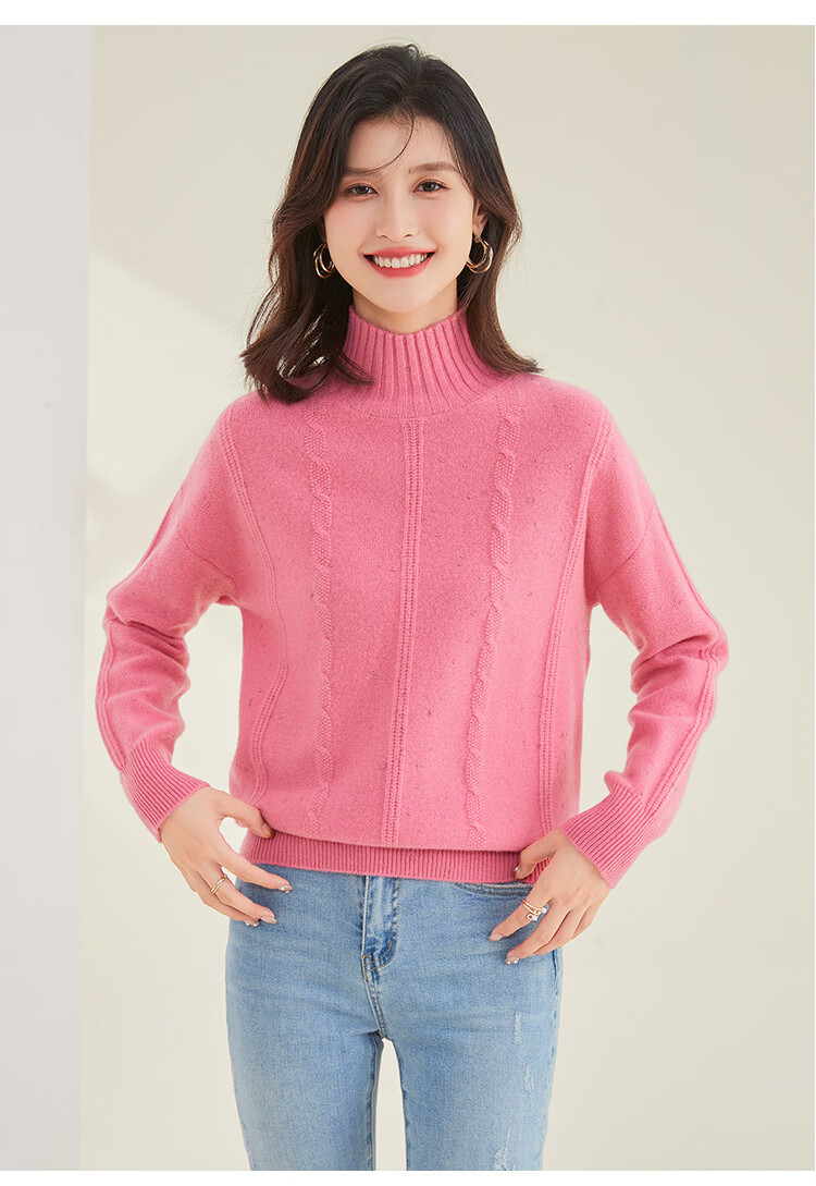 Jinju thickened 100% sheep wool autumn and winter new high collar commuting dropped shoulder sleeves cable sweater women's cardigan