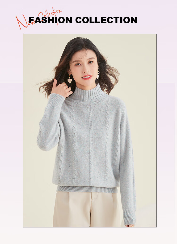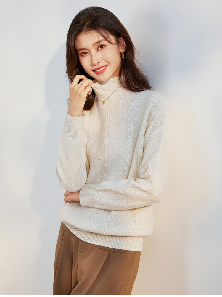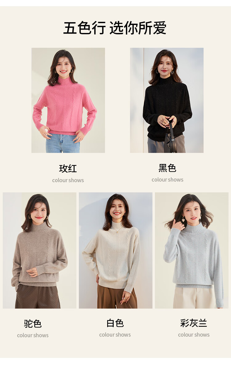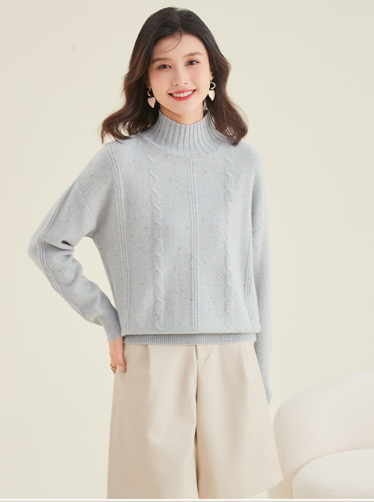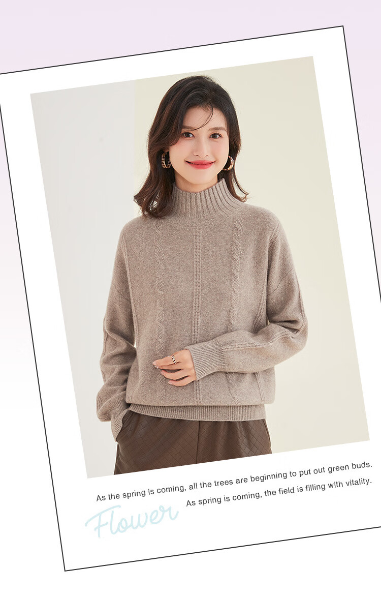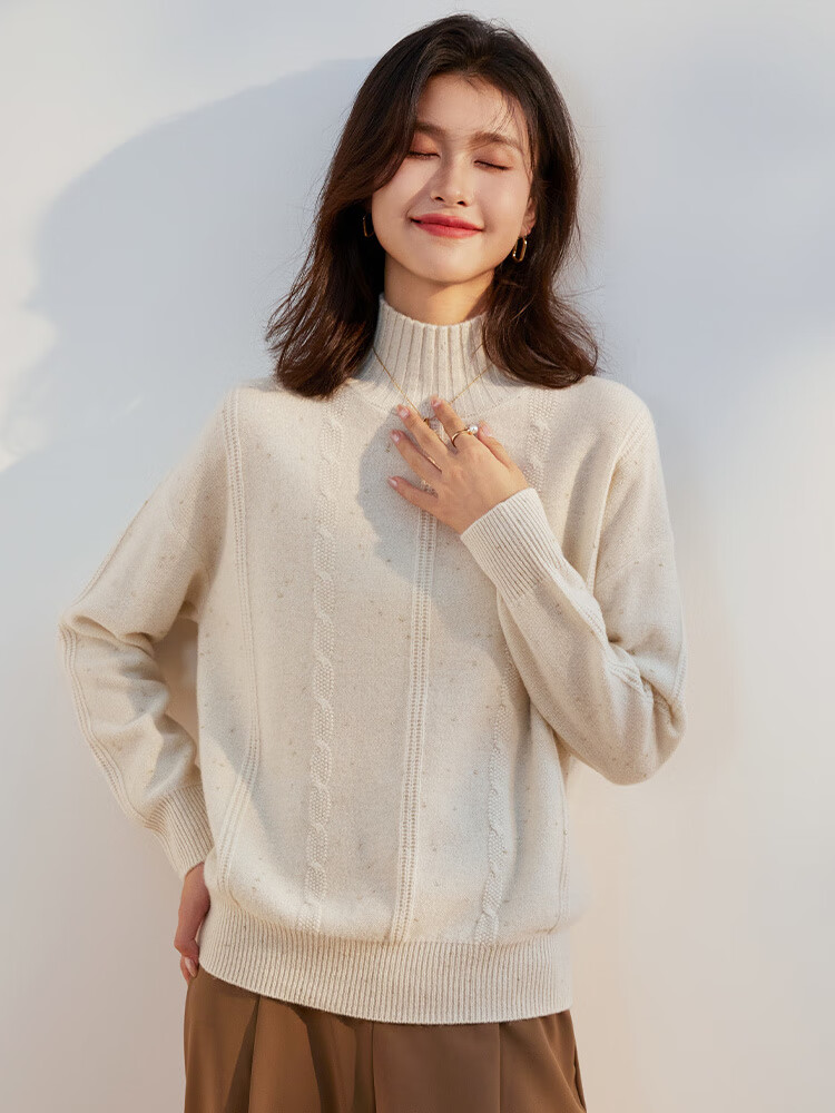 Jinju thickened 100% sheep wool autumn and winter new high collar commuting dropped shoulder sleeves cable sweater women's cardigan