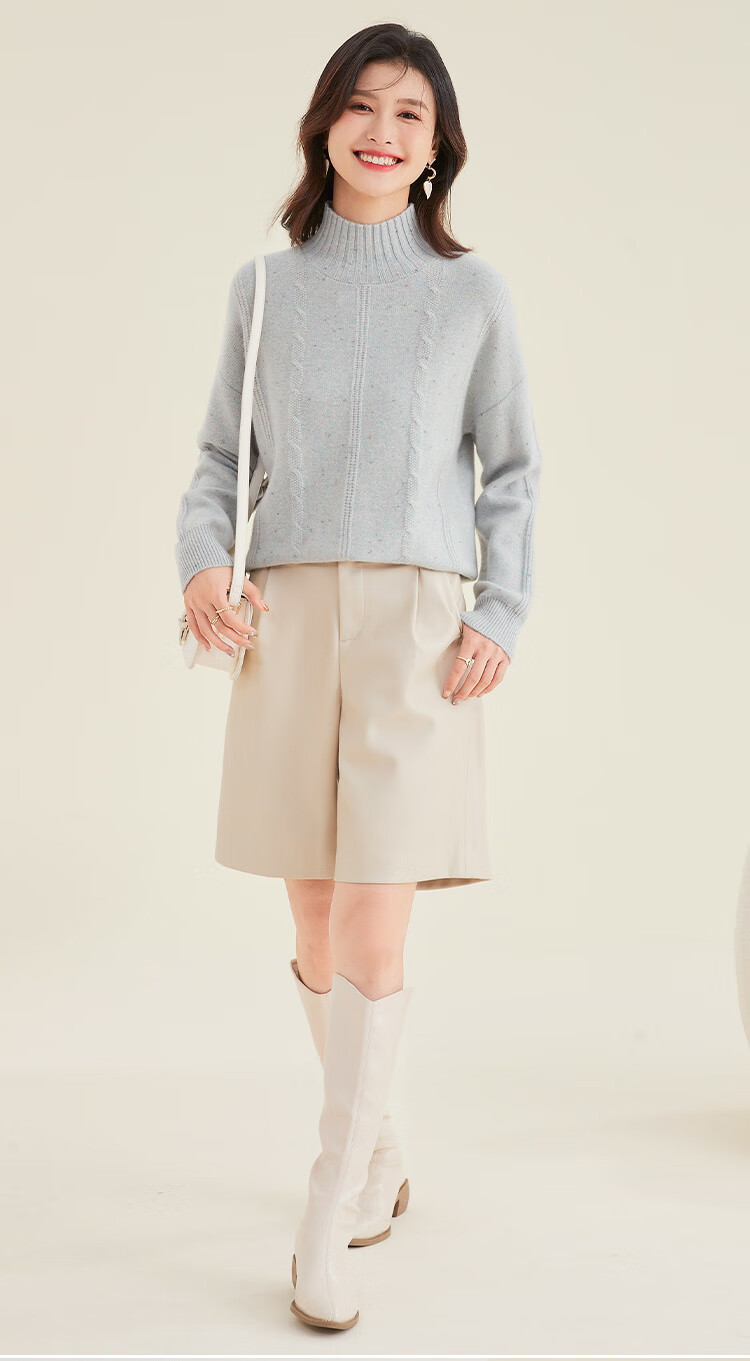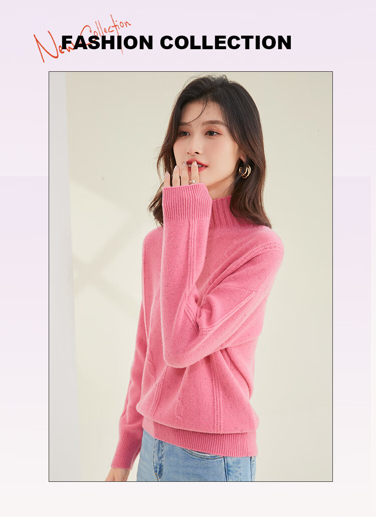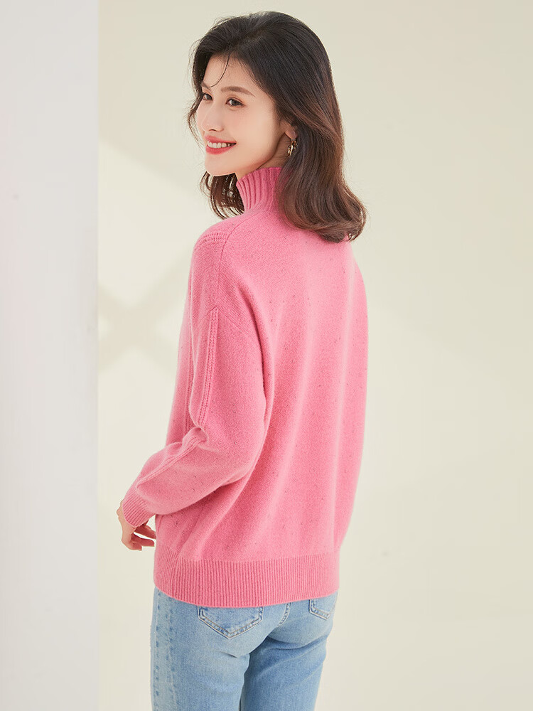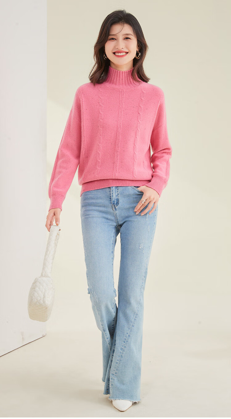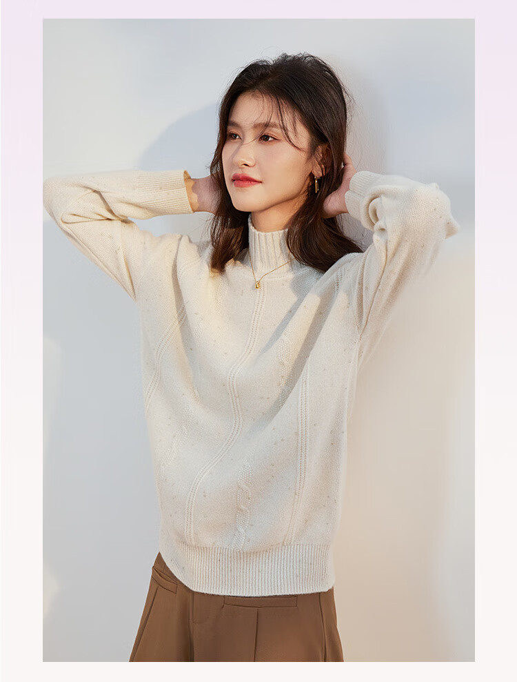 Jinju thickened 100% sheep wool autumn and winter new high collar commuting dropped shoulder sleeves cable sweater women's cardigan