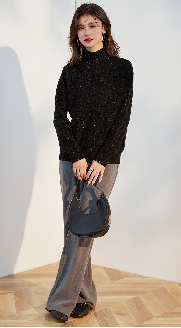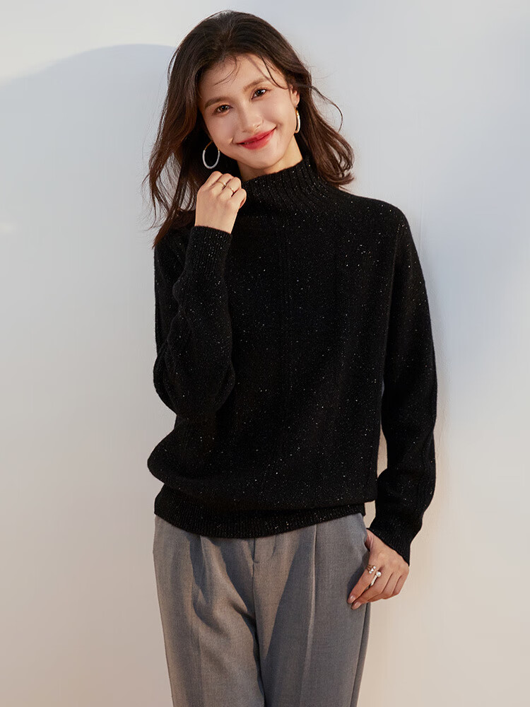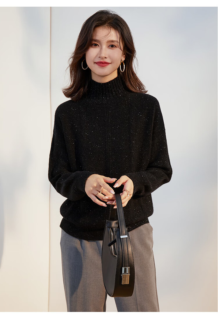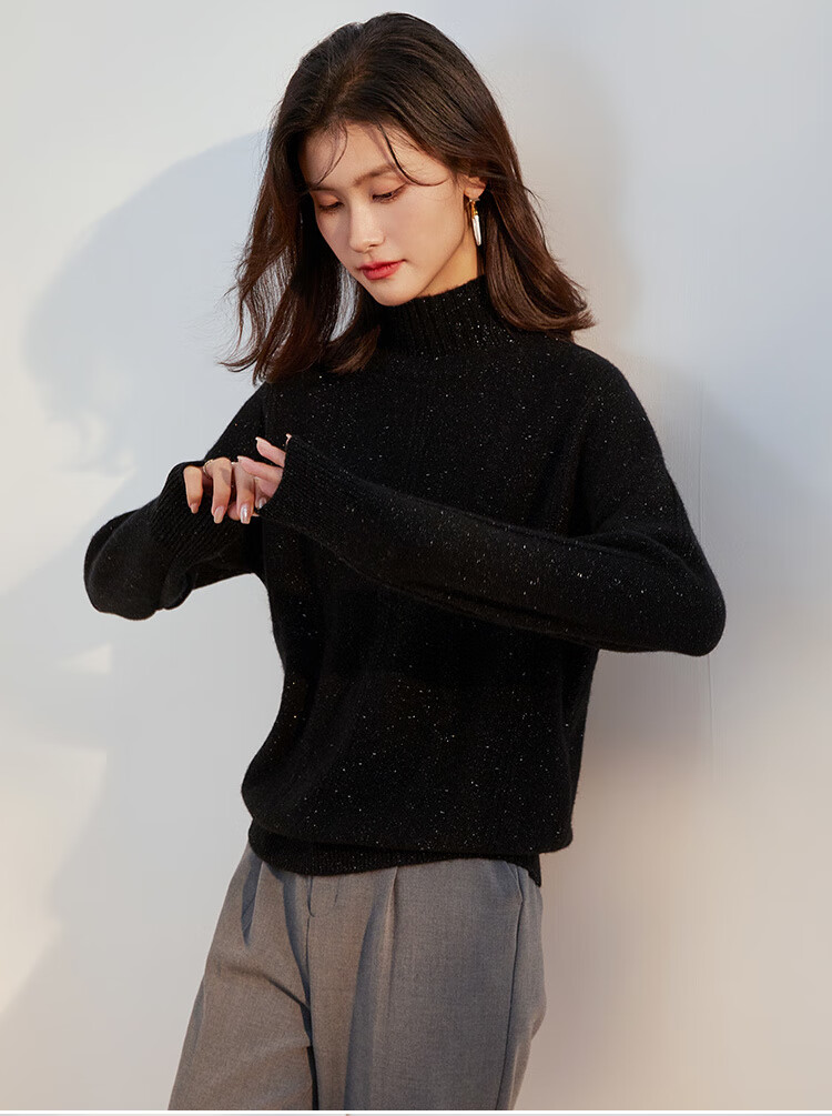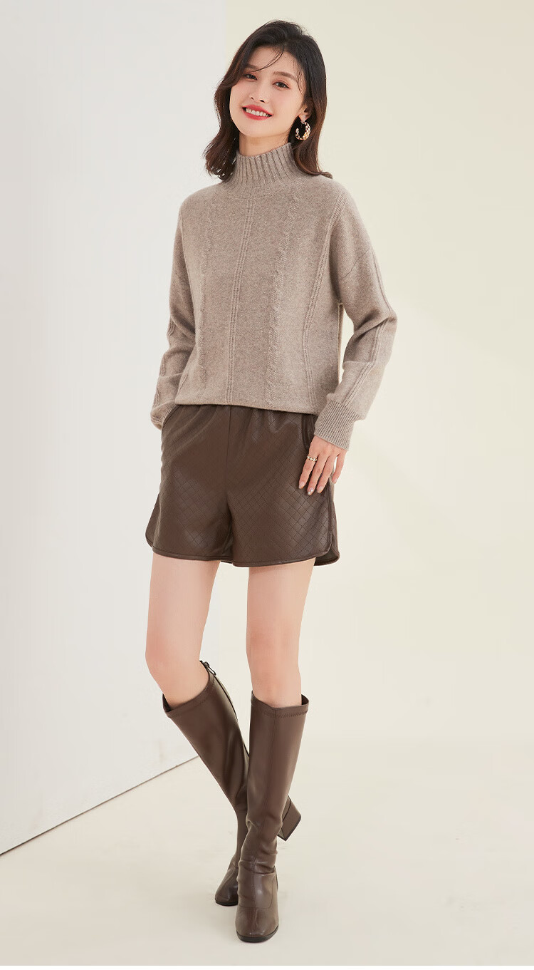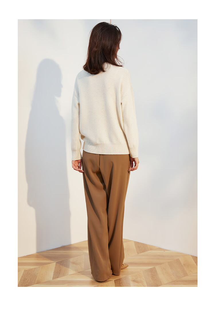 Jinju thickened 100% sheep wool autumn and winter new high collar commuting dropped shoulder sleeves cable sweater women's cardigan