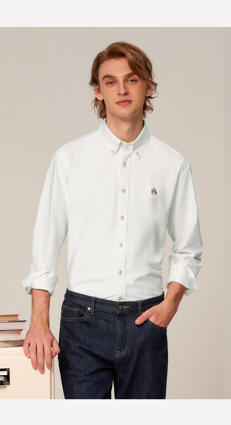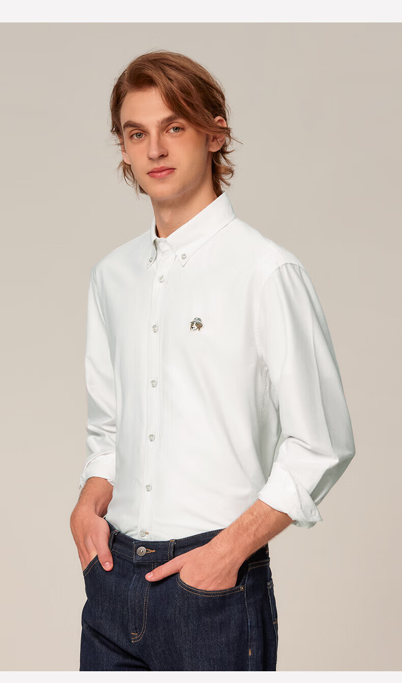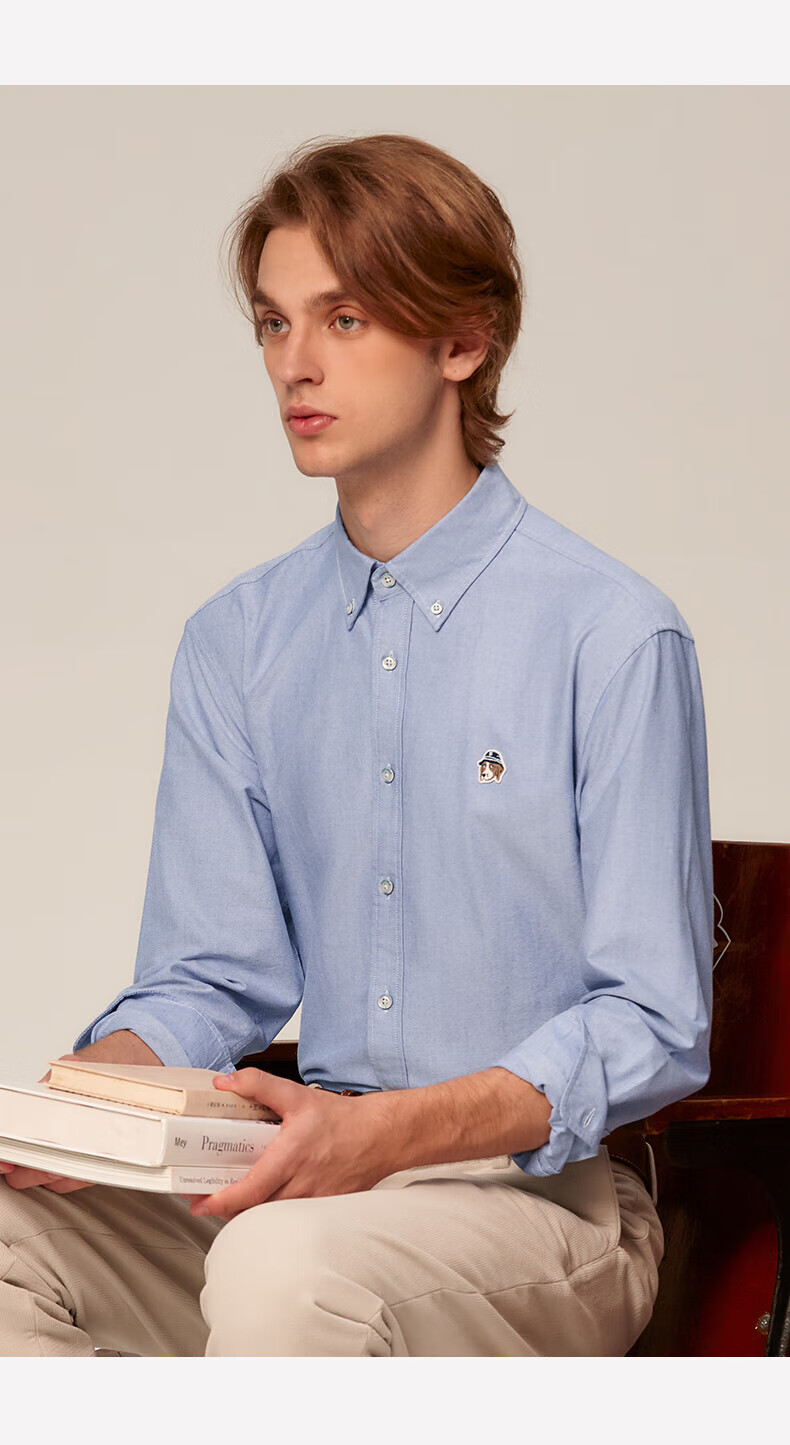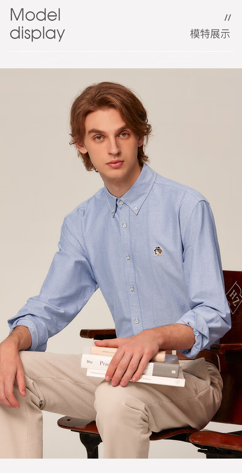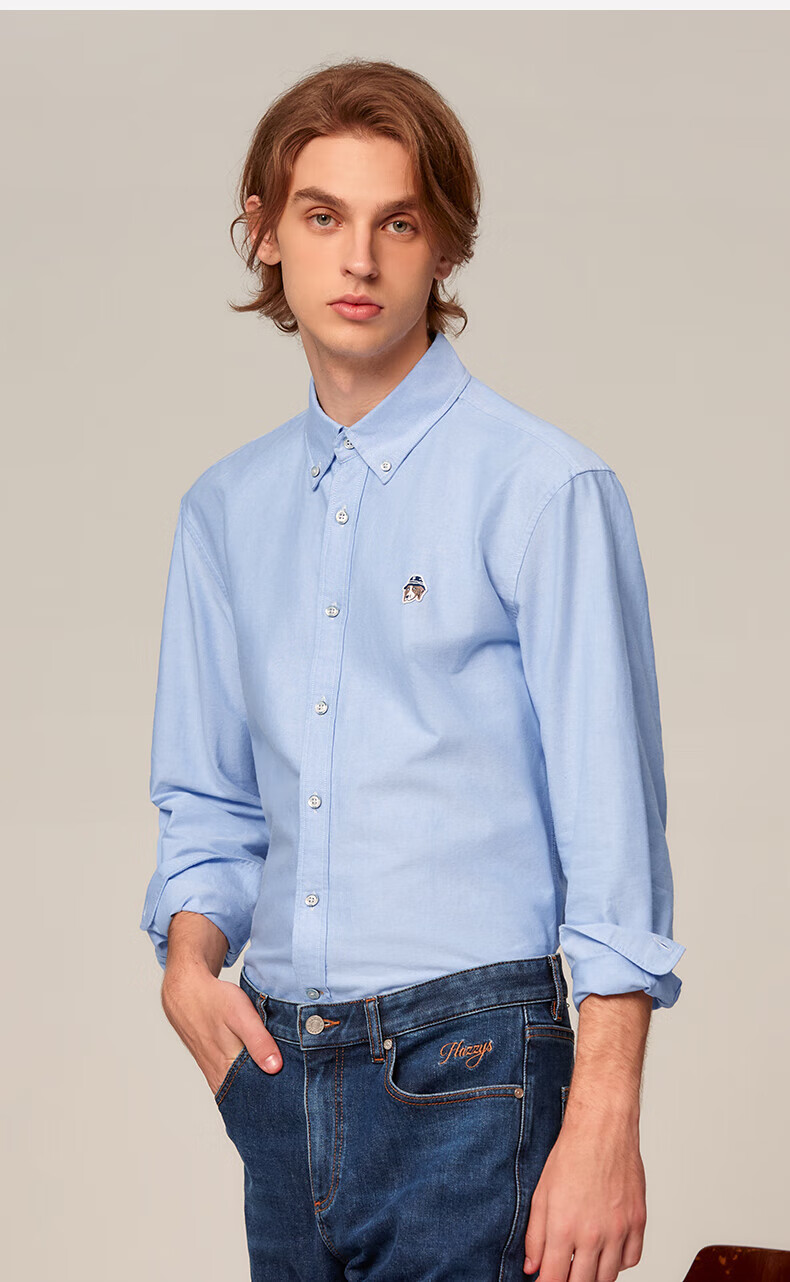 HAZZYS Men's Oxford Long Sleeve Shirt ASCZK1BCI46 Beige OW 175/96A48
